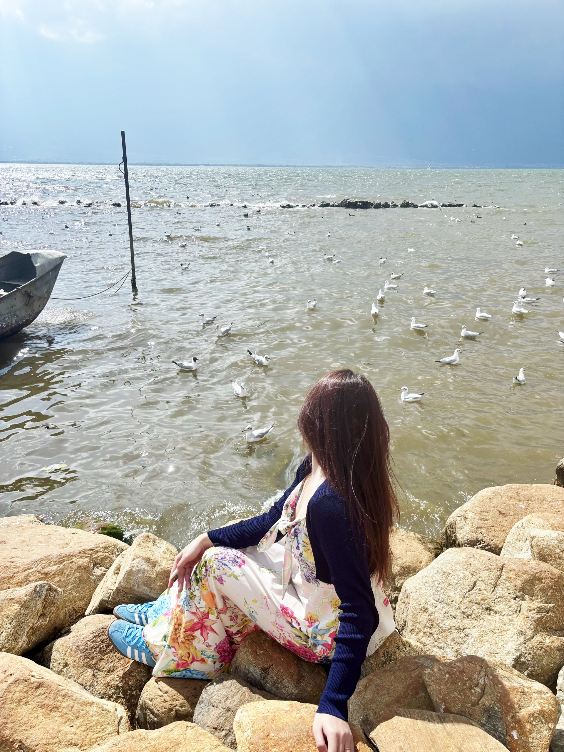 这双阿迪达斯经典款真的是洱海穿搭的神助攻✨ 蓝白配色清新亮眼,和海天一色的背景完美呼应,清新感直接拉满。 上脚轻盈不磨脚,暴走一天都不累。不管是配飘逸的碎花裙,还是休闲牛仔裤,都能轻松拿捏松弛感,日常通勤、旅行都能穿。 拍照小技巧: • 坐在石头上让鞋子自然垂落,搭配海浪背景,营造松弛感 • 抓拍行走在沙滩上的动态瞬间,让鞋子踢起水花,增强画面活力 • 将鞋子与海边的贝壳、浪花等元素结合...