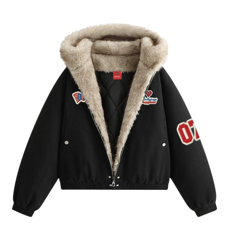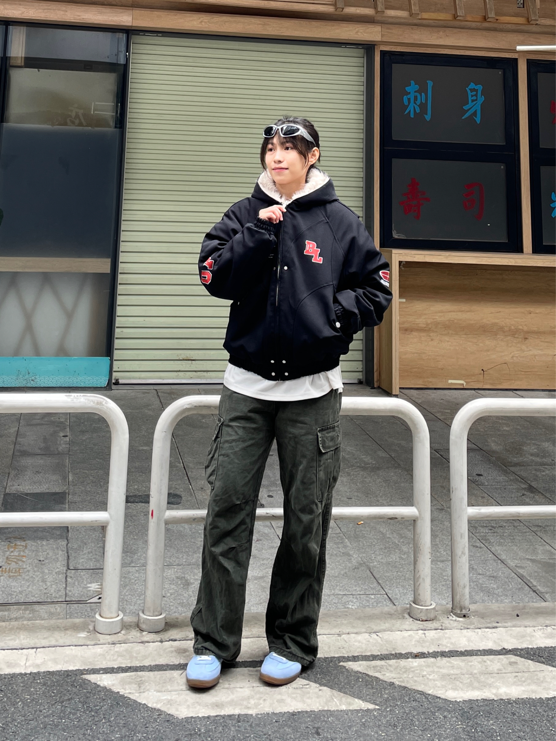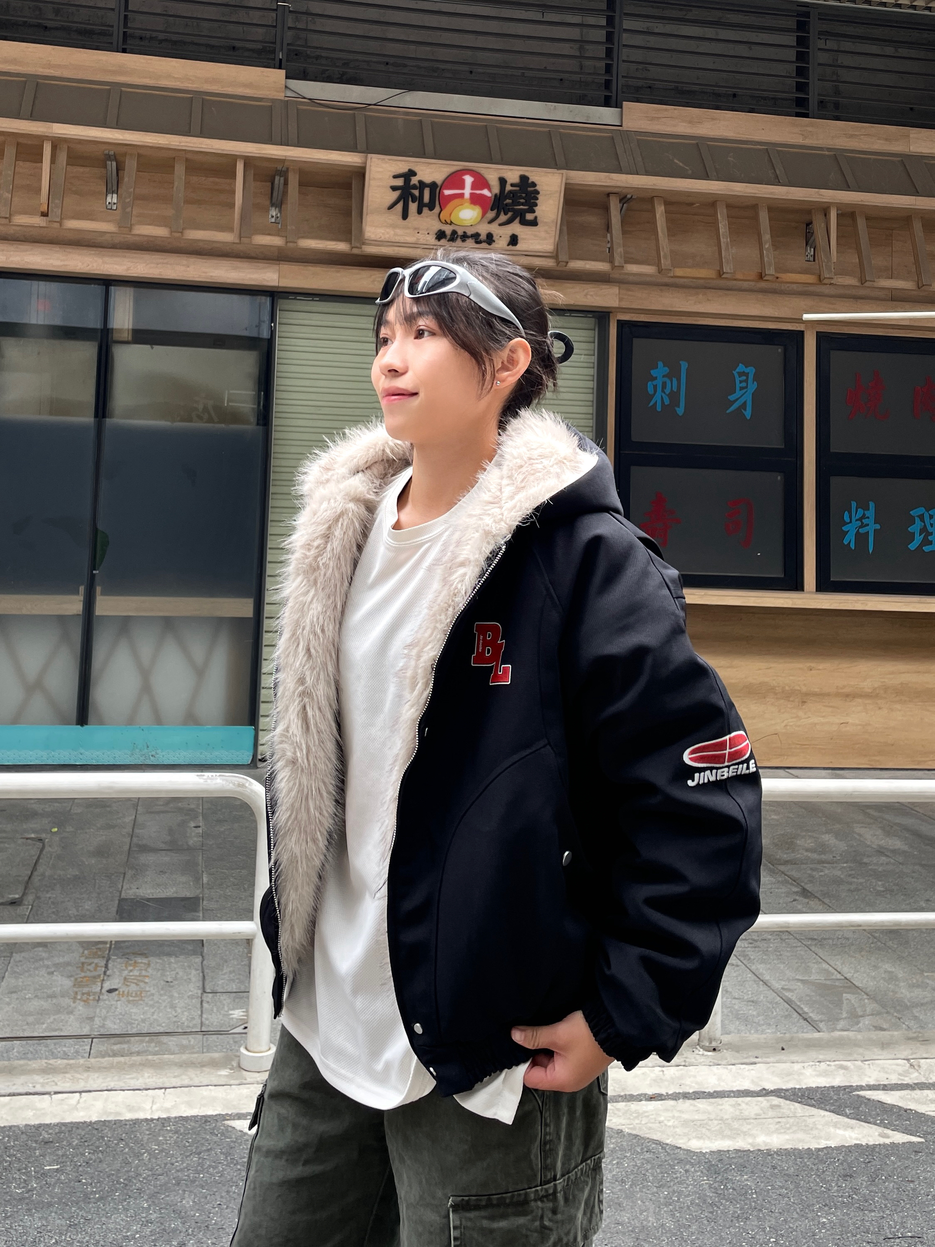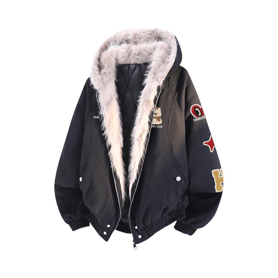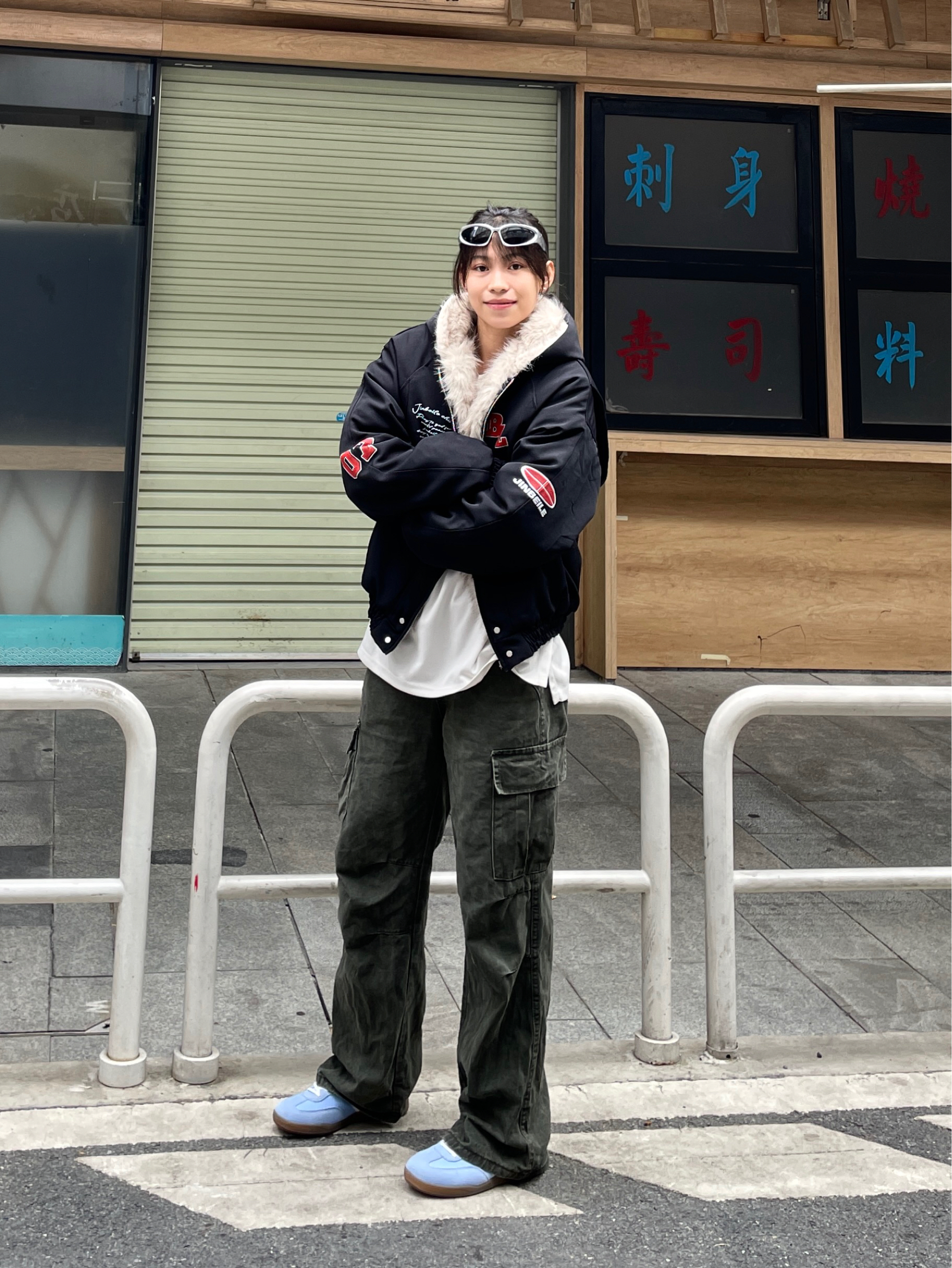 Hello~这里是穿搭女孩Dali - 美式女孩的冬天既要风度也要温度😎 上身一件 金贝勒 美式棉服外套 短款宽松版型很显身材比例🤘🏼 很厚实内里毛毛很舒适保暖效果很好✔️ 美式印花logo很潮🆒穿上不臃肿太帅啦!! 码数很正!我165/51穿M刚刚好~