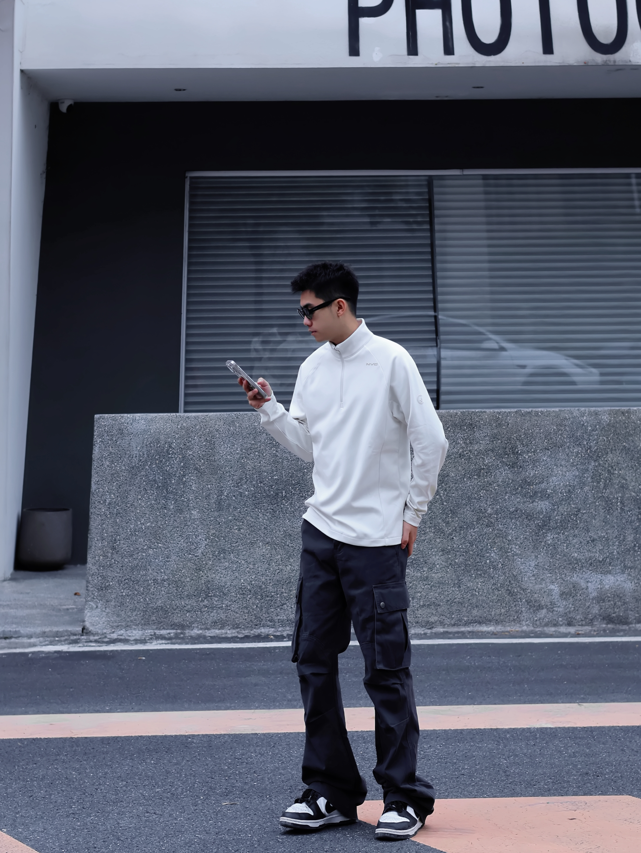 简约出门 干净少年感我的心头爱🤍 上身一件小帆船的白色半开襟长袖 保暖性能蛮不错的🔥并且出乎意料的修身哎! 简约的立体剪裁很修饰身材 下身搭配黑色工装裤 上脚一双熊猫dunk颜色上下呼应 简约但不简单的feel拒绝不了一点~