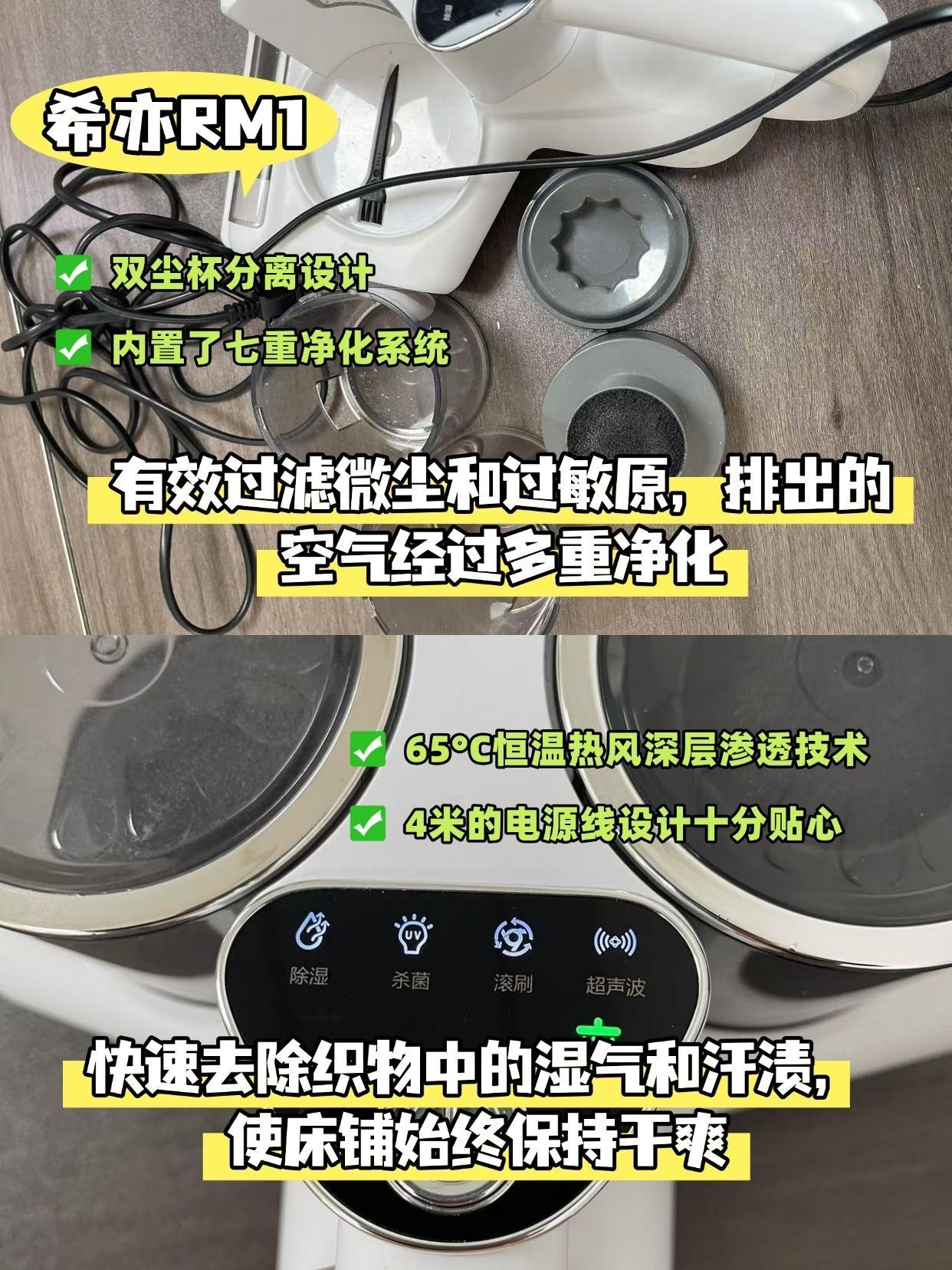 家人们,我最近挖到了一款超牛的除螨仪 —— 希亦 RM1,今天就来好好分享给大家啦~ 之前用的除螨仪,吸力弱得可怜,感觉就是在床单表面 “走过场”。这款除螨仪就不一样,它那 15000Pa 的吸力,就像个强力小旋风。我第一次用,推着它在床垫上走了一遍,打开尘杯,好家伙,里面全是灰尘、皮屑,还有不少疑似螨虫的小点点,看得我头皮发麻。这才知道,原来我们每天睡觉的床居然藏着这么多脏东西! 而且,这个...
