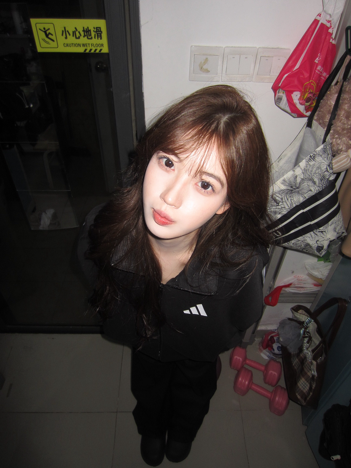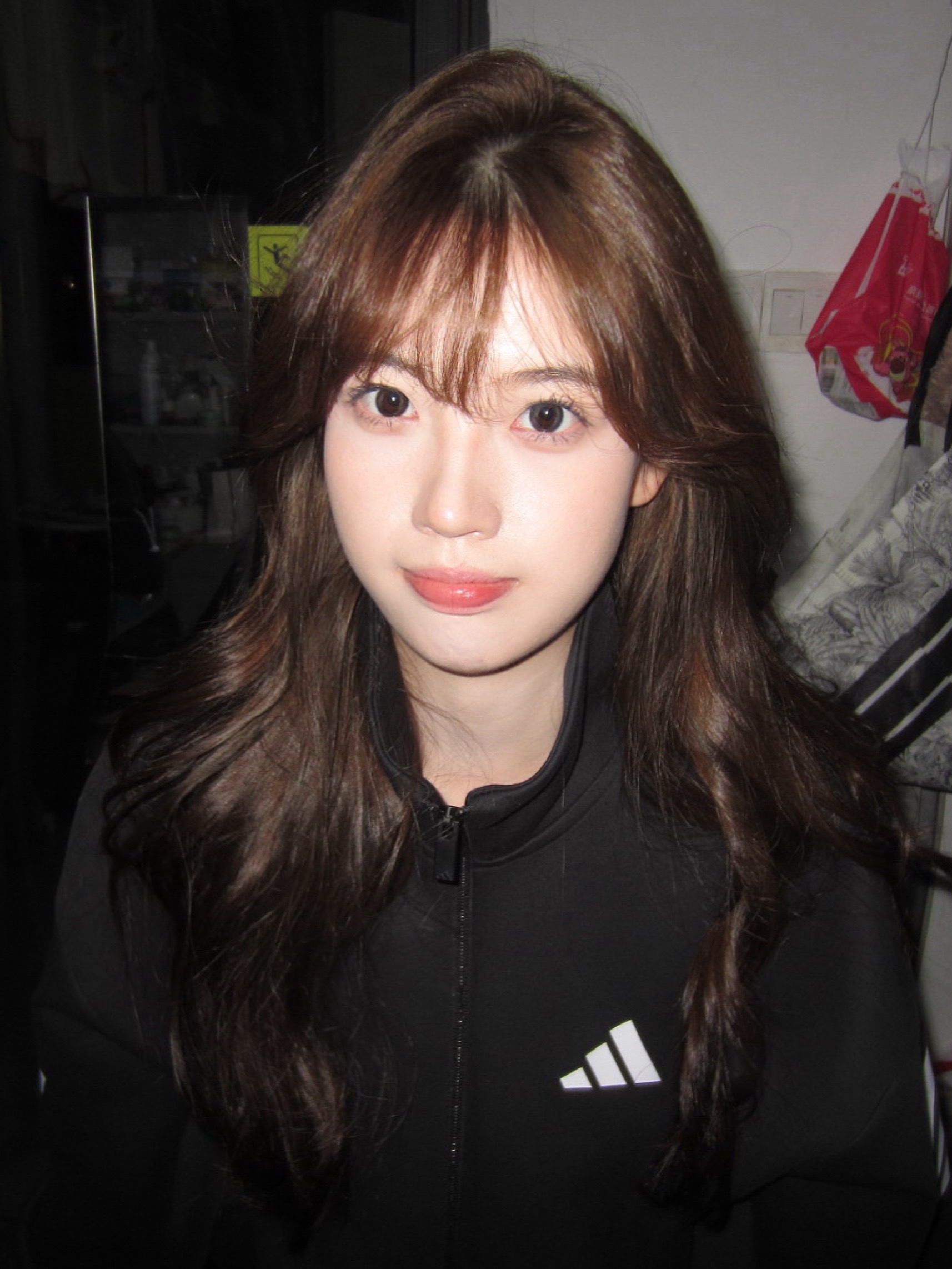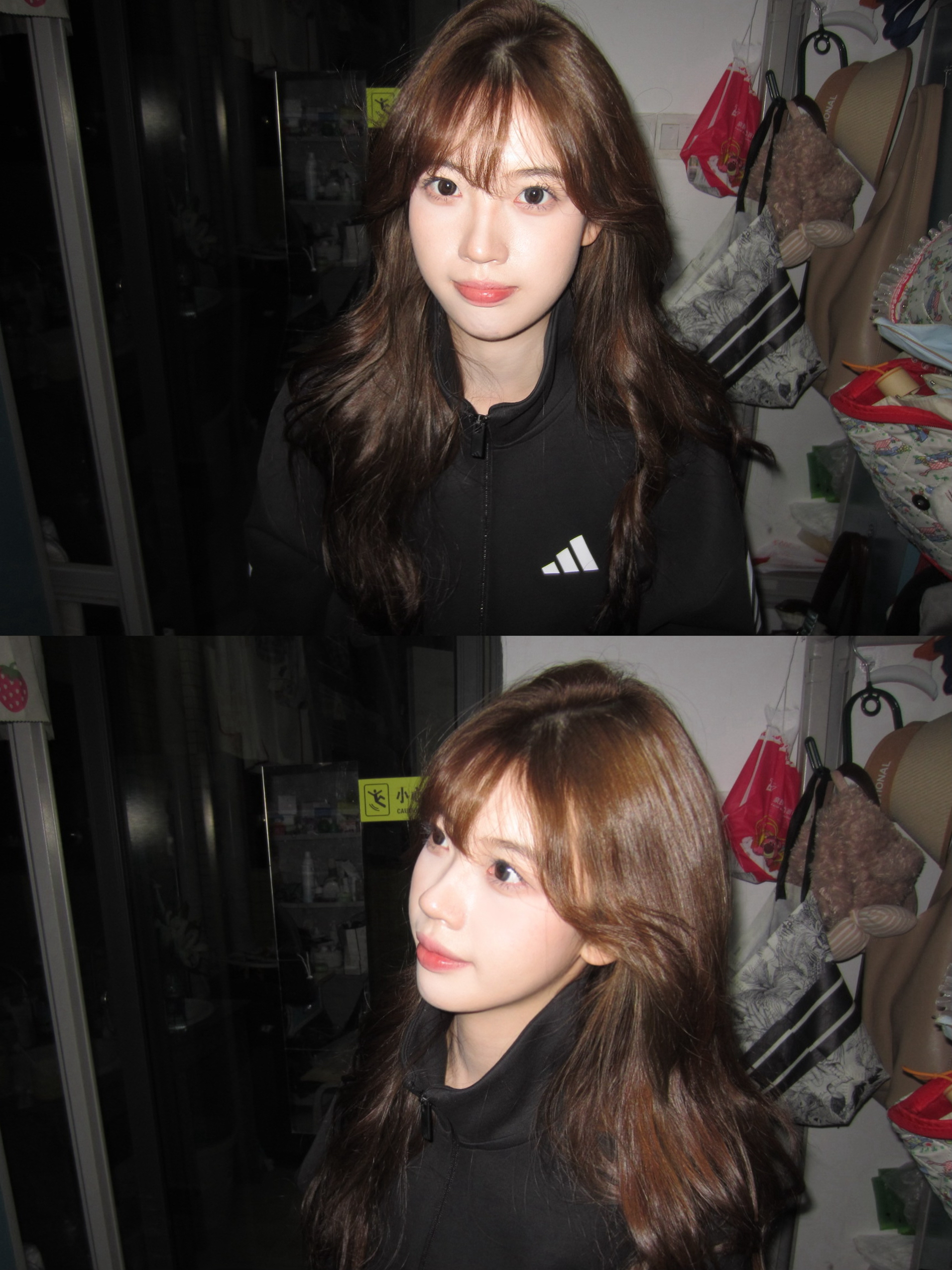 这件简单但又很显气质,慵懒感十足,和平时经常穿的条纹ad外套是不一样的感觉,这个比较不经常见款!超推荐! 这个会比较宽松特别是腋下那块,最下边那会有点紧,打球穿出门也是刚刚好哒!!! 不化妆套这个外套加个帽子都感觉好韩!!我其他朋友穿了感觉属性感贼强哈哈哈哈哈哈