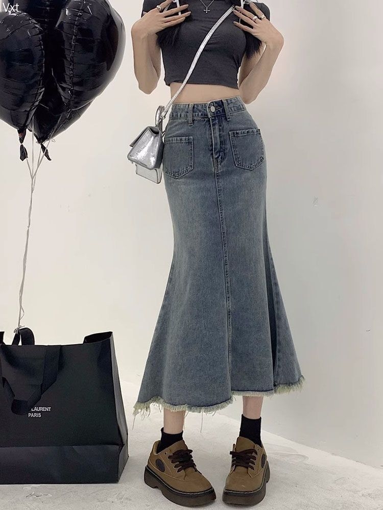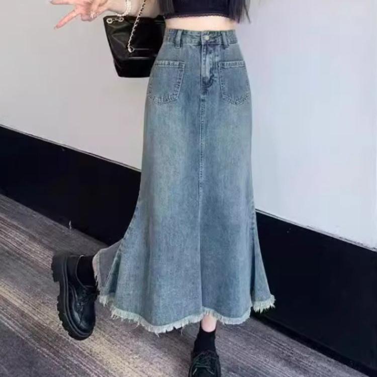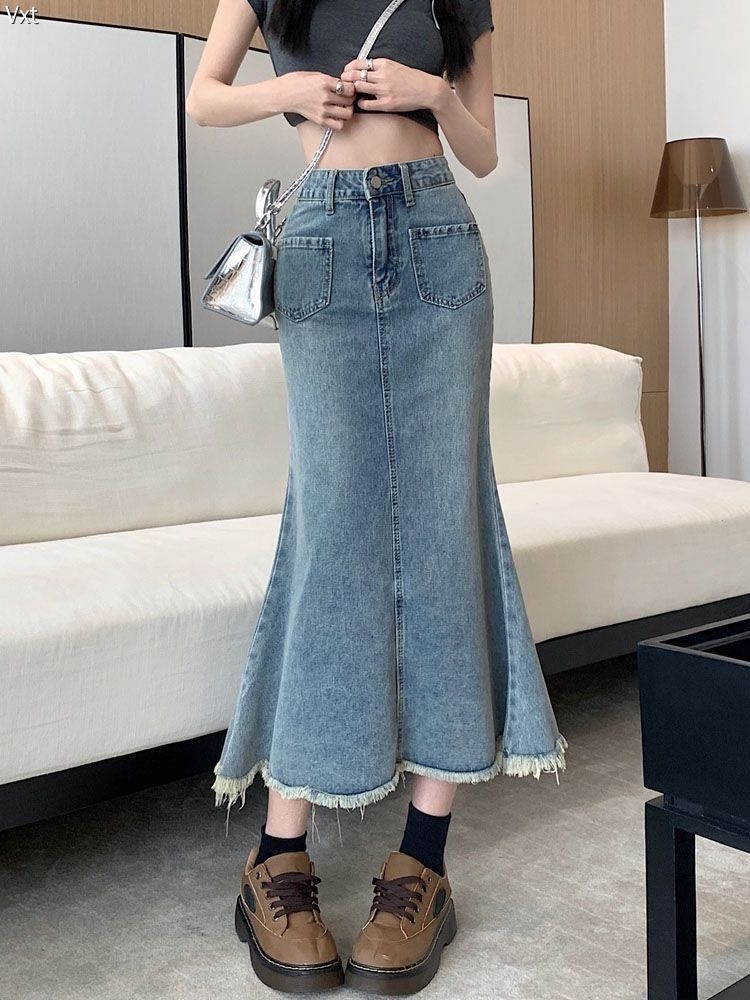 这条牛仔鱼尾裙直接戳中辣妹心巴!做旧蓝调自带复古滤镜,高腰掐出蚂蚁腰,下摆开叉+毛边设计又飒又欲,走路带风还藏肉~搭配短T露腰超显比例,配厚底鞋秒变美式复古甜酷妹!日常出街/约会都能打,谁穿谁是行走的穿搭模板!