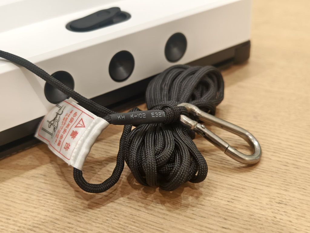 特意试了拔电源,机器立马滴滴提醒,内置电池能稳吸25分钟,留有足够的时间取下来。搭配安全绳,可以不需要担忧失电坠落。