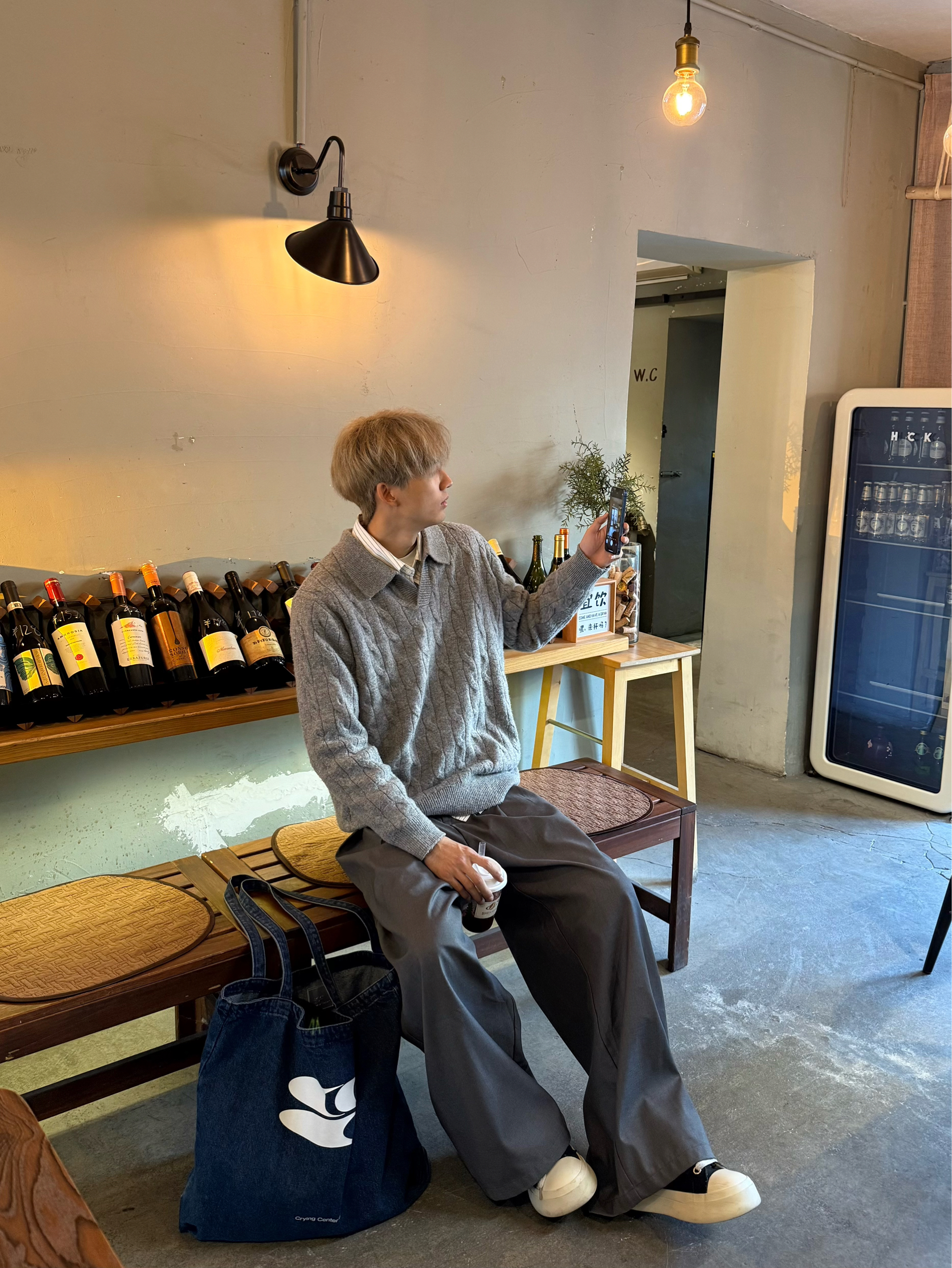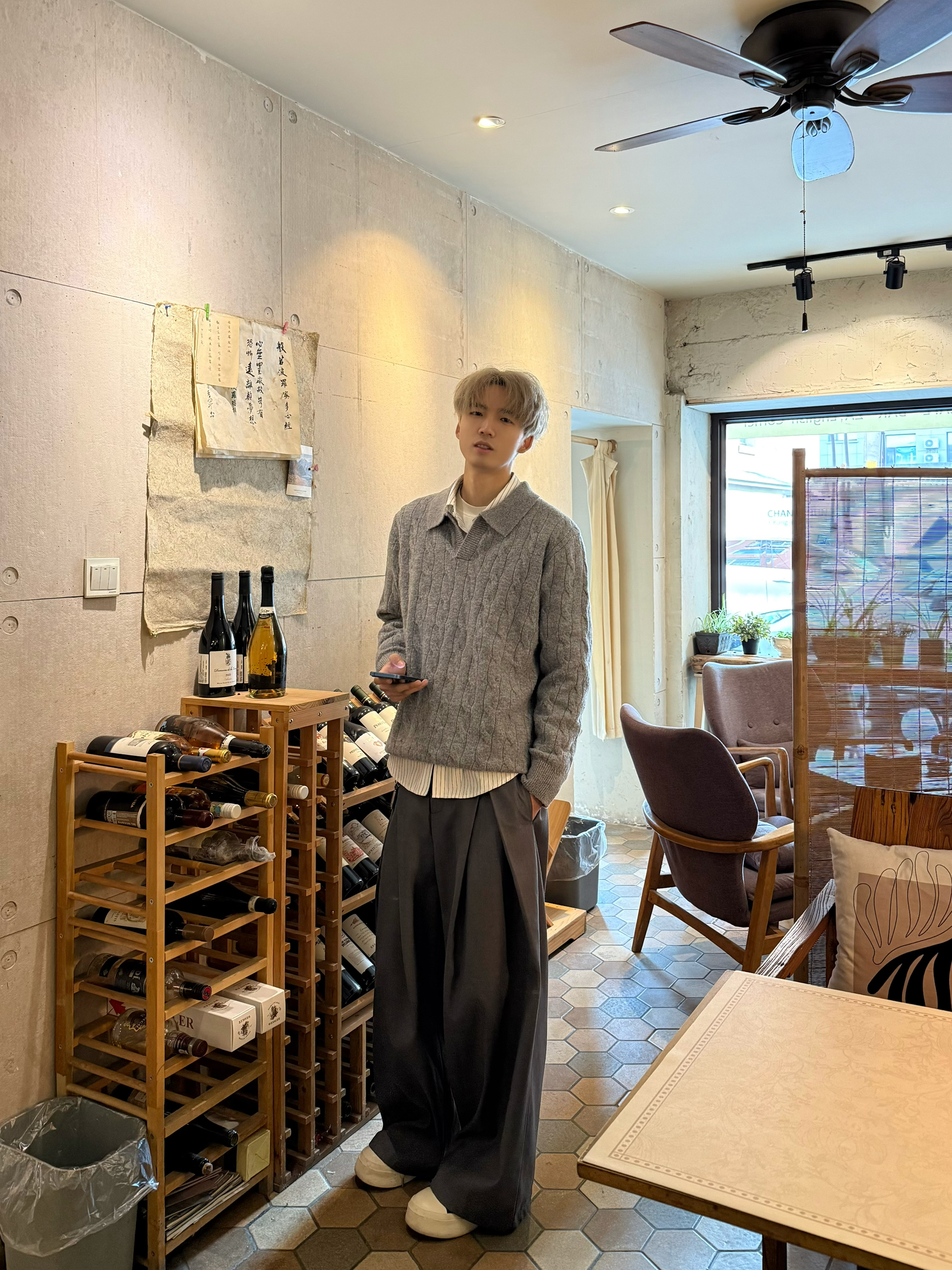前两天降温 今天总算回暖了 11度左右 终于不用裹得像个粽子 今天搭了套All grey的复古学院穿搭⬇️ 灰色麻花翻领毛衣配阔腿西裤 里面叠了件条纹衬衫 领口不系扣 微微露出来怪有层次的✅下摆也漏一点衬衫边 刚好简约中 透着点cityboy的松弛感 下午去朋友店里待了会儿 实在是在家里待不住 店里暗黄的复古灯光挺让人放松 花了点小钱 点了杯橘香气泡水 淡淡的 可能是喝美式喝习惯了 偶尔换个口...