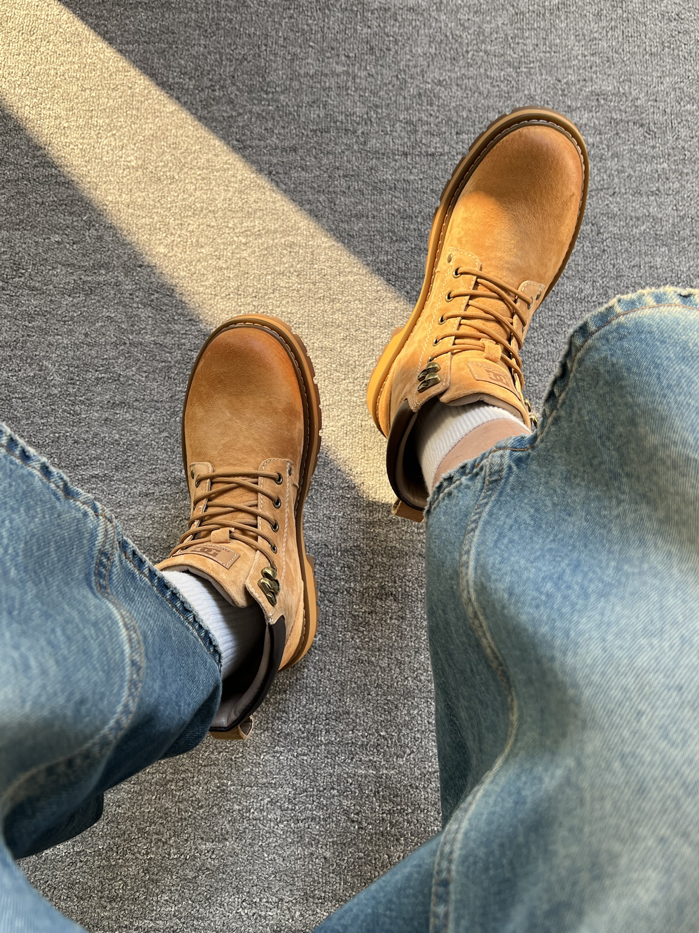 做旧复古黄色 秋冬氛围感十足! 上脚意外的舒适又柔软!我入手这双加绒款 秋冬再也不担着脚冷了! 日常搭配工装裤 牛仔裤都很百搭~ #冬日宝藏休闲户外鞋 #一双鞋穿遍秋天 #DCSHOES马丁靴 #秋冬的第一双大黄靴 #大黄马丁靴分享
