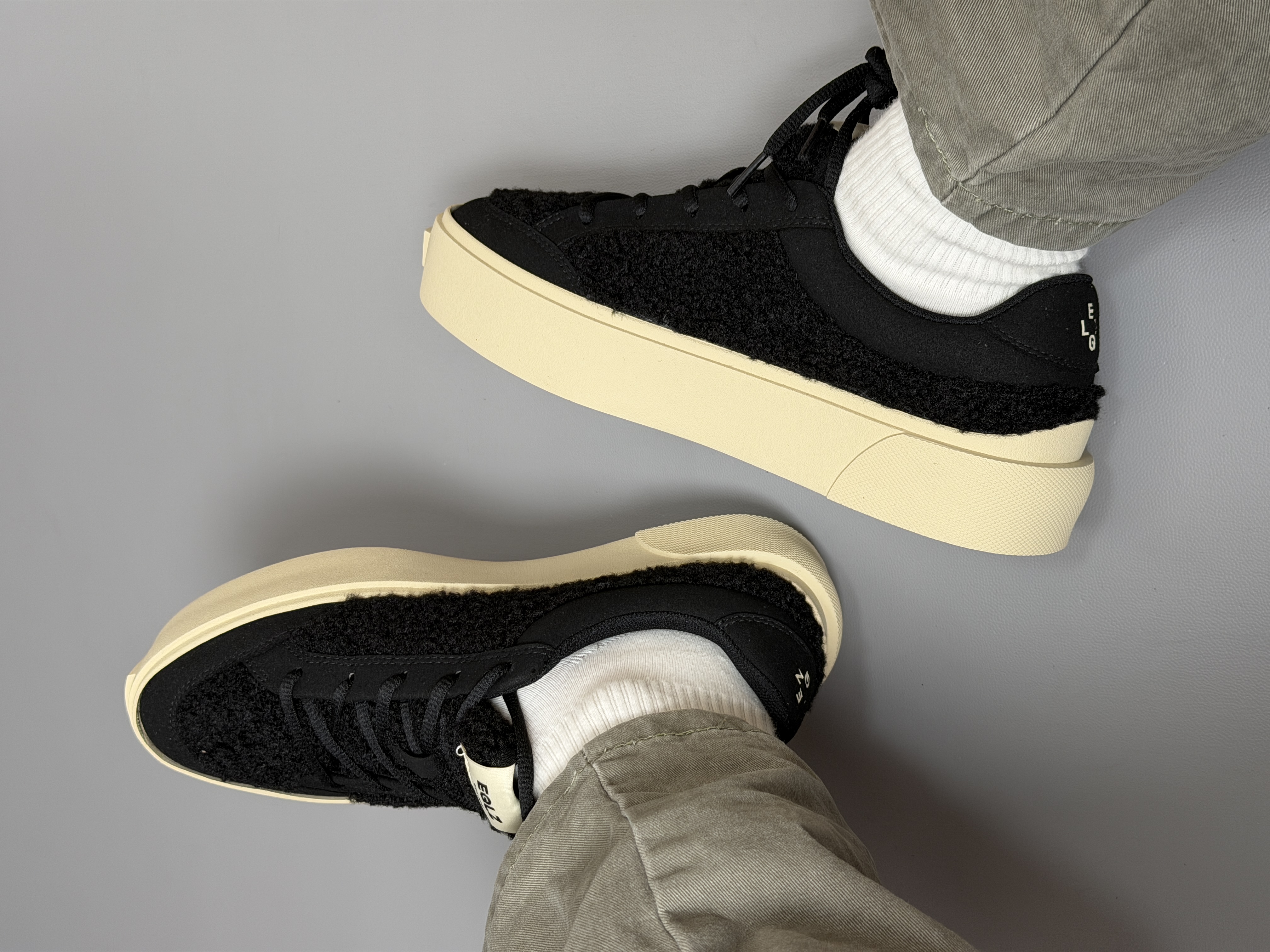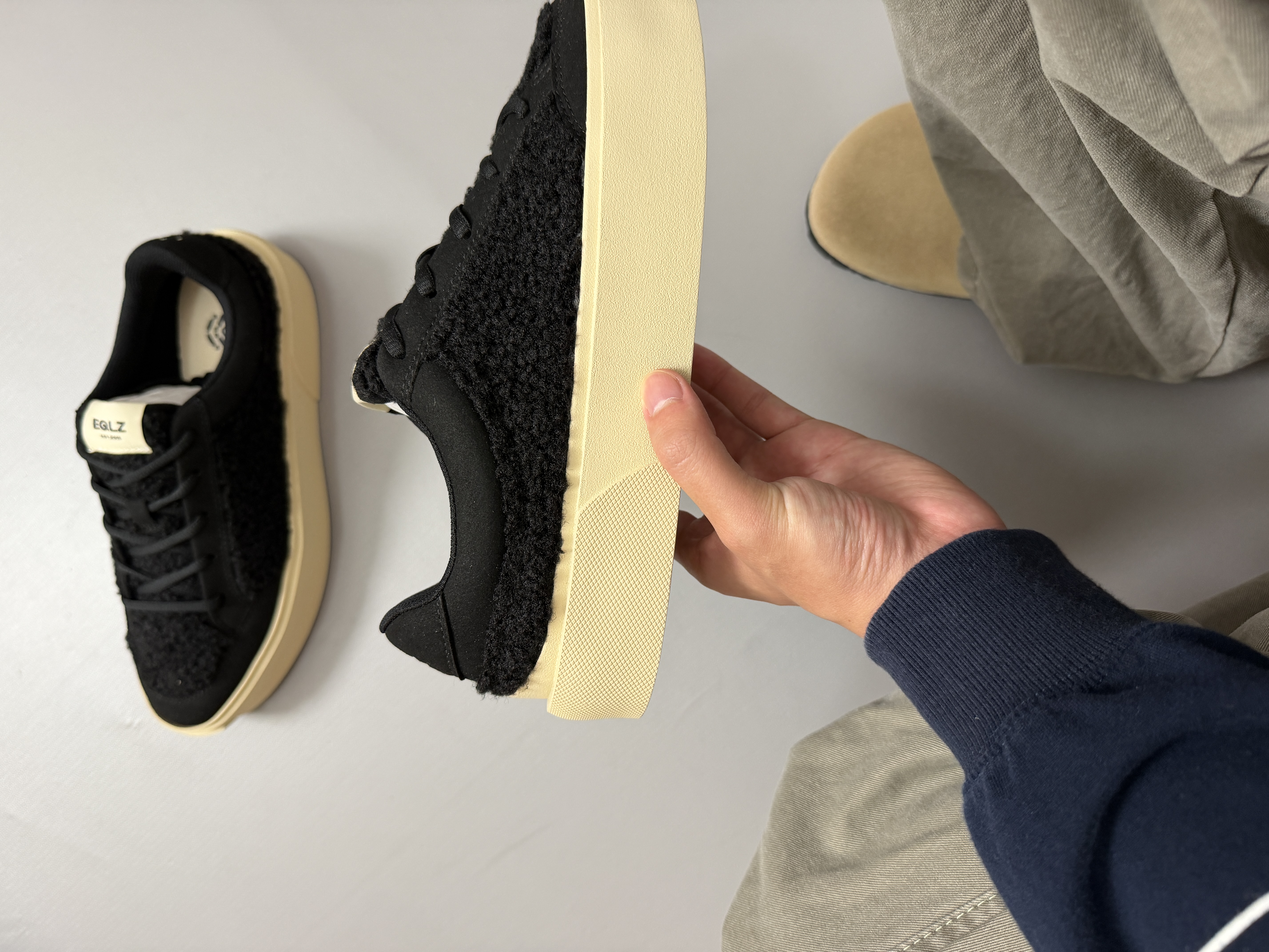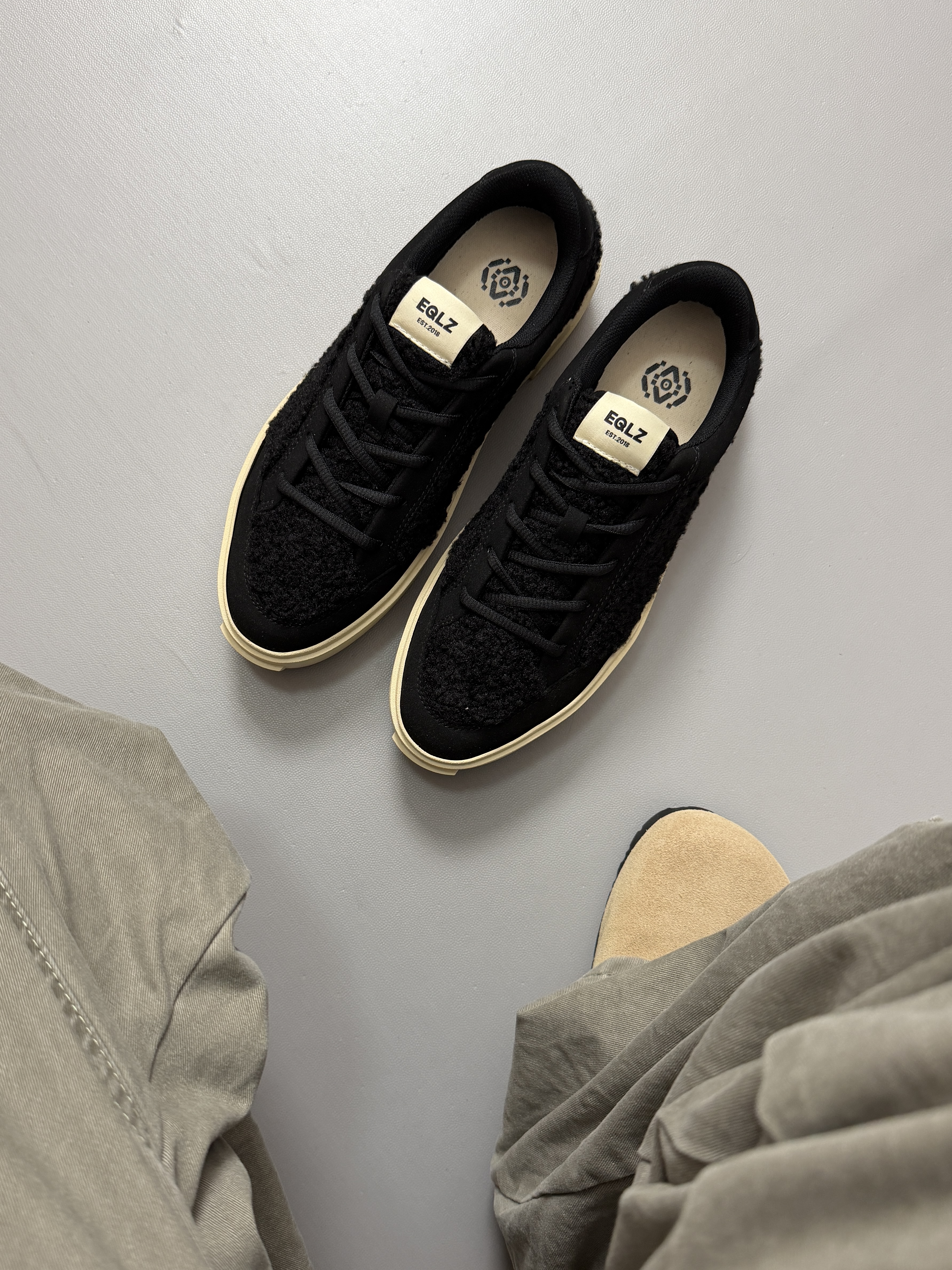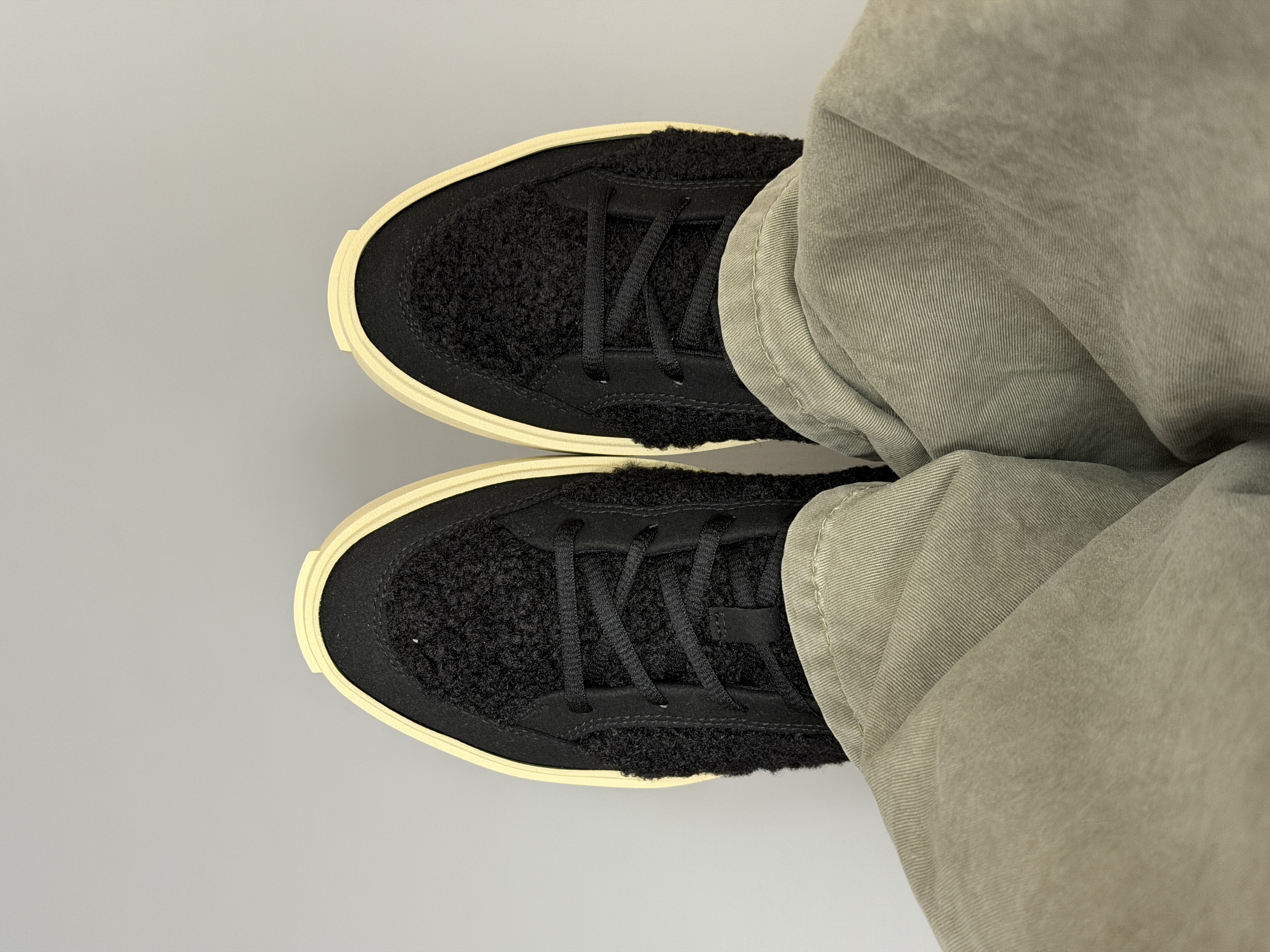 最近❤️爱上了双蛮特别的板鞋! 仿羊羔绒☁️居然出现在一双板鞋上, ✅这也太新颖太吸引人了吧~ ✅全黑的鞋面加上复古白色打底, 整双鞋看着无违和感,穿搭性也是杠杠!! ⚠️尺码参考:170/120 穿着 41 码正的‼️