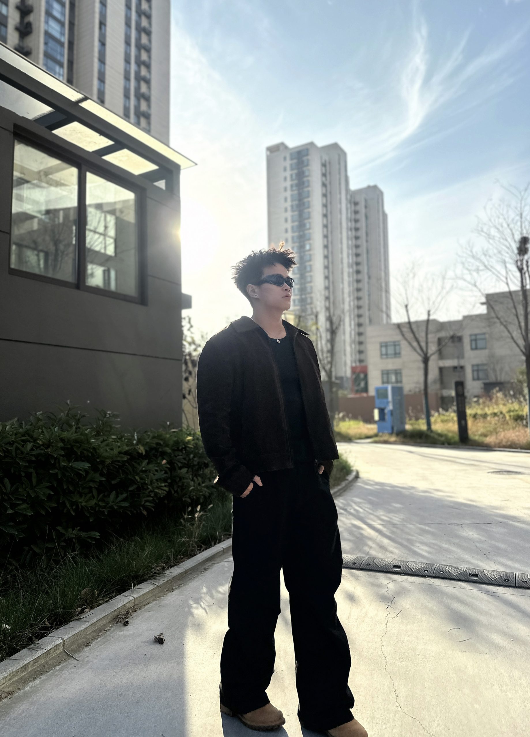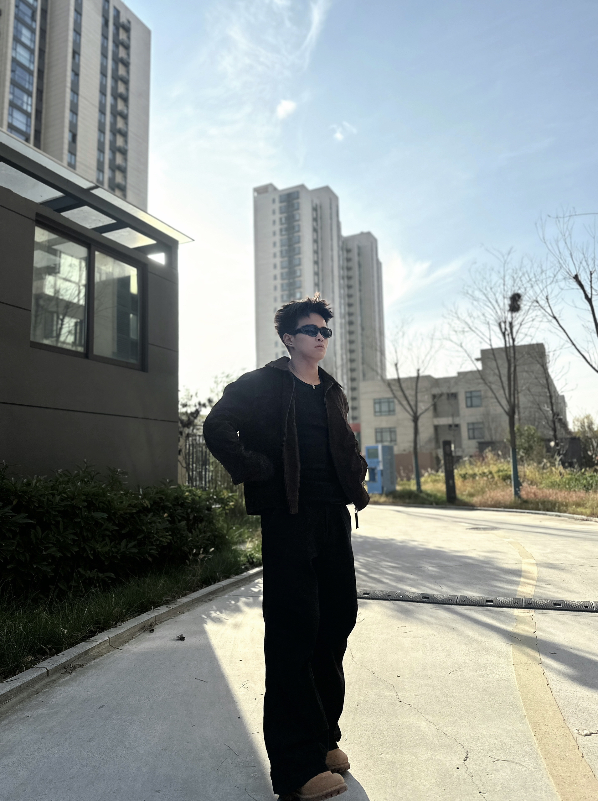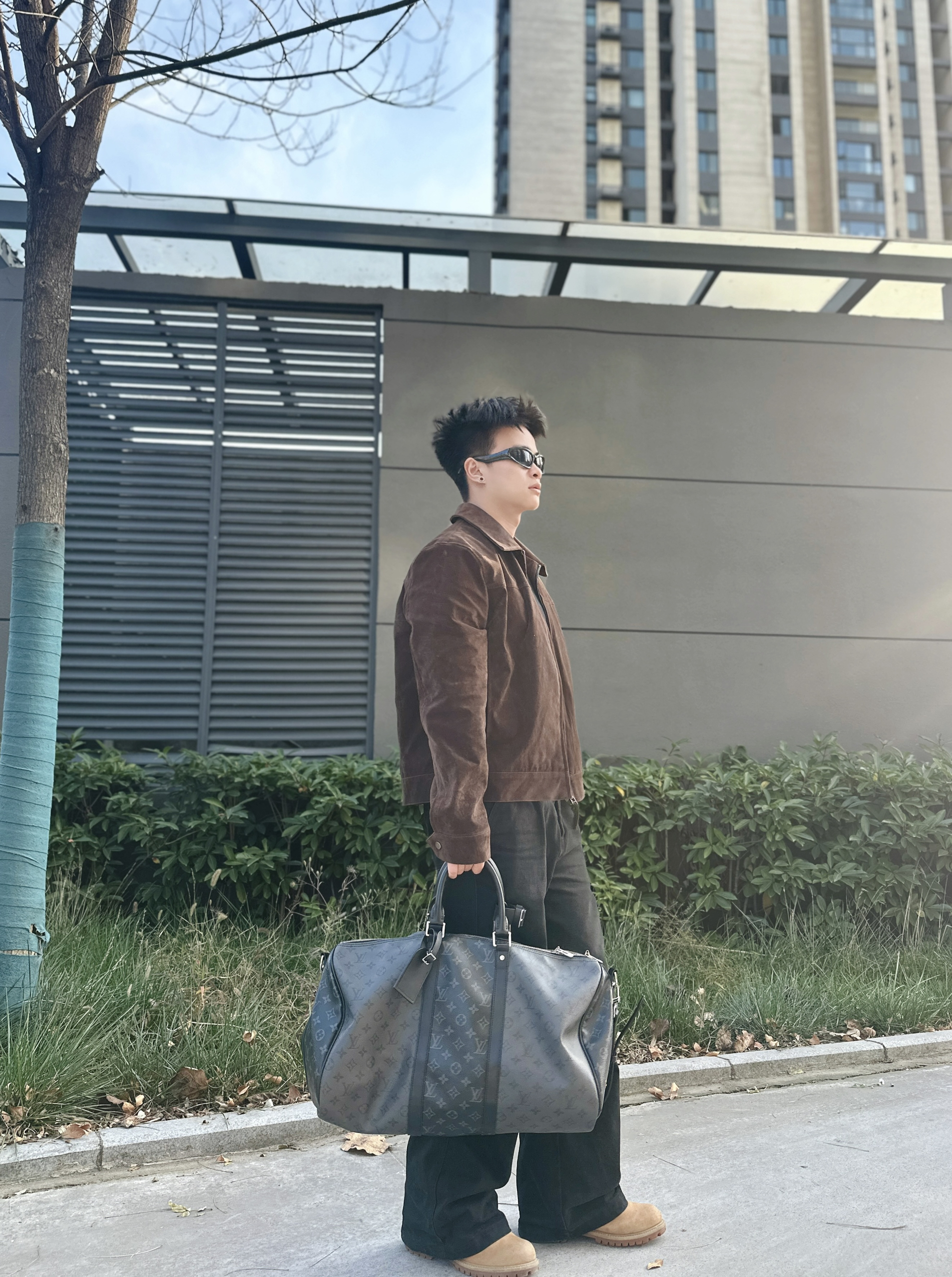 今天这套属于“随便穿穿但很有品”的类型👇 ▪️麂皮夹克选了棕咖色,自带暖调滤镜,秋冬穿不沉闷还显质感 ▪️内搭+裤子全黑,压低重心还能突出上衣的纹理感,微胖男生这么穿巨藏肉,适合任何身材的铁铁 ▪️重点是这个大容量包!老花+深灰调很显贵,通勤装电脑/日常装杂物都够用,拎着走自带松弛感 鞋子搭了经典的黄靴,和棕咖夹克呼应色系,整体就是“不费力的精致感”~ 177 69 M/L