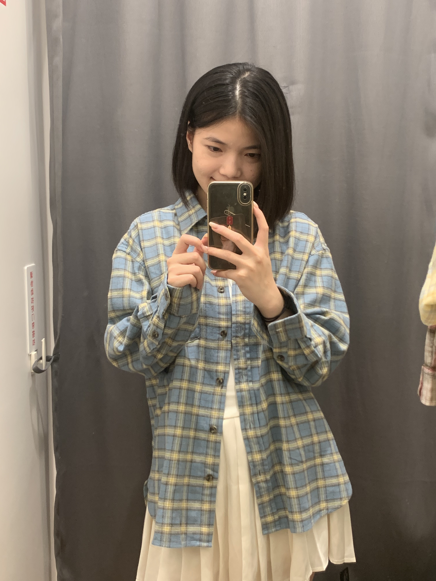超级显白的黄蓝格子衬衫 布料适合初秋单穿或者叠穿做内搭 颜色做的很好 实物是图一图二的颜色 比较亮 不沉闷
