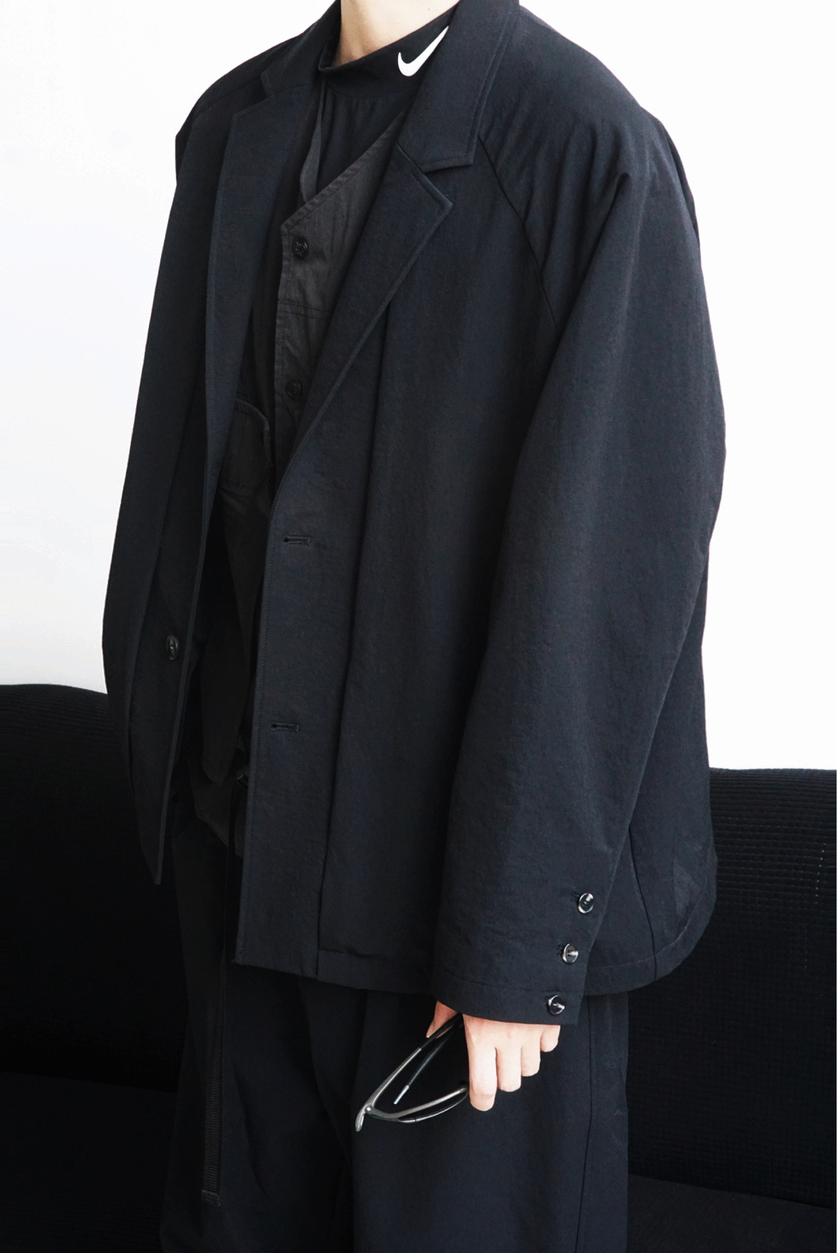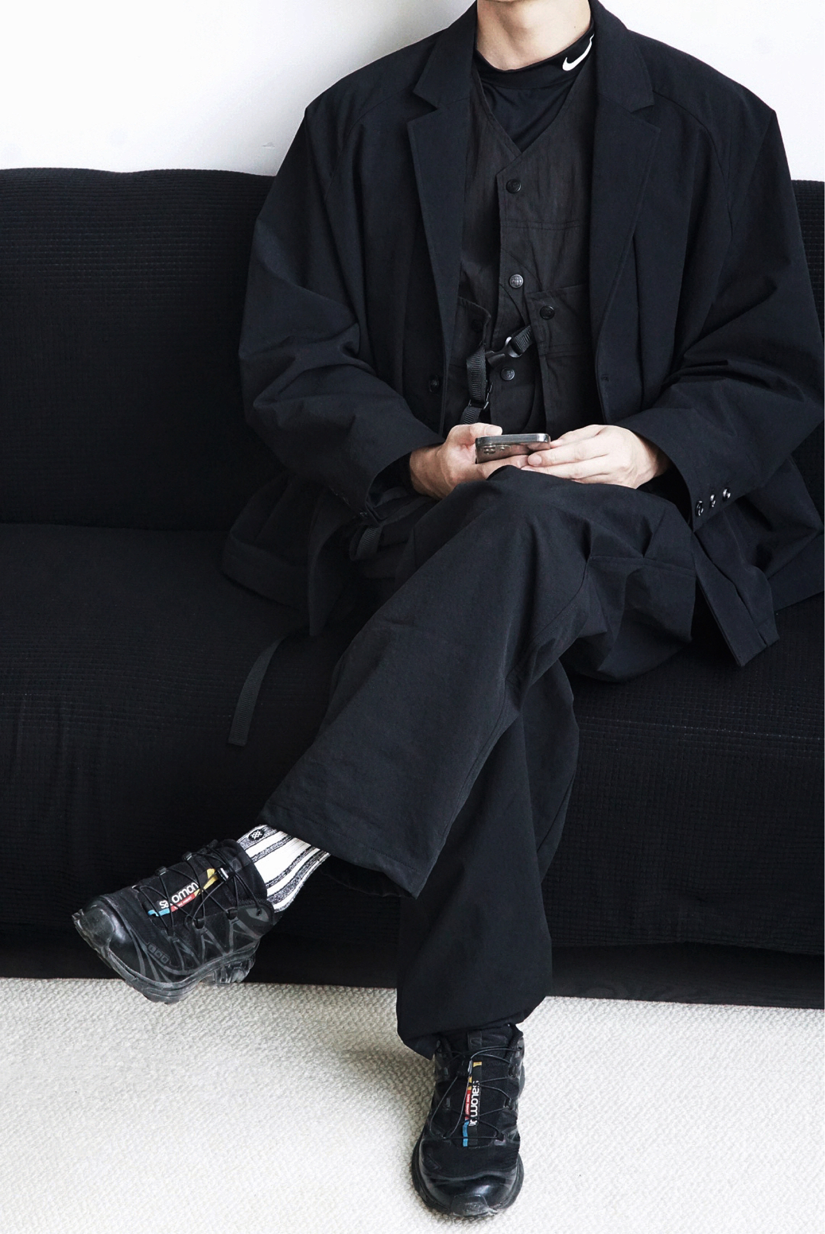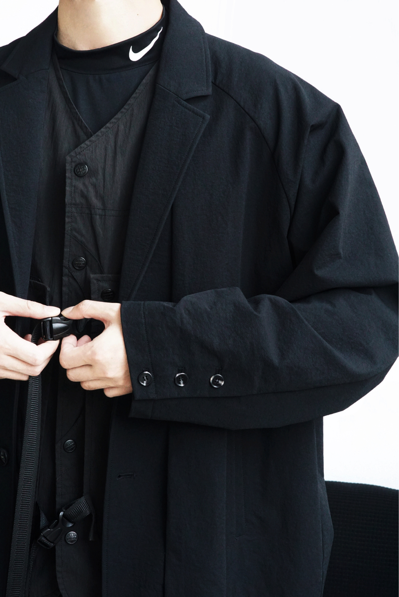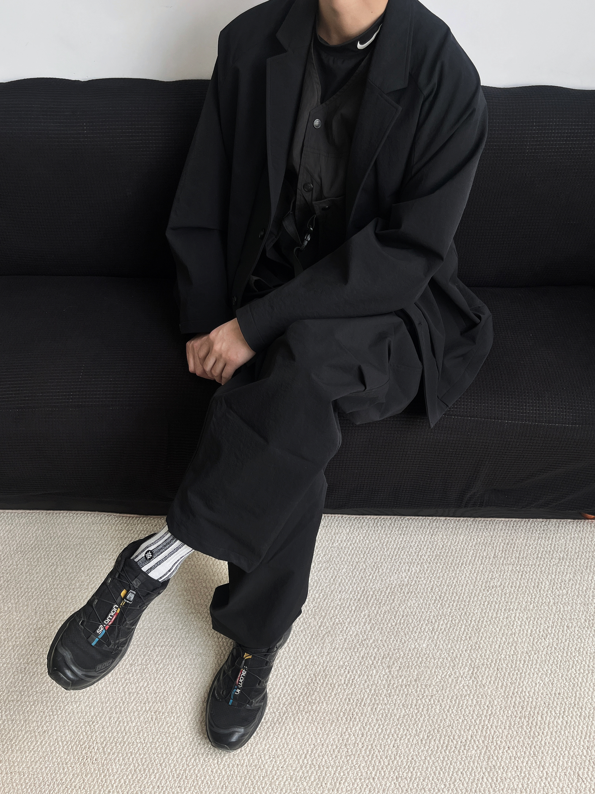 Nike Pro的正确打开方式 不局限于健身房,Nike Pro等运动类单品混搭西装和机能风单品真的毫无违和感,不得不说Nike FIT DRI面料太适合贴身穿在里面做内搭了,还记得之前Eugene Tong也会有类似的搭配逻辑,简约却不简单~