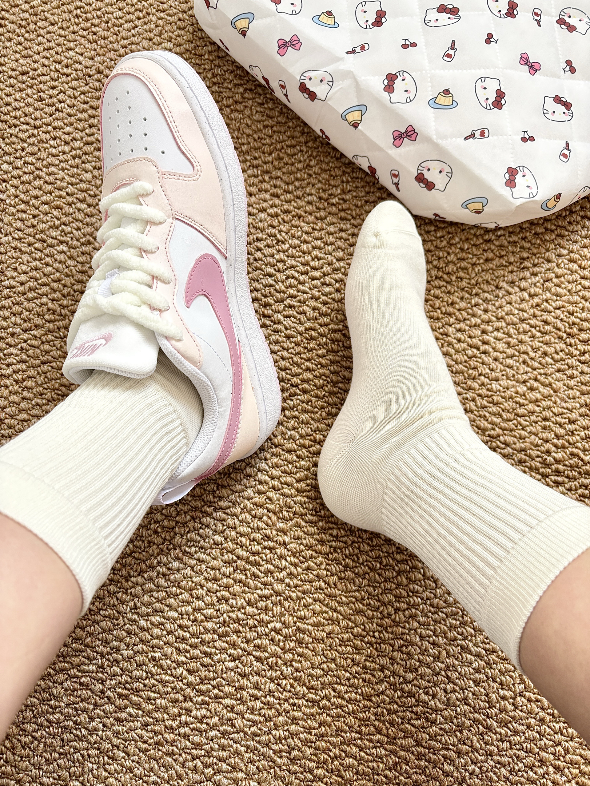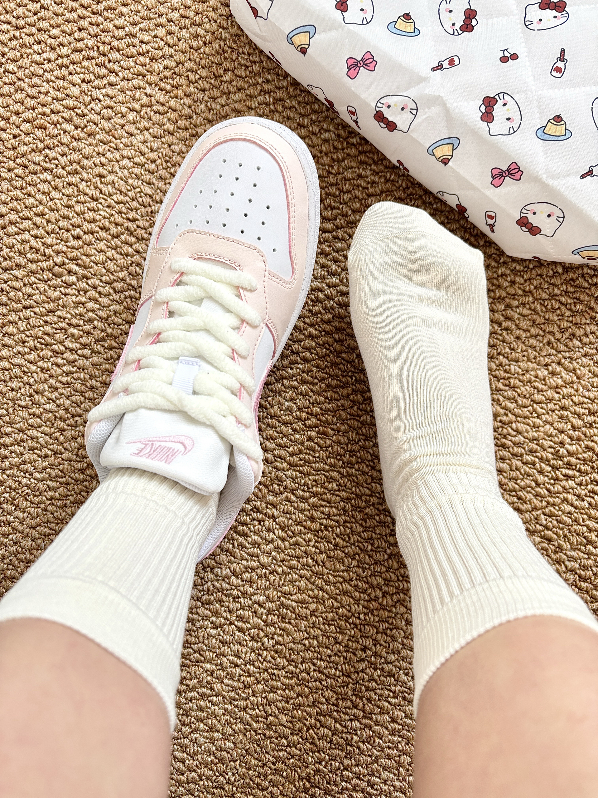 我的今日份穿搭 OOTD ~ 粉粉的定制 Nike 鞋和小白袜舒服又好看✌️ 简约板鞋搭配可爱涂鸦设计简直不要忒好看啦 上脚也不错脚感软软的狠舒服😌 搭配的袜子🧦是棉竹屋家的 纯棉材质的中筒长度厚度欧克现在穿刚好 袜筒螺纹设计包裹性不错不勒脚亲肤柔软 穿一天下来也不臭脚没有异味~ hin 不错性价比欧克我码住了✅