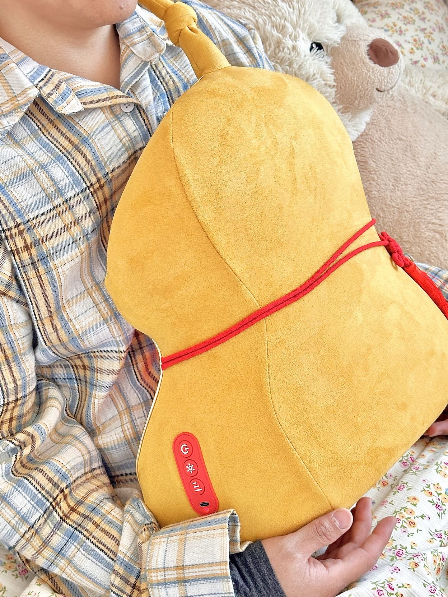 #把春天的颜色绑进家 没有什么比宅在家里开着窗户, 微风拂过,靠在沙发上看着电视 还正在一边按摩,更享受的事情了! 这我给家里添加了一个舒服又好看的小葫芦 是不是我不说都猜不到这是啥? 其实这是一个全身都可以用的按摩仪 对于我来说,这种不用插电的设计太棒了 我家是小房子,它可以随时移动就很友好 还是一个很春天的葫芦造型 舒服也好看,不用的时候,就是一个黄色的葫芦抱枕 #高颜值按摩器腰部按摩靠垫 ...