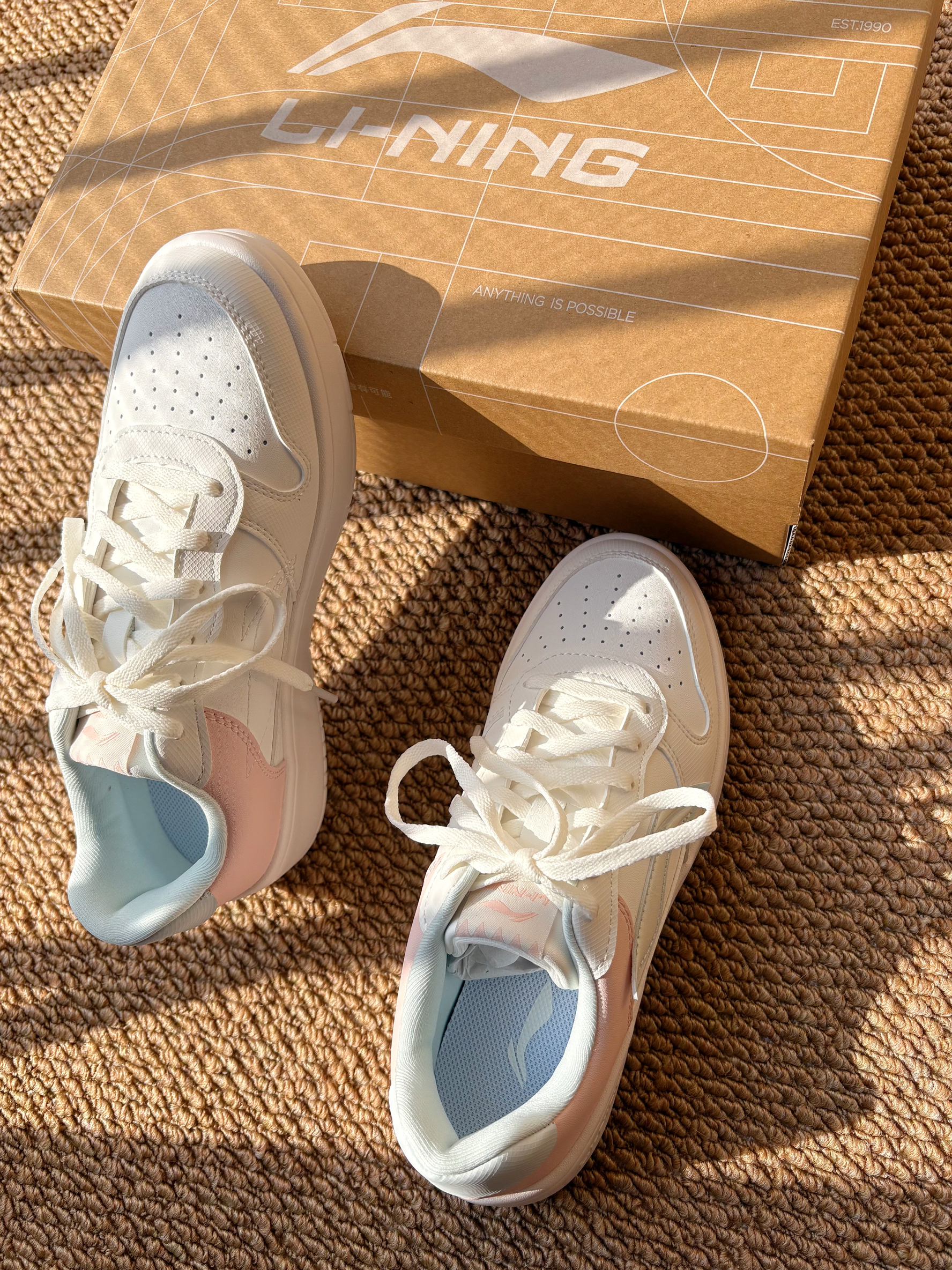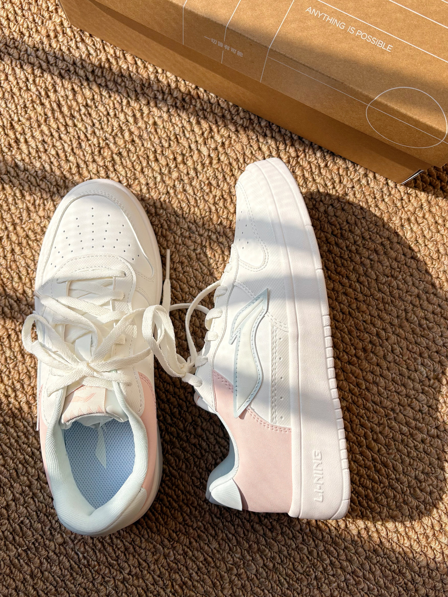 李宁运动生活系列休闲板鞋女粉~ 设计的休闲板鞋太贴心了 配色简单 清新可爱 ☺️