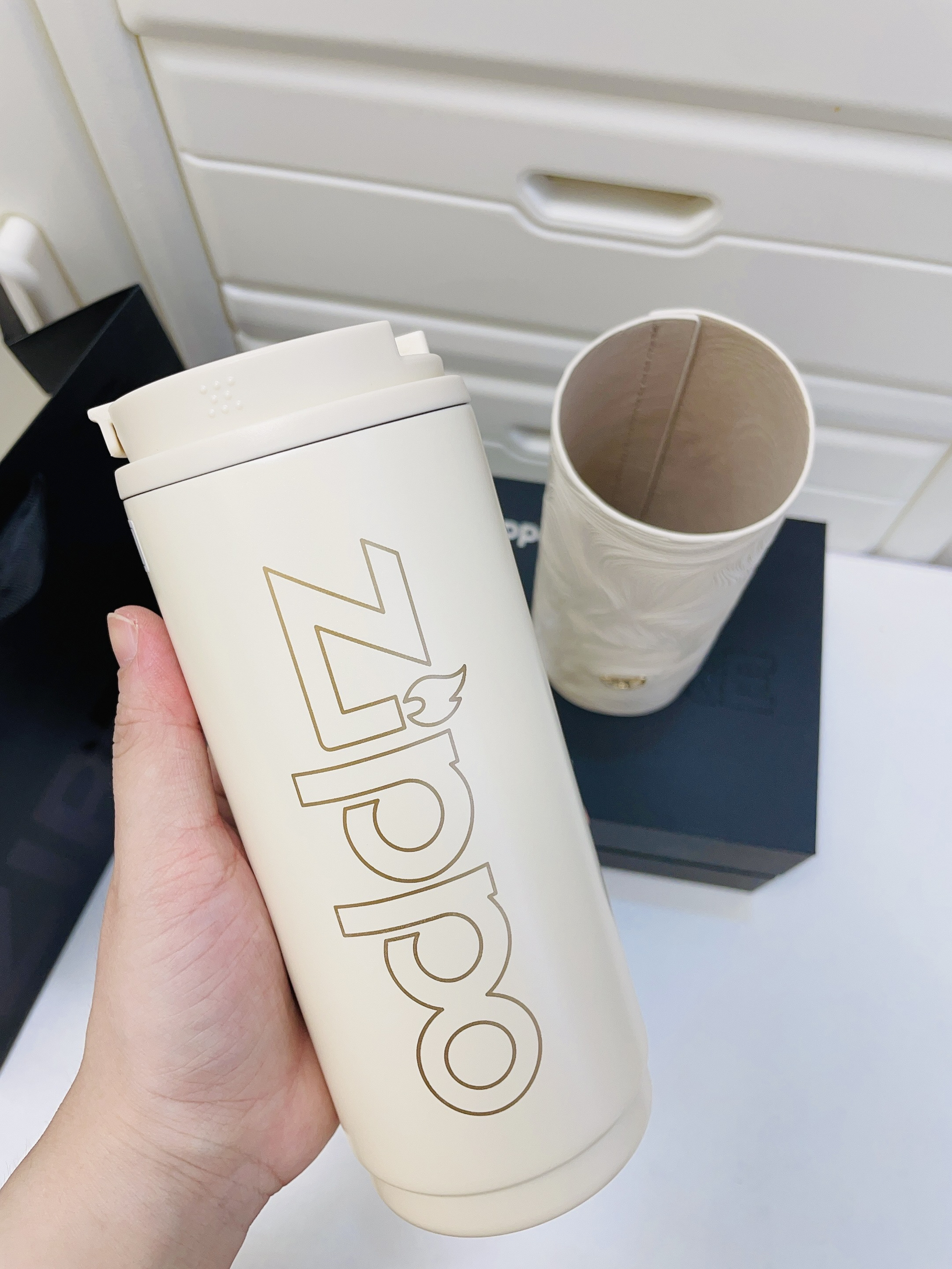 广东现在降温每天少不了要多喝水 Zippo这款杯子好好看啊 不锈钢内胆 保温效果好 早上倒的水到晚上还是热乎的 420ml容量满足我日常喝水需求 皮套还可以拆出来清洗蛮方便的 盒子包装精致 圣诞节用来送礼也可以