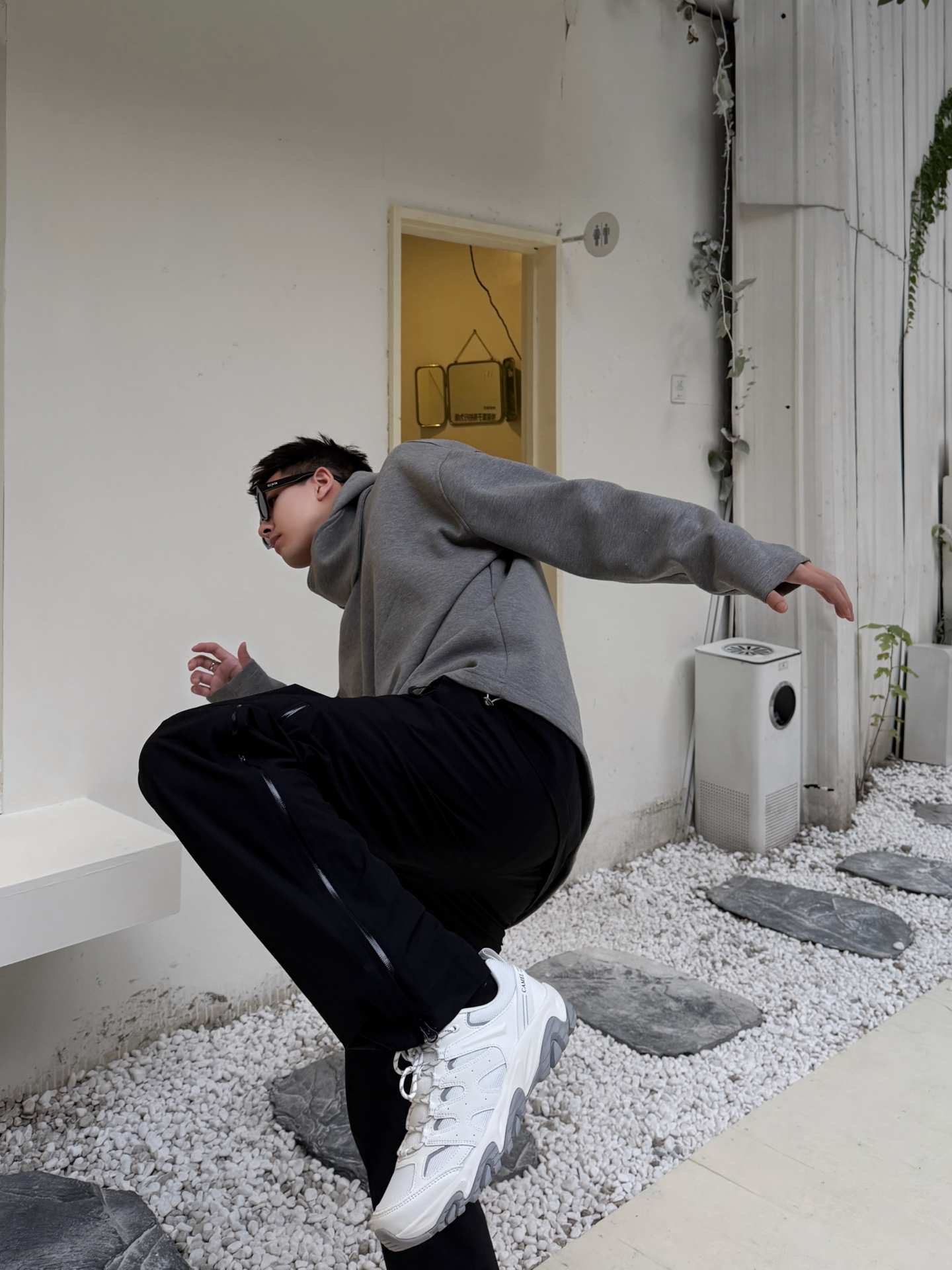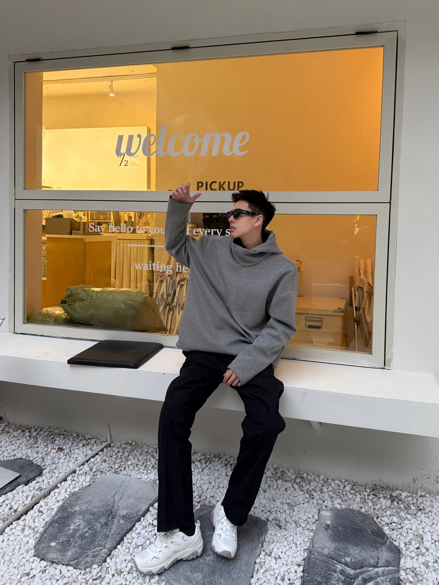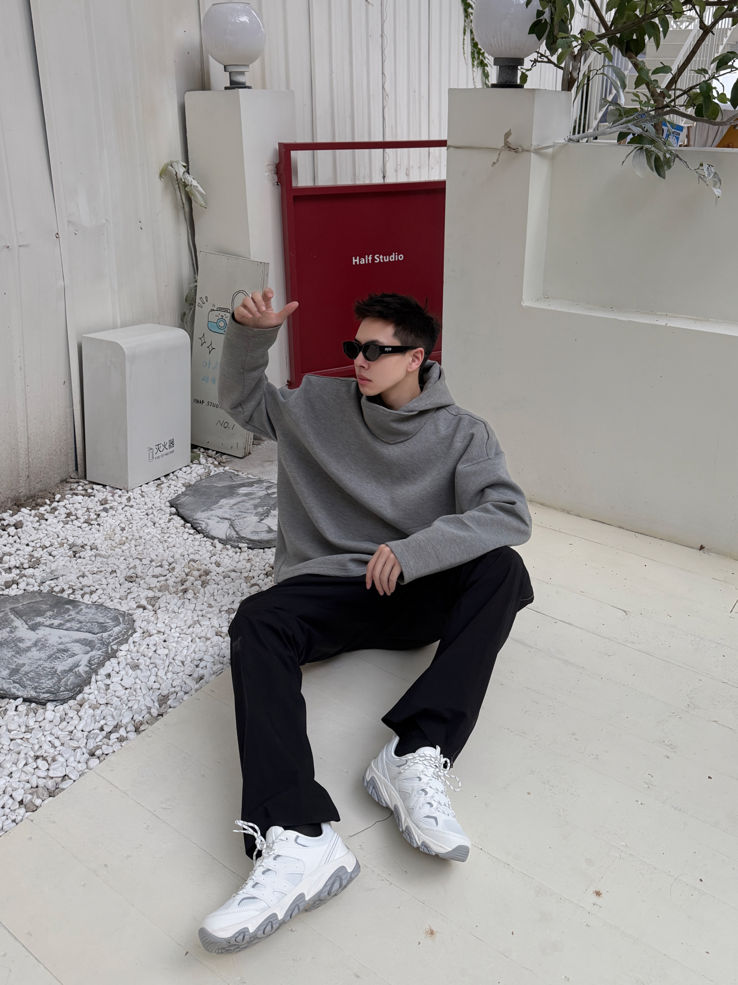 谁懂啊!今天这套灰+黑直接把“毫不费力的帅”焊在身上! 这件高领灰卫衣是我的秋冬本命!软乎乎的面料裹在身上像抱了团云朵☁️ 宽松版型直接把慵懒感拉满,随便搭条黑裤子就很有韩里韩气那味儿~ 裤子选了垂感巨好的直筒款,裤脚刚好盖住鞋面,配双 #CAMEL骆驼 的白色机能登山鞋鞋,又显腿长又有细节感👟 墨镜一戴,往白墙根儿一靠,韩系街拍那味儿不就来了? #冬日男生卫衣穿搭氛围感 #骆驼凯旋登山鞋 #冬...