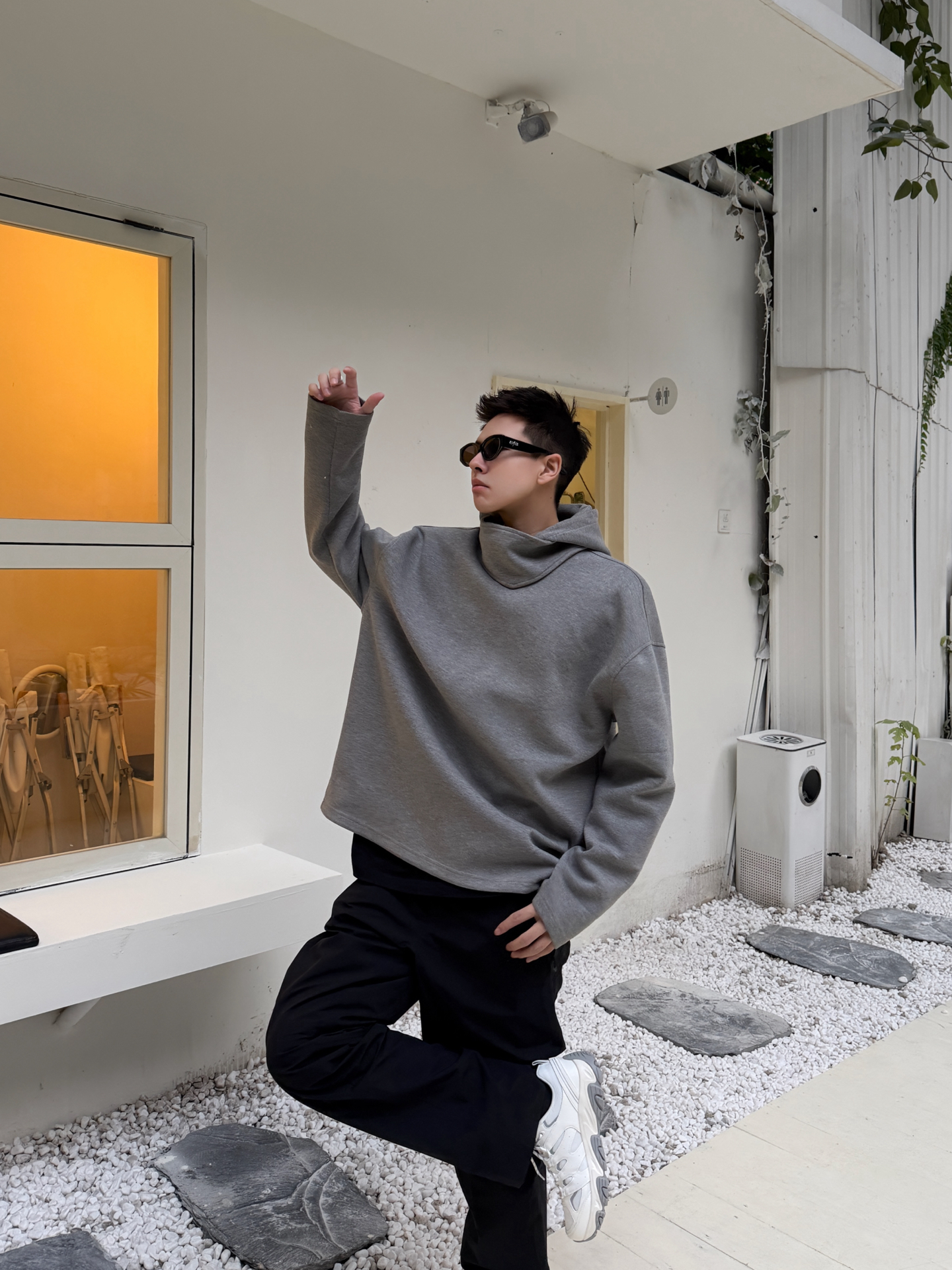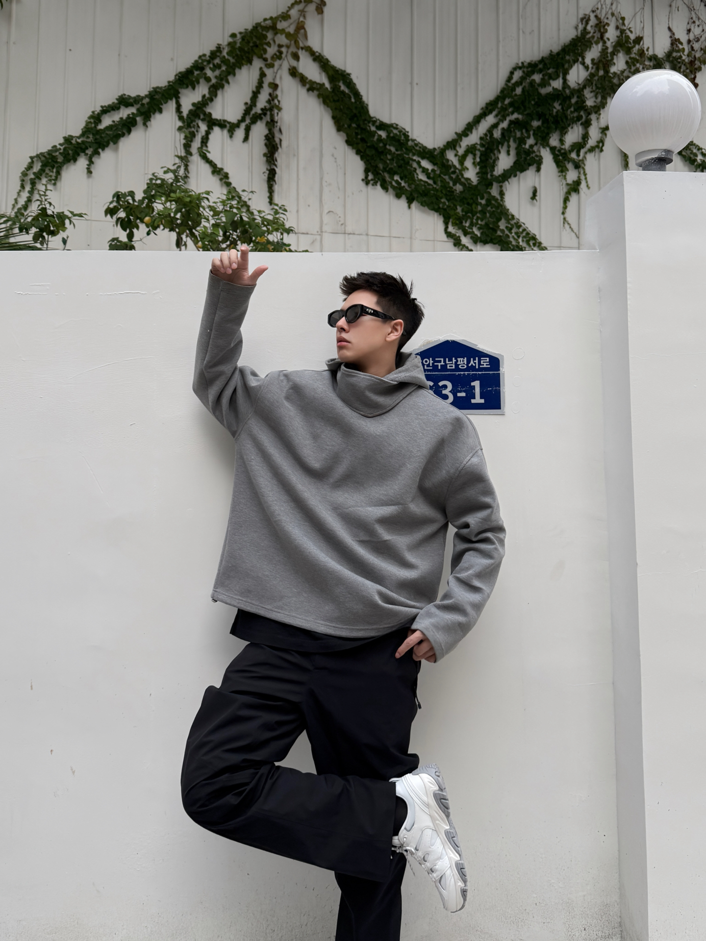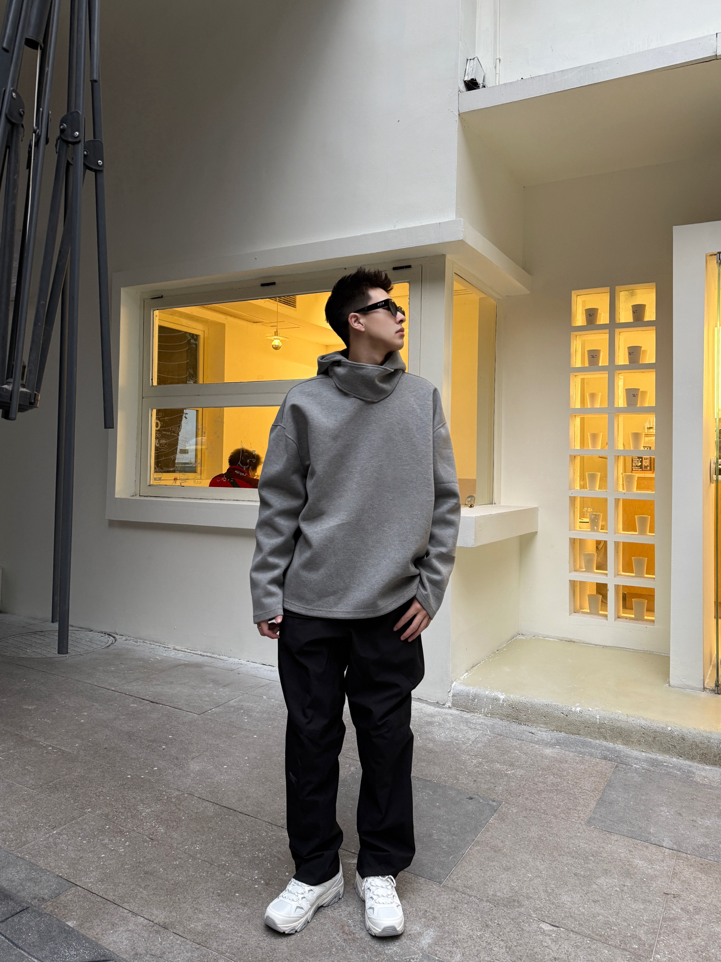 谁懂啊!今天这套灰+黑直接把“毫不费力的帅”焊在身上! 这件高领灰卫衣是我的秋冬本命!软乎乎的面料裹在身上像抱了团云朵☁️ 宽松版型直接把慵懒感拉满,随便搭条黑裤子就很有韩里韩气那味儿~ 裤子选了垂感巨好的直筒款,裤脚刚好盖住鞋面,配双 #CAMEL骆驼 的白色机能登山鞋鞋,又显腿长又有细节感👟 墨镜一戴,往白墙根儿一靠,韩系街拍那味儿不就来了? #冬日男生卫衣穿搭氛围感 #骆驼凯旋登山鞋 #冬...