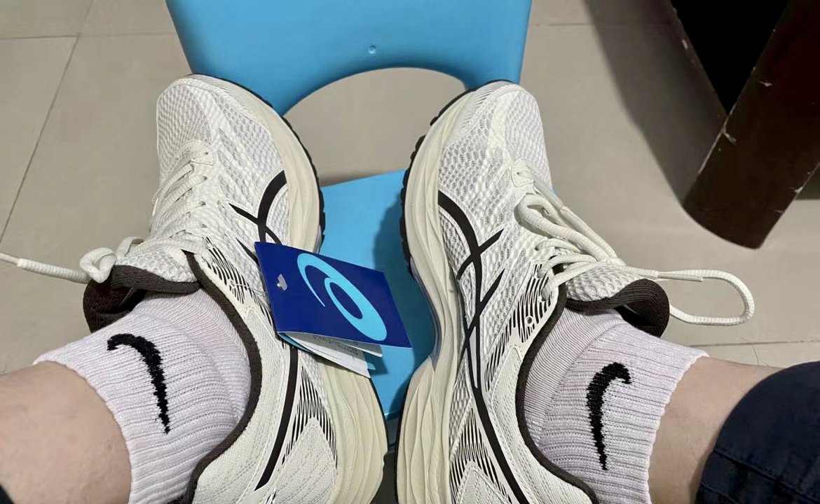 这双白蓝配色亚瑟士顶缓跑鞋太戳我! 米白打底+深蓝点缀,通勤出街跑步都适配,宽脚友好不挤脚。 FF Blast+中底+Pure GEL缓震胶软而不陷,支撑稳。 不过略显厚重、白色易沾灰,秋冬穿超合适,预算够闭眼冲~