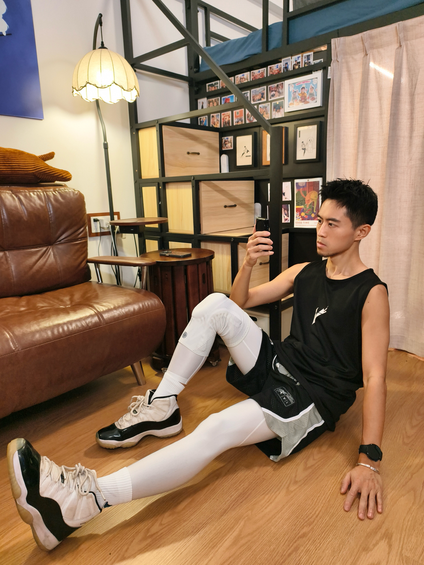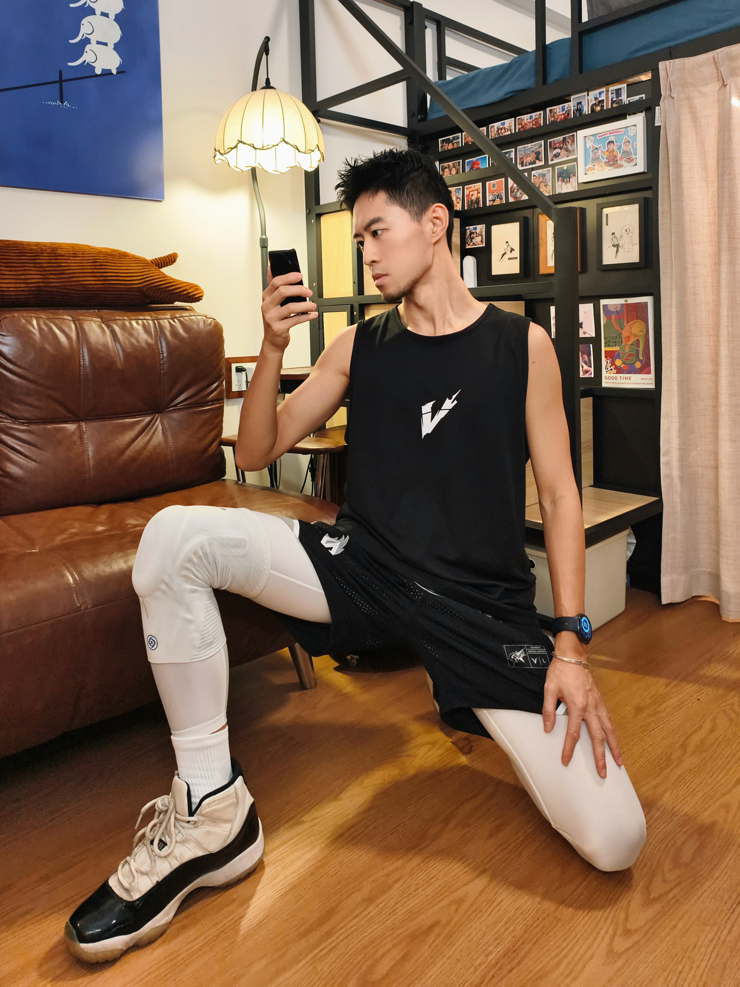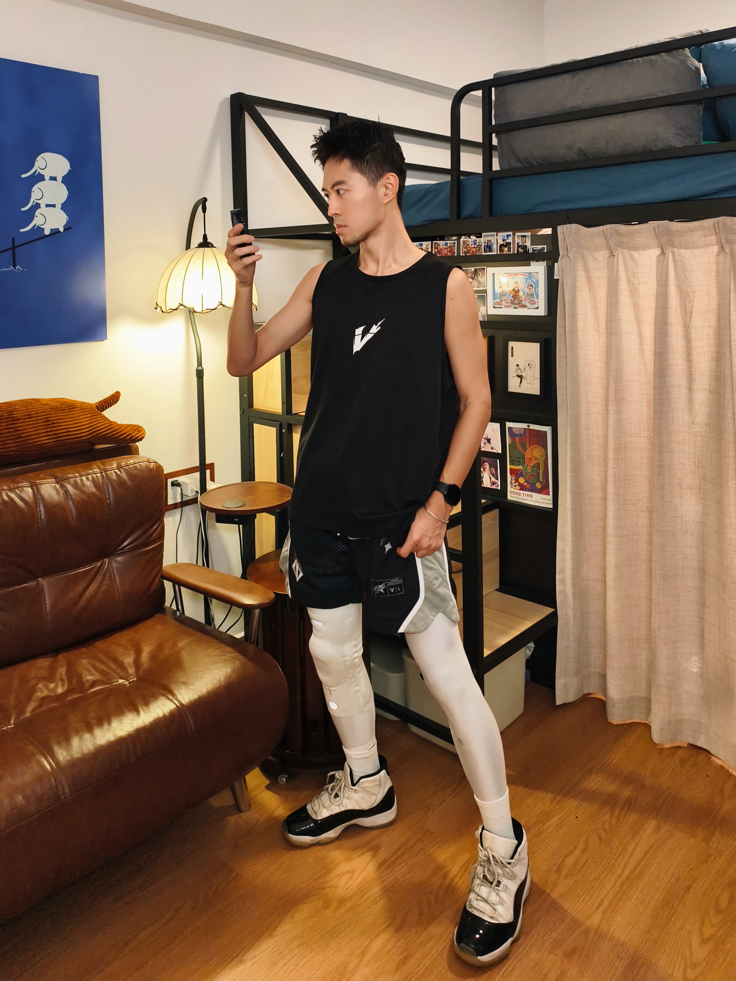 👕黑色无袖背心的闪电标识太抓眼,版型宽松不贴身,透气度拉满,不管是宅家还是打球都不会闷得慌,随性又利落。 🩳同系列拼色短裤细节感拉满,侧边网眼面料刚好适配夏天,活动起来完全无束缚,实用和颜值直接双在线。 🧦维动白色高弹紧身裤很舒服!贴合度刚好能衬出线条,和整套黑调穿搭形成反差,运动利落感一下就有了。 👟最后搭配AJ11康扣!运动风的氛围感直接拉满格,日常出街或打球都适配✔️ – #高弹紧身裤...