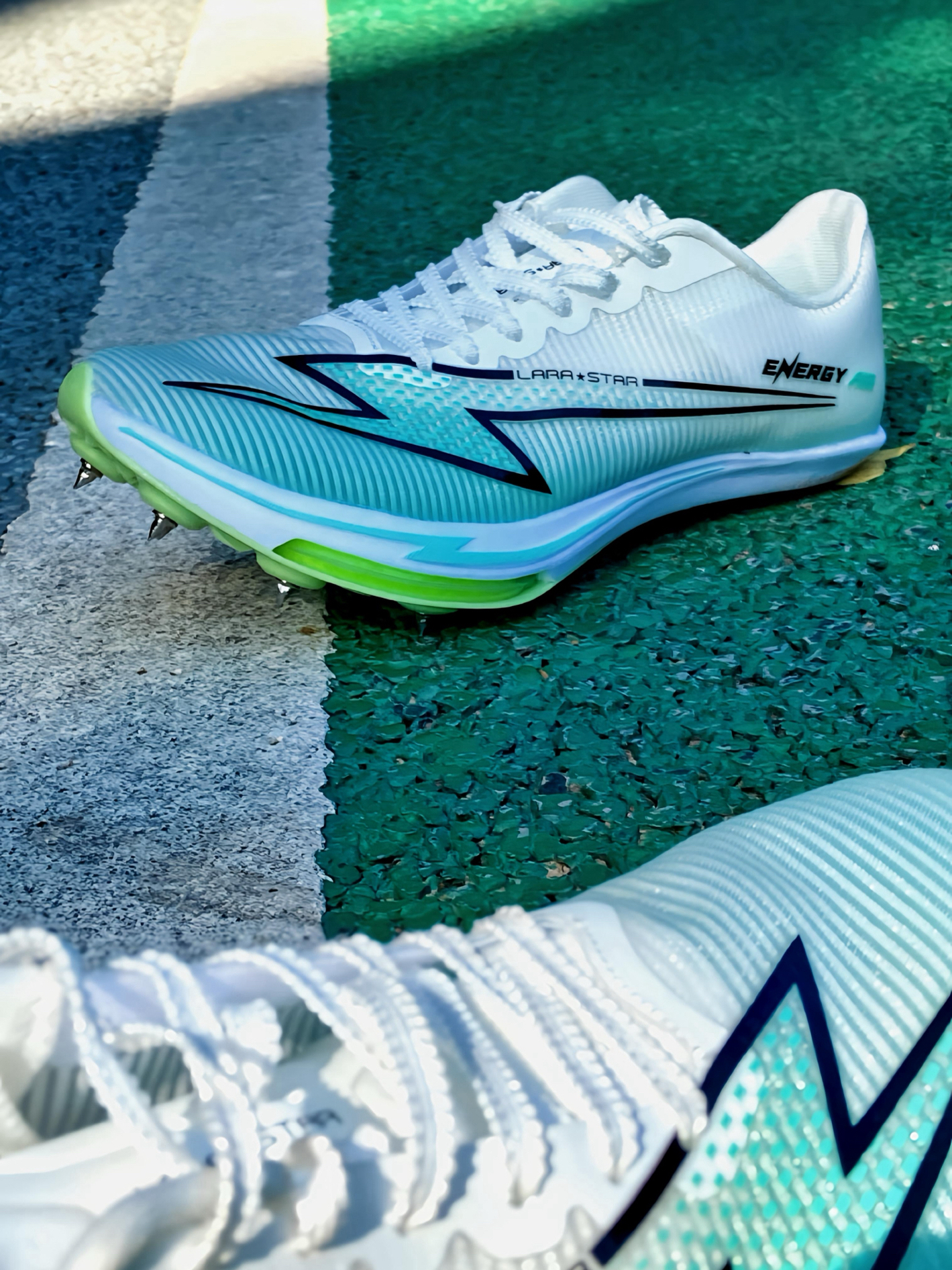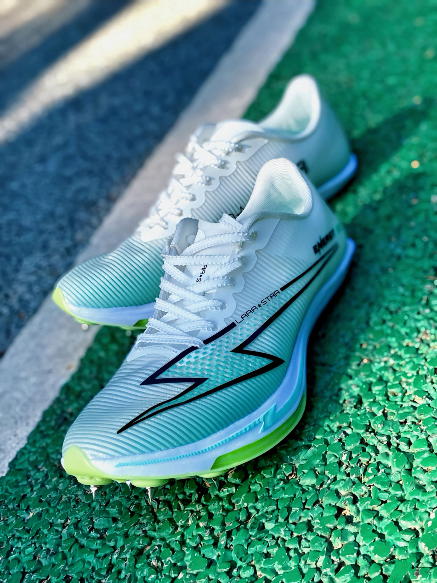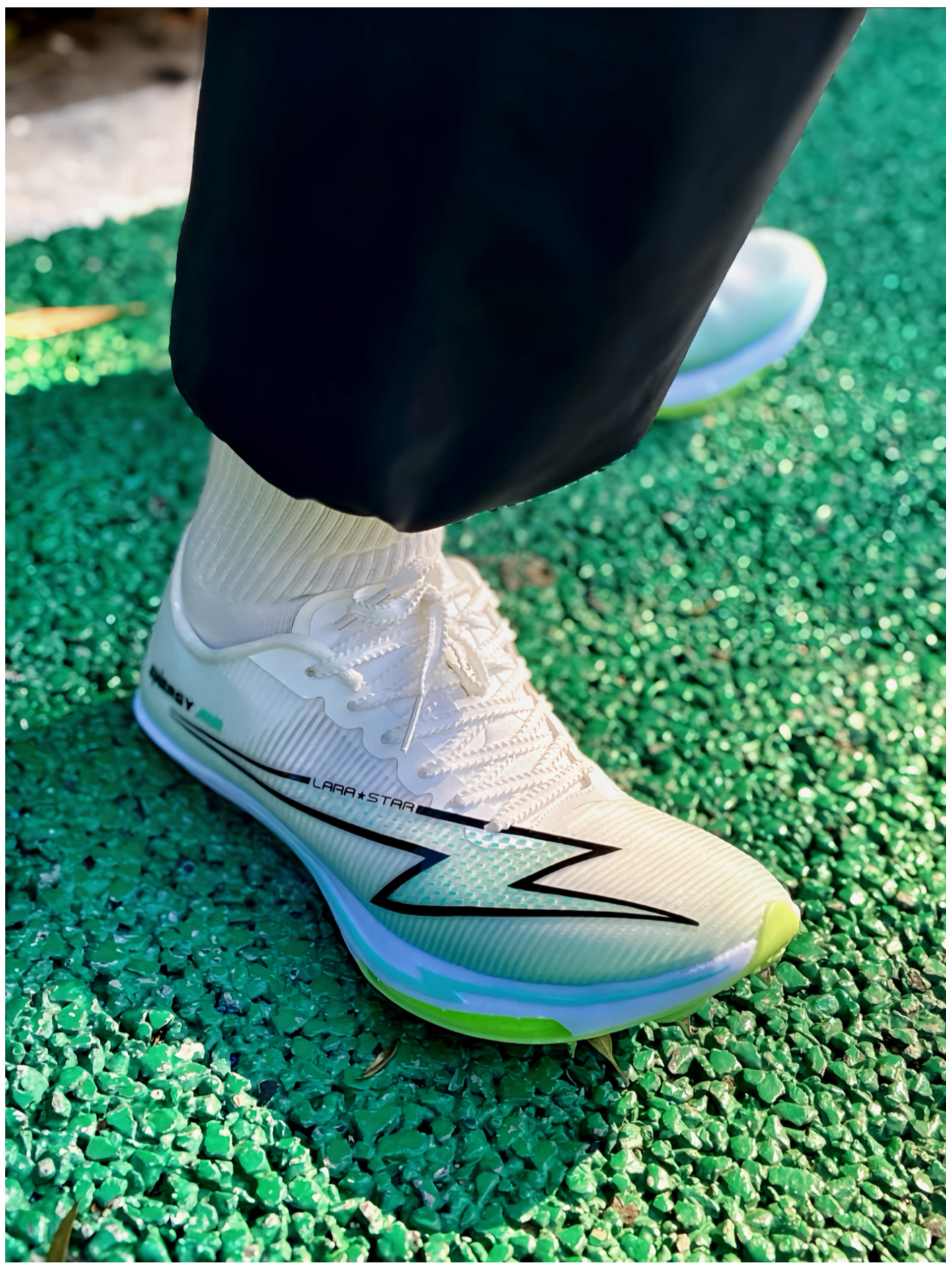 说实话,第一次穿上这双 #LARA STAR/劳拉之星 能量气垫钉鞋时,我真的有被惊喜到了。鞋身特别轻,包裹性很好,我觉得脚被稳稳固定住,但完全不勒。鞋底的绿色气垫加上银色锐利鞋钉,是我个人感觉最加分的配置——在跑道上抓地力特别扎实。 不管是短跑起步时的爆发,还是中长跑后程的发力,都能感受到明显的助推感。训练穿了几周,鞋面依然结实,没什么磨损。结合它亲民的价位,我觉得这性价比真的没得挑,考试或...