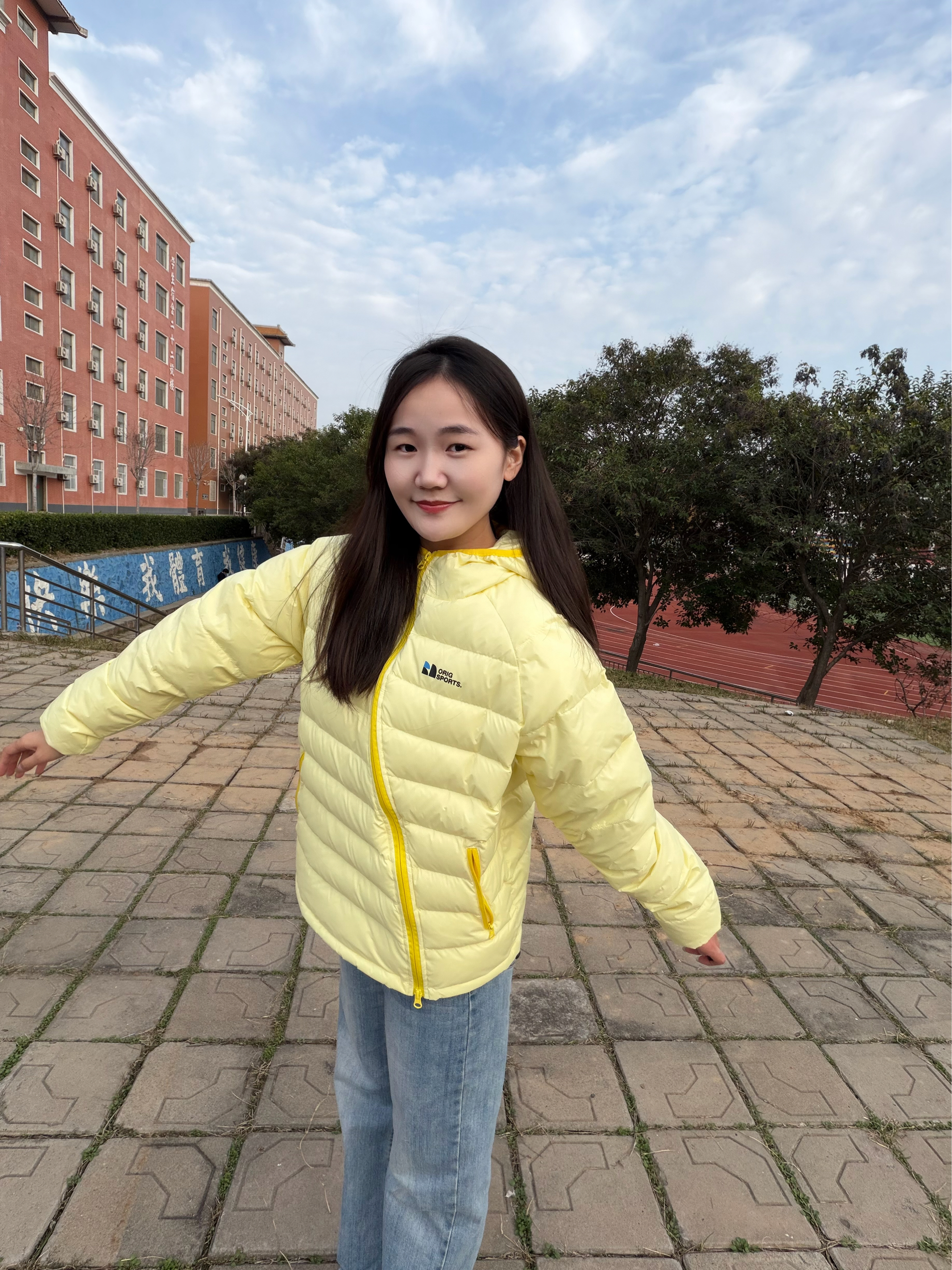 谁冬天能拒绝一件“会发光”的羽绒服啊!😍 今天是被这件奶黄羽绒服救了的一天! 这件奶黄色真的戳中我——90绒轻到像没穿,斜拉链+国潮排骨架设计,随便搭条牛仔裤就能出门,暖呼呼还显白~✨ 郑州这几天降温穿它刚好,暖乎乎还能当个移动反光板(显白buff叠满)!🌟