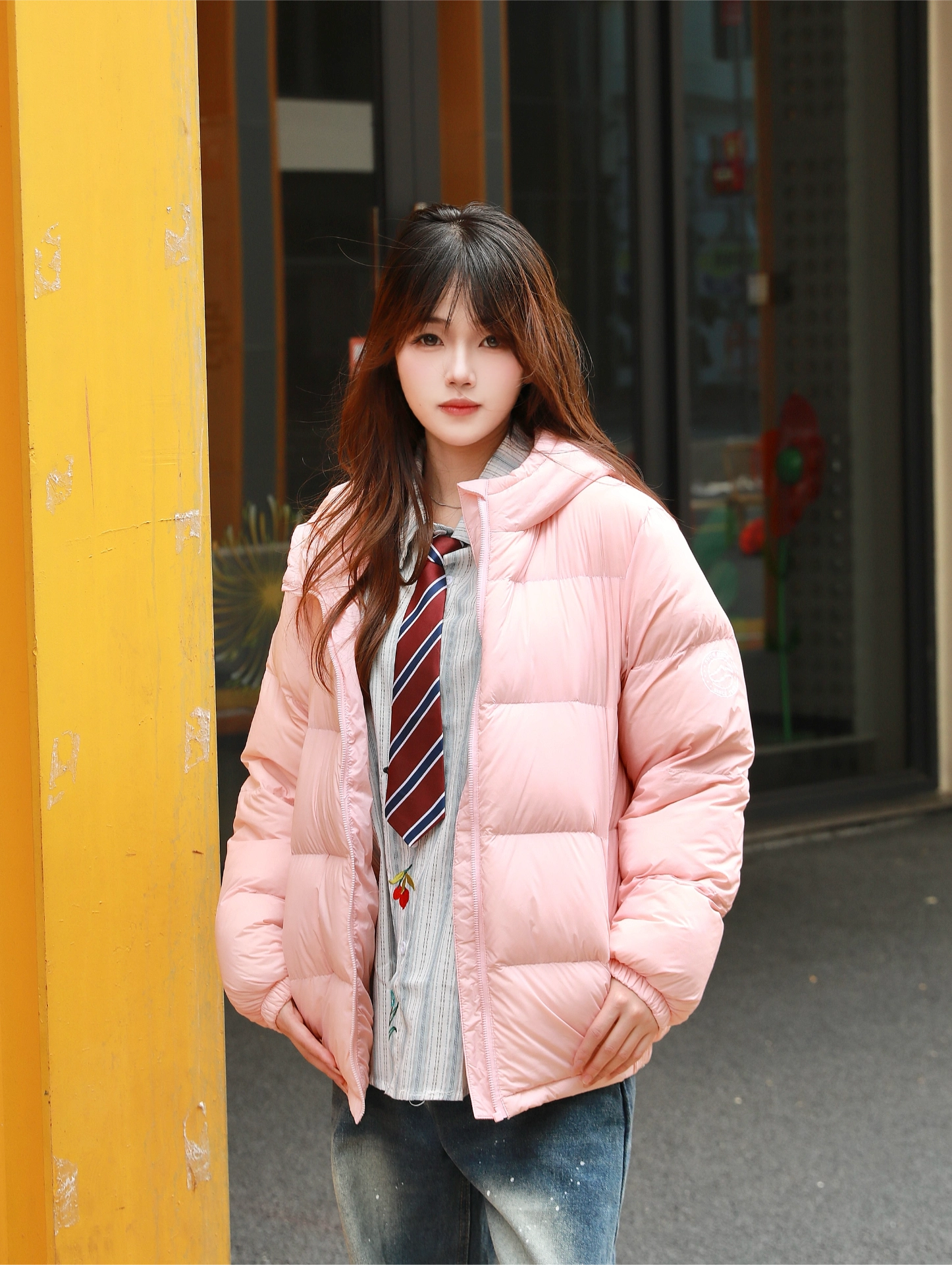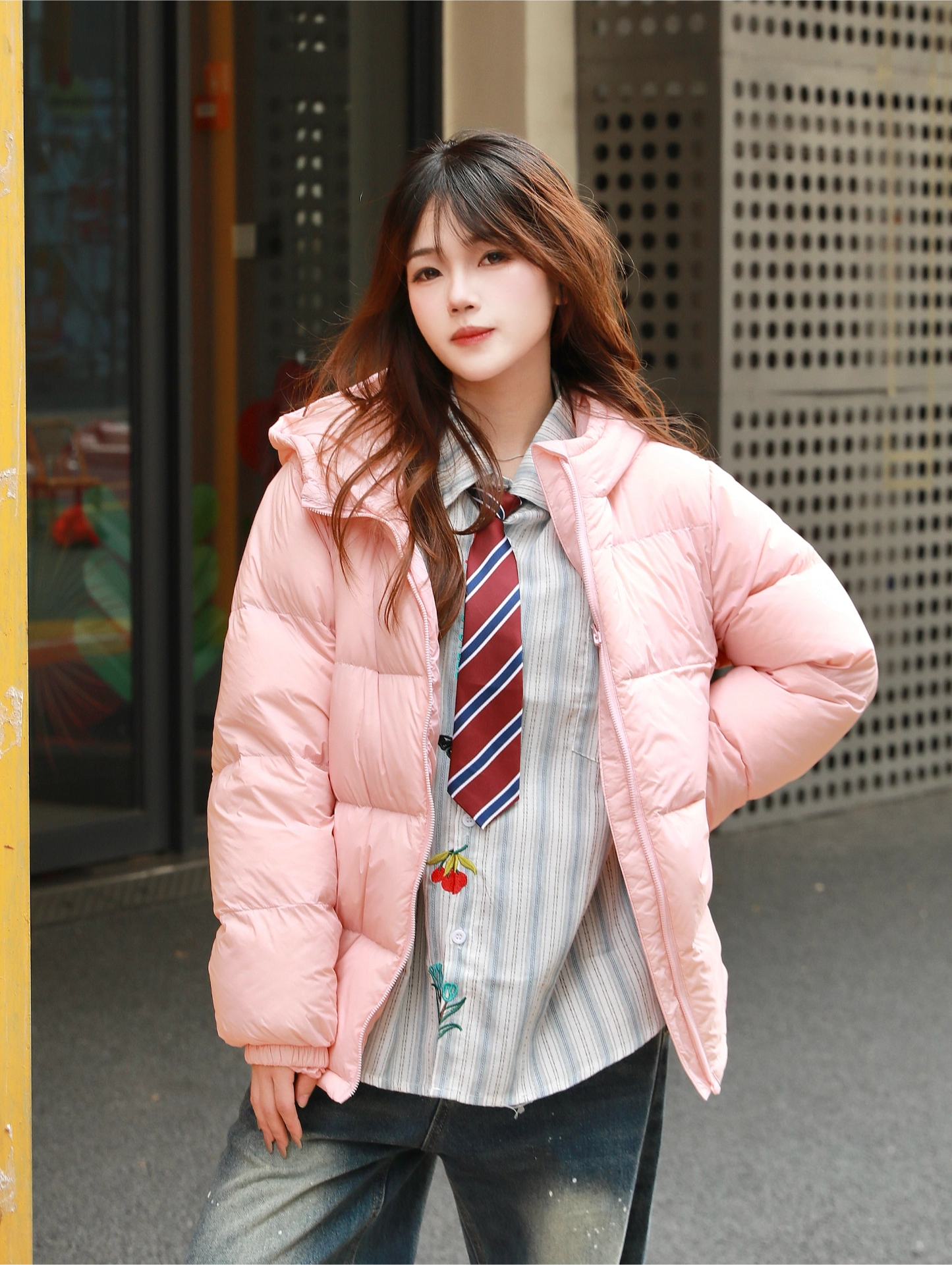 hello 大家好 我来给大家分享今日份穿搭 今天是甜飒风穿搭 羽绒外套➕条纹衬衫领带➕牛仔长裤搭配 穿出甜酷双感气息 上身羽绒外套设计 甜飒又保暖 今天的主角是这件甜飒风羽绒外套 款式吸睛 上身甜飒值拉满 怎么搭配都还不错 推荐给宝子们哦 图源网络,侵删!