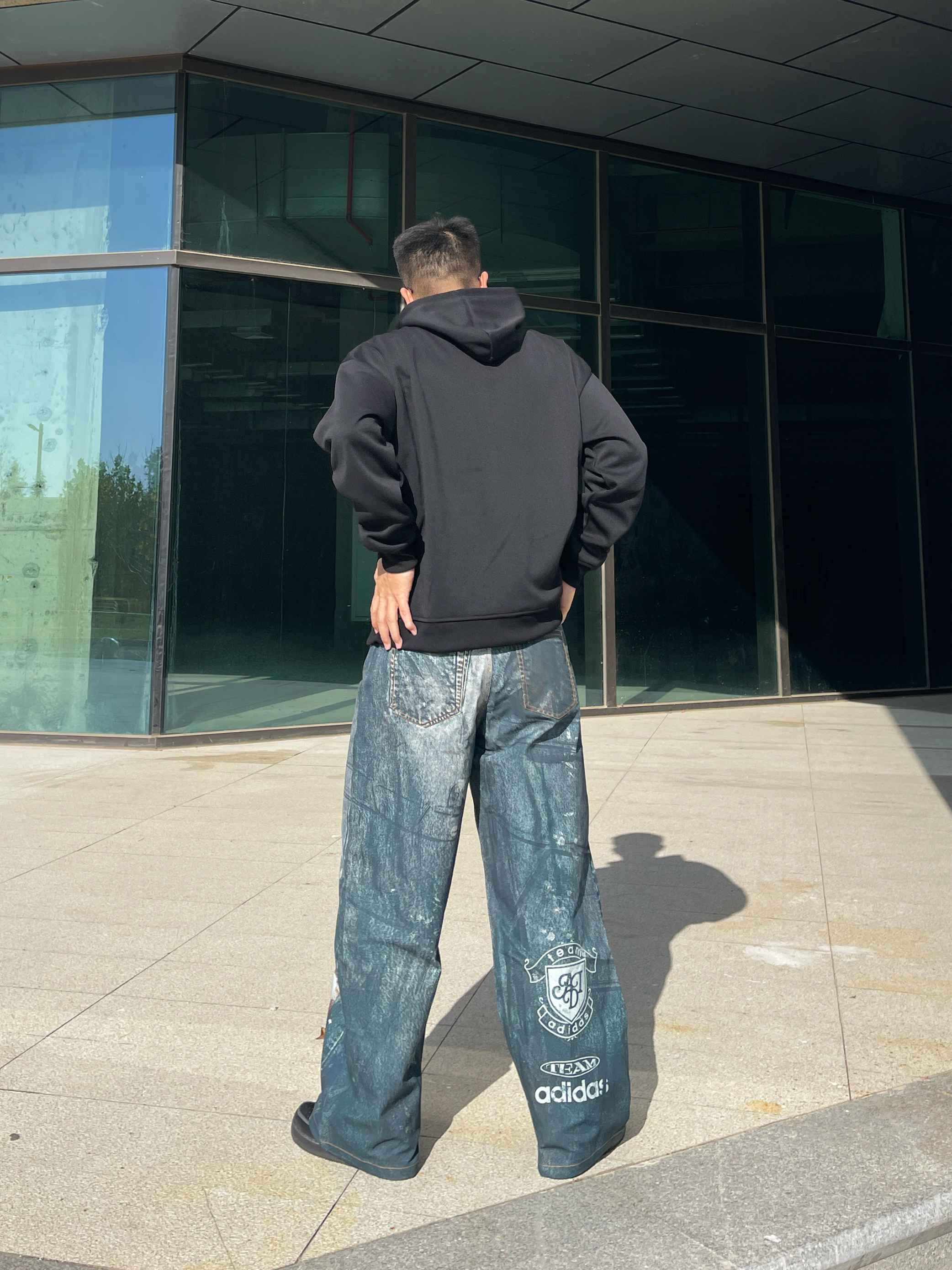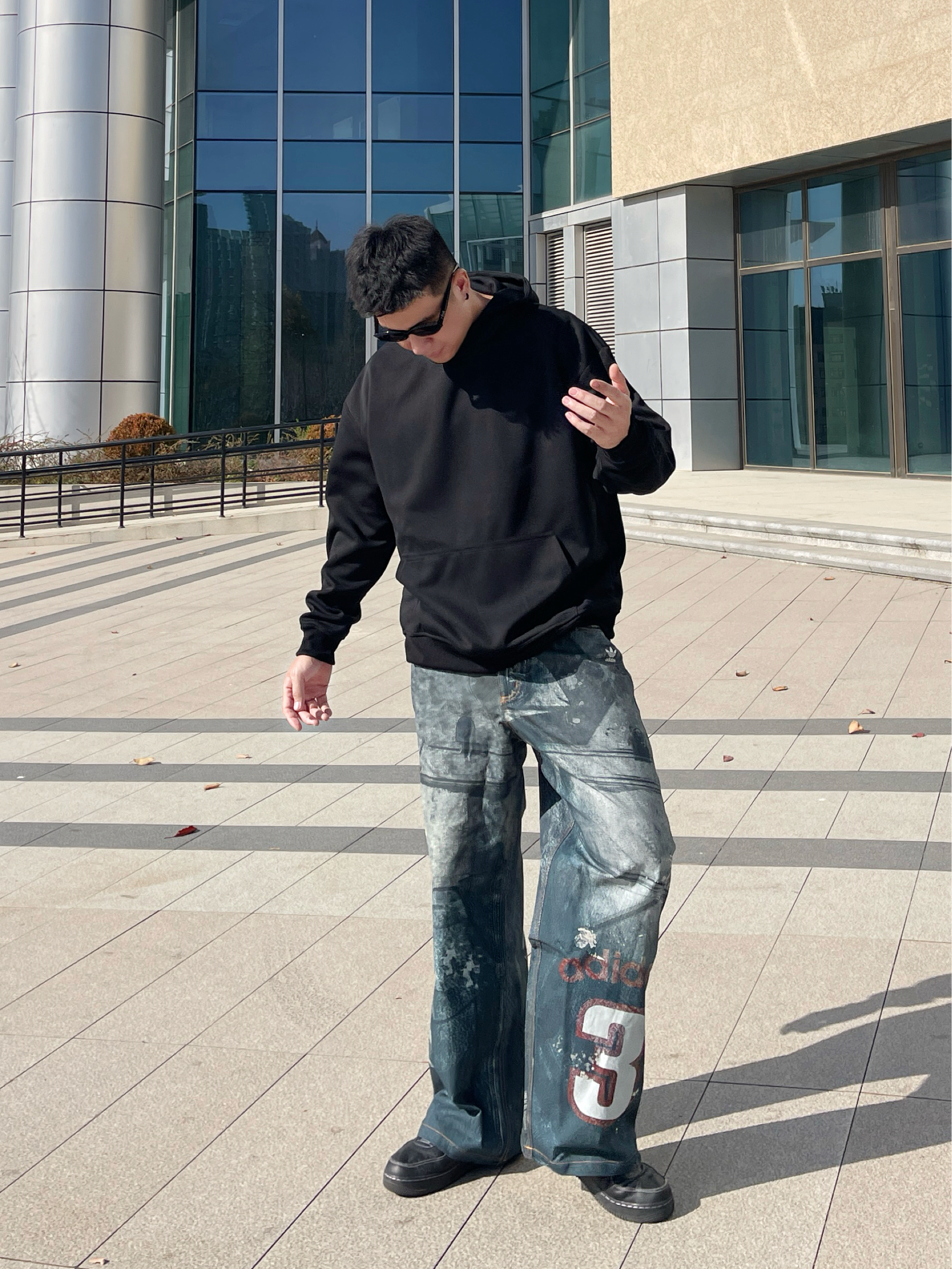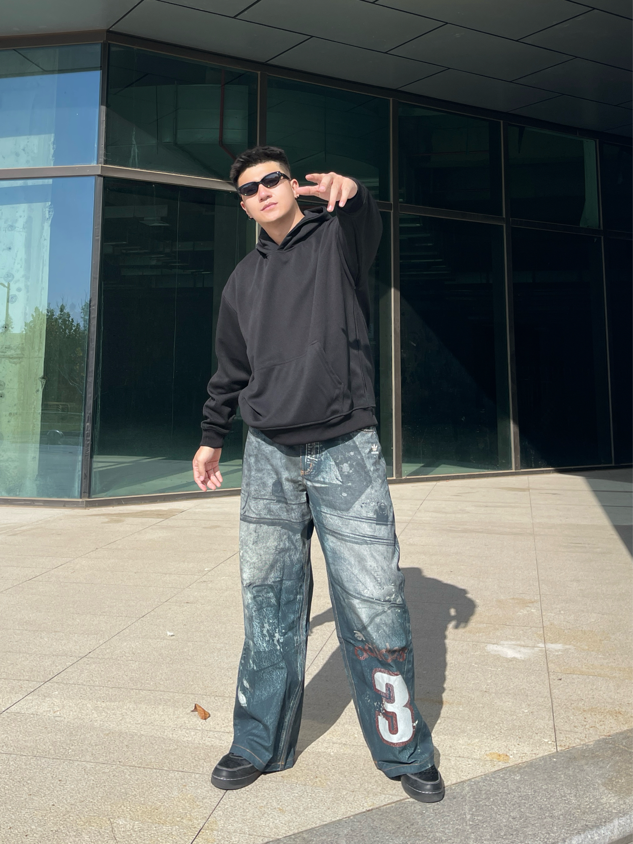 真的被这件黑的百搭卫衣拿捏了! 软糯加绒上很暖和,贴身穿也很舒服 黑色慵懒感拉满 搭配条涂鸦牛仔裤出门 搭双小黑鞋 整套直接痞酷范拉满✨ 个人感觉: 宽宽松松版型,很显瘦,日常通勤出门逛街穿都OK👌 懒人冬日氛围感 一件搞定 👦🏻:188 | 85 🧥:XXXL 👖:36