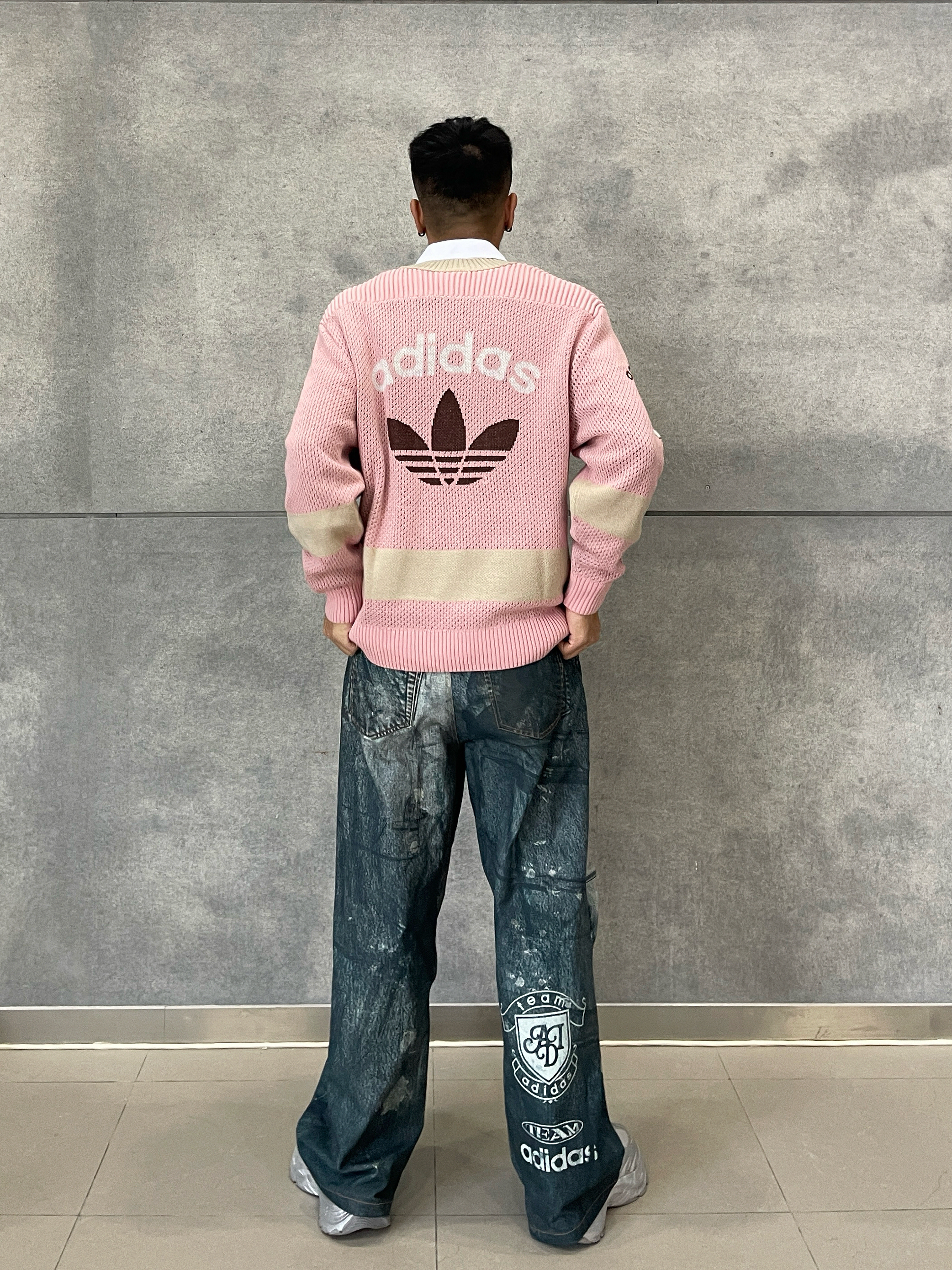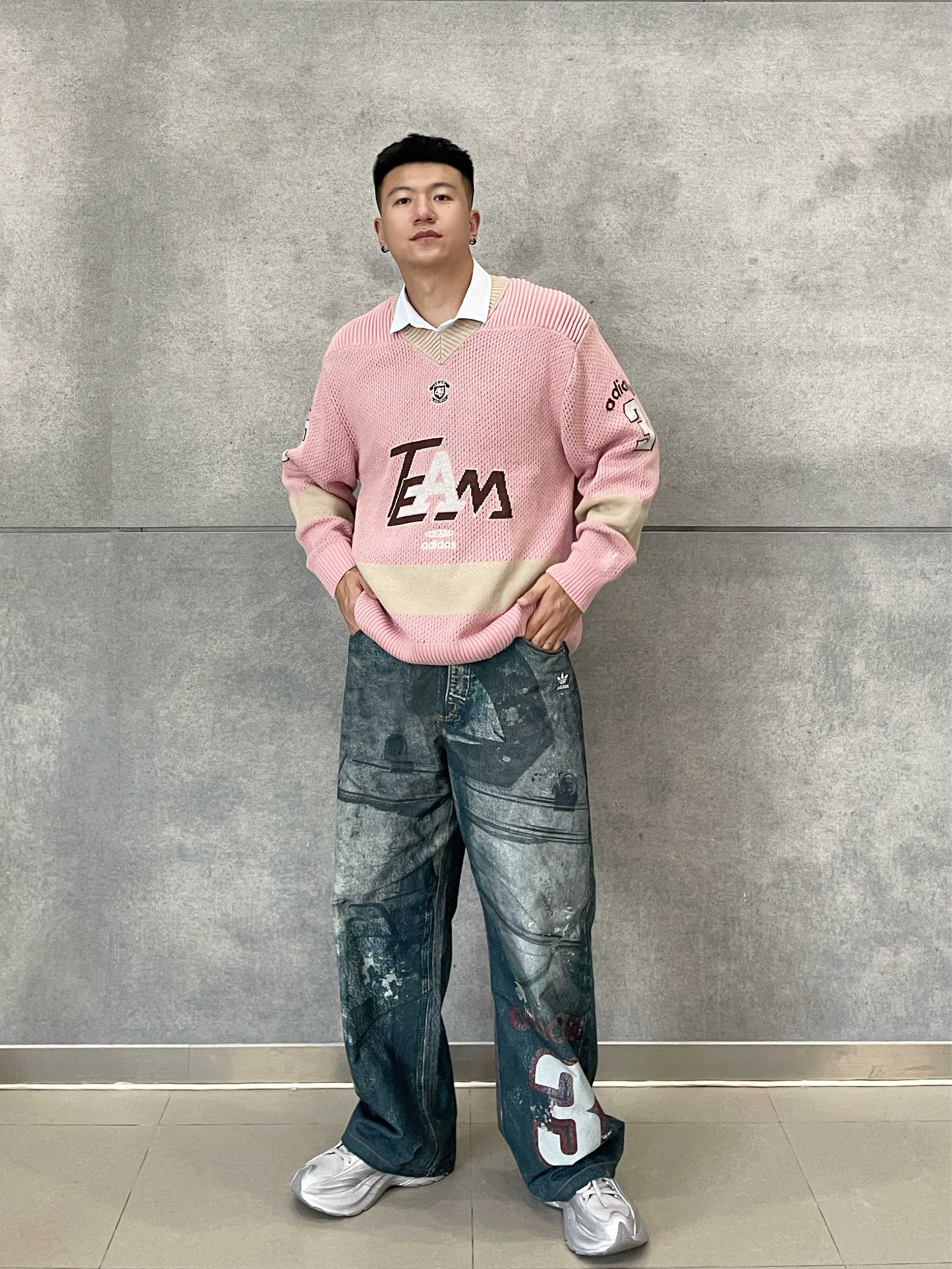 这个冬天别再穿得黑压压啦 我入手了这件三叶草粉色V领针织衫✨ 里面叠穿一件白色翻领T恤,露出翻领白边,增添层次感 下身搭配三叶草☘️涂鸦牛仔裤,宽松版型藏秋裤也无压力,街头感直接拉满。 再踩双银灰老爹鞋,一套直接搞定出门。 整体粉蓝配色超元气,冬天也能做潮流男孩👦🏻 单品清单:👦🏻:188 | 85 · 上身:adidas Originals 粉色V领针织衫 L · 下身:adidas ...
