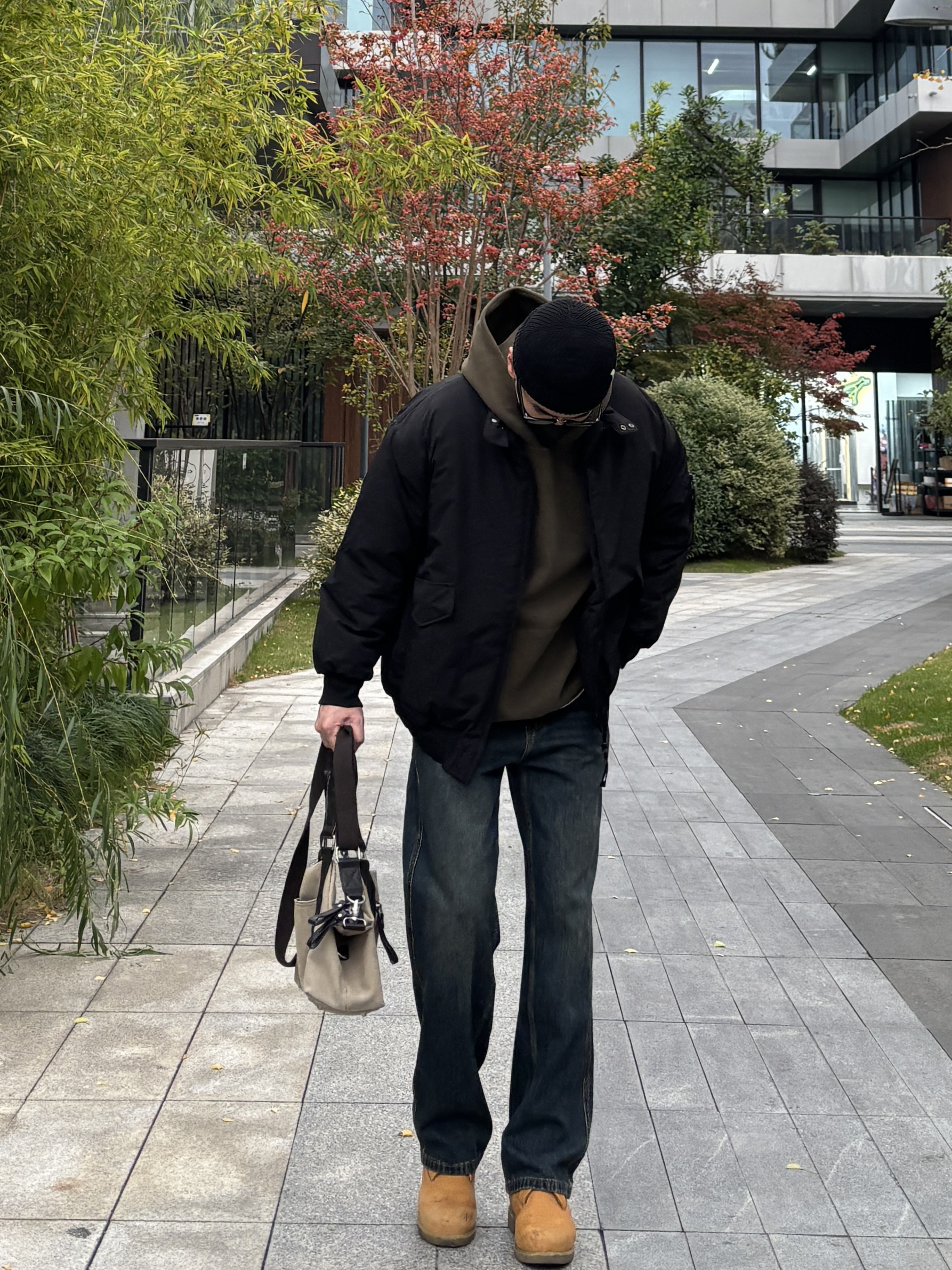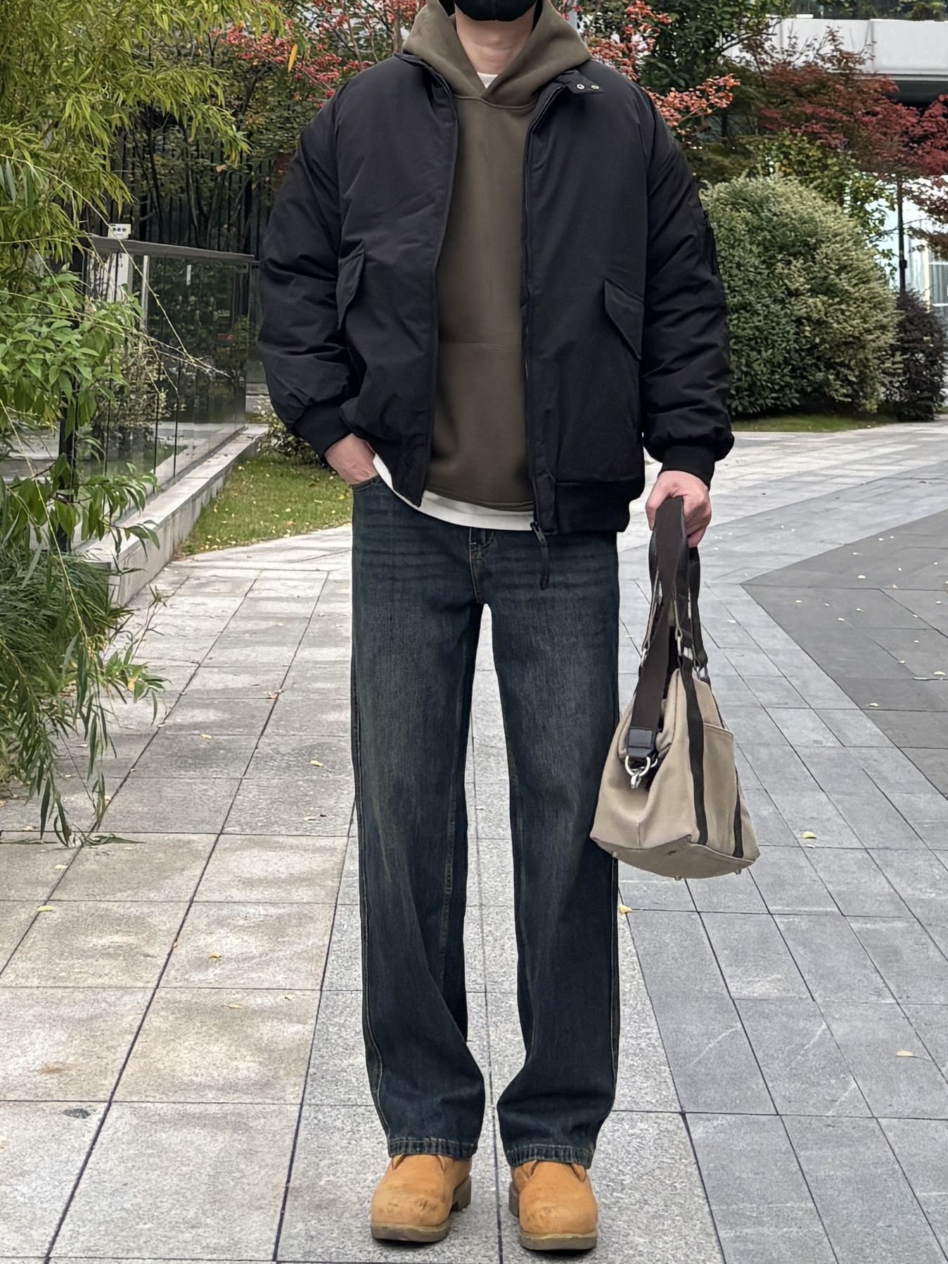 谁说保暖和时髦不能兼得?! 今天这套美式工装风叠穿公式快收好。 黑色立领多口袋棉服➕军绿连帽卫衣,短款廓形不压身高,简约利落又有型 蓝色水洗直筒牛仔裤➕中帮工装靴,经典复古配色不过时🙋♂️ 学会这招叠穿,行走的“硬朗感帅哥”就是你! - 衣服裤子:NICE LILI 鞋子:timberland