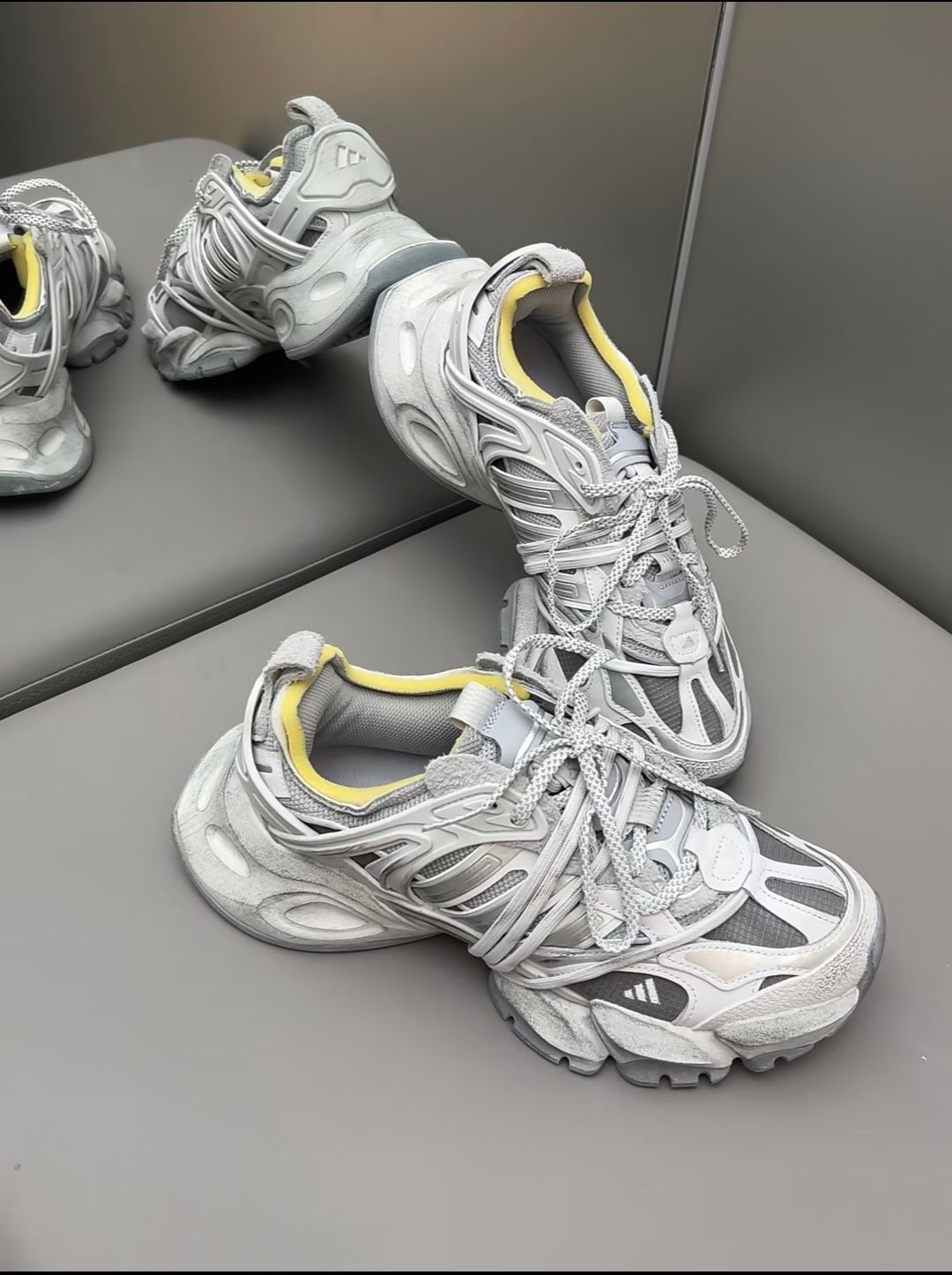 这双鞋未来感纹理超有层次,配色高级百搭,鞋口亮黄点缀很亮眼,上脚秒变吸睛焦点 ✨