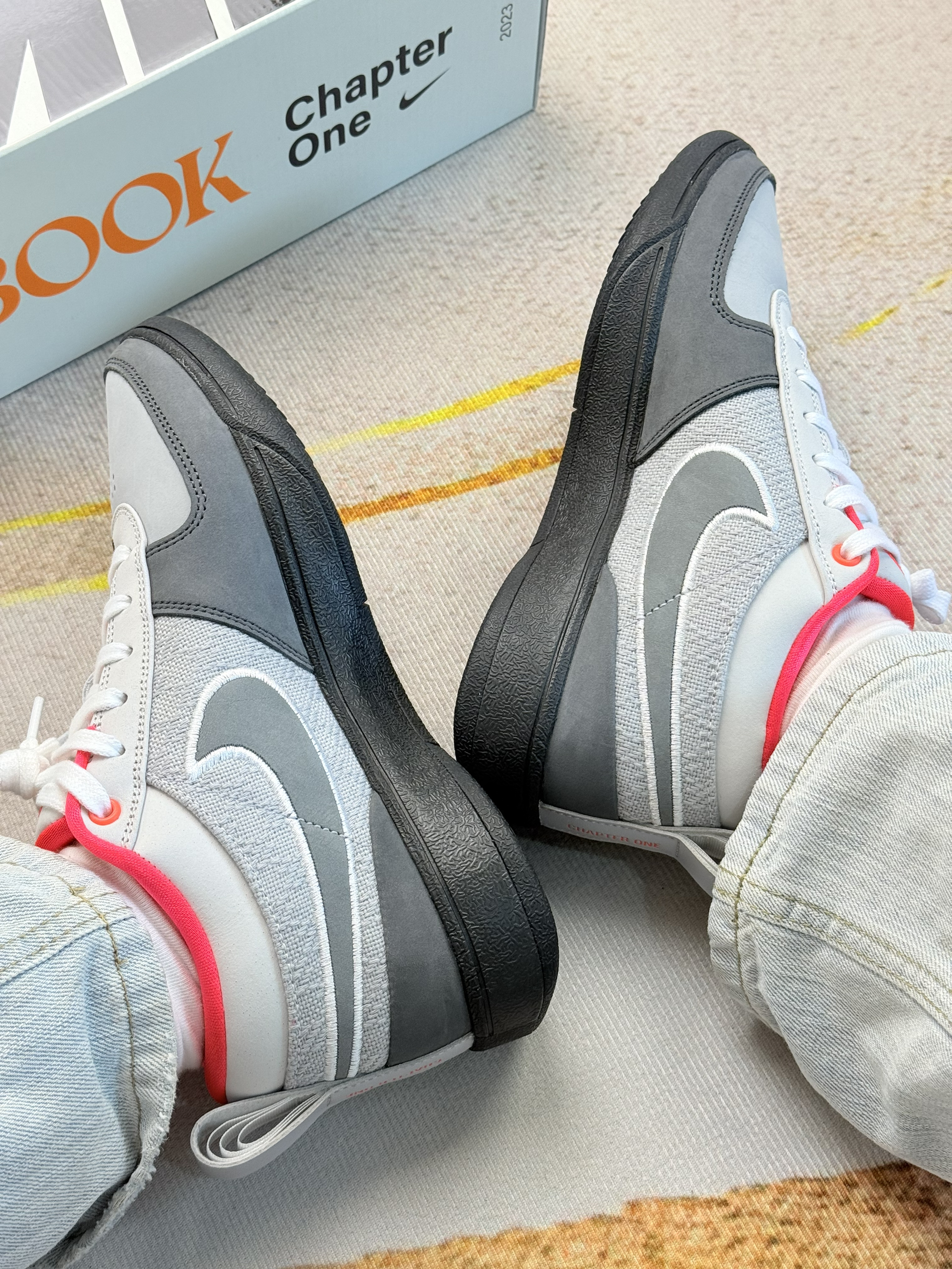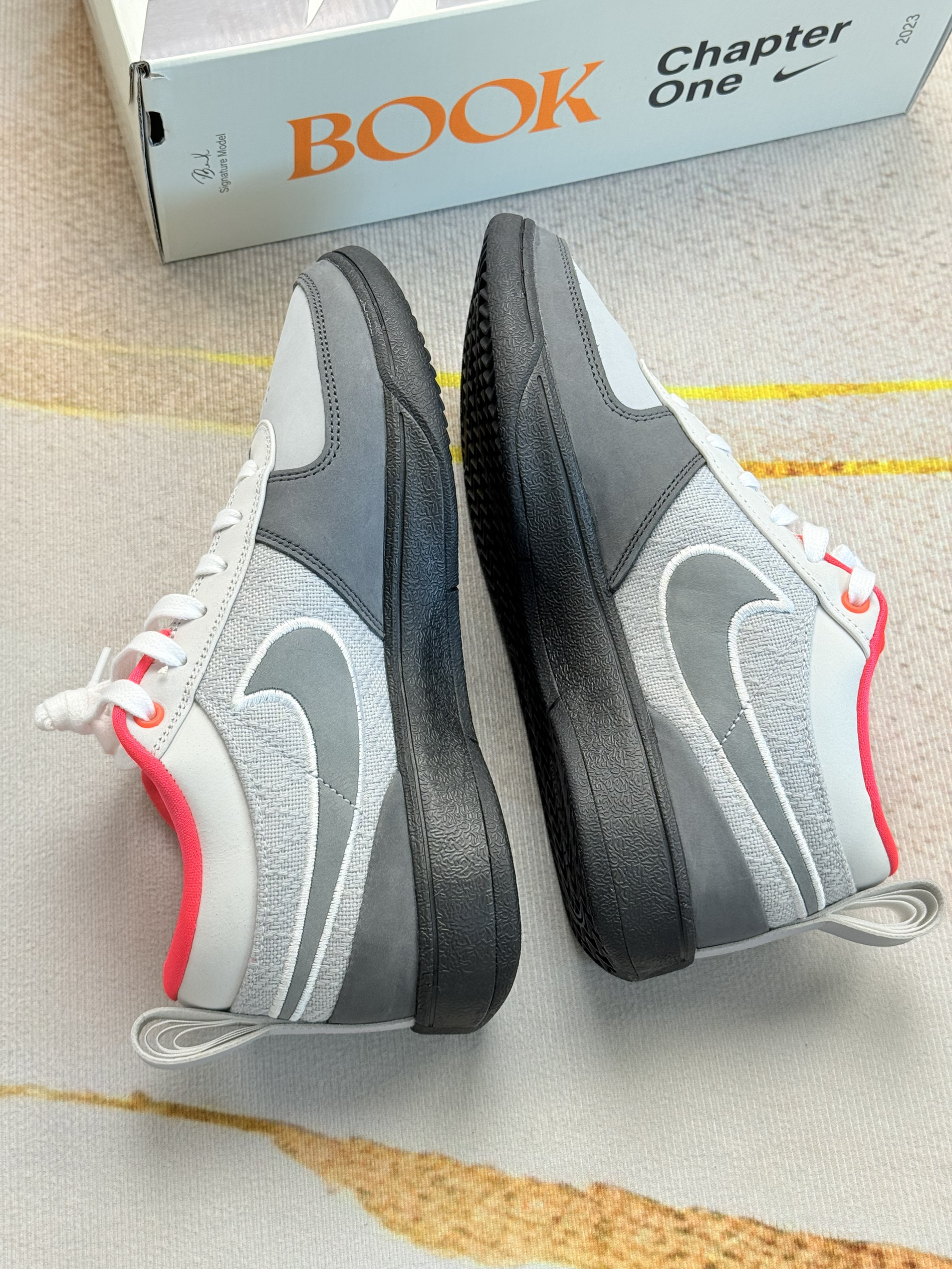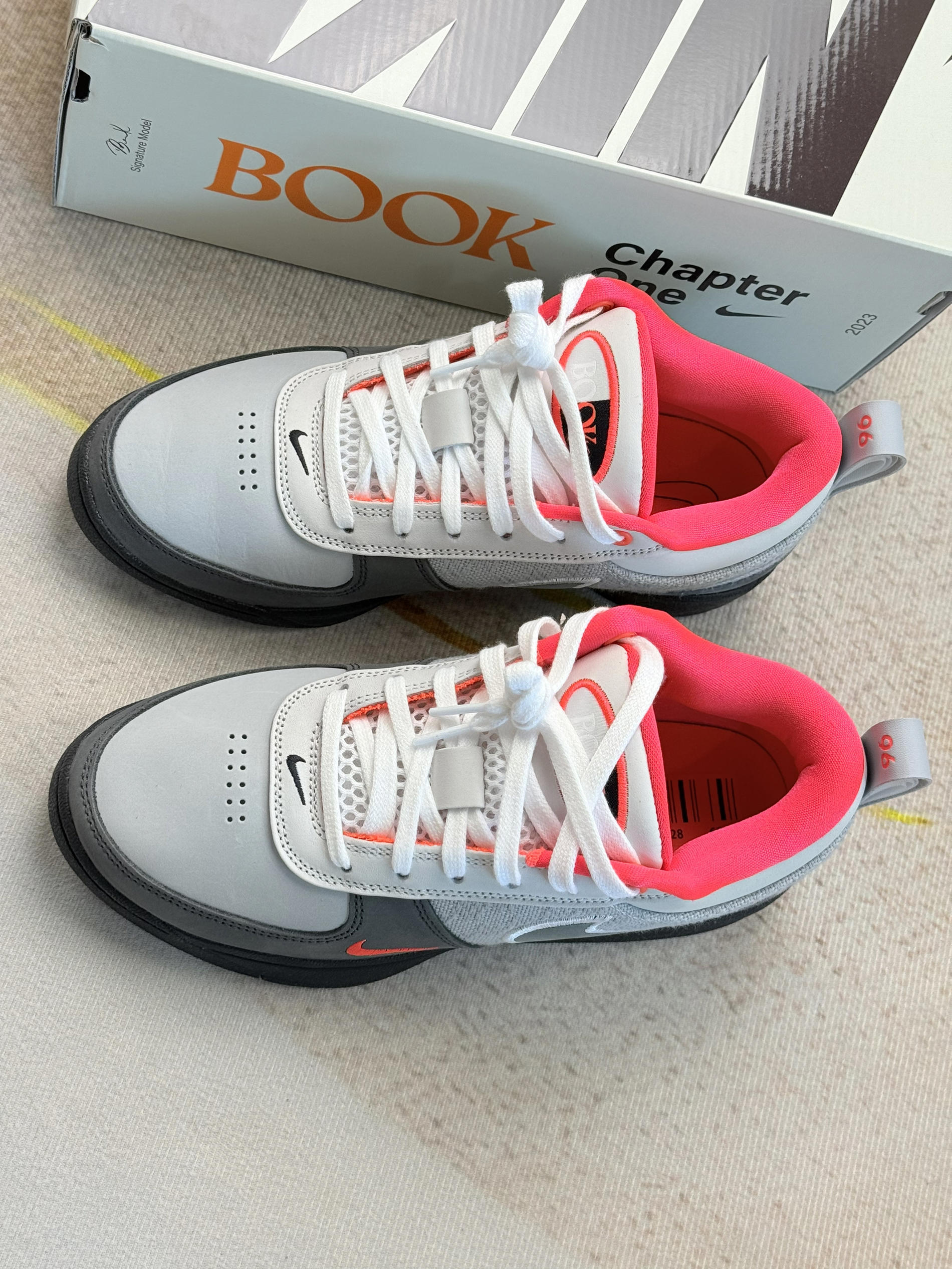 Nike Book 1 EP "Solar Red",是耐克为NBA球星德文·布克(Devin Booker)推出的首款签名实战篮球鞋。 1.核心身份与设计背景: 布克的第一代签名鞋,命名呼应其绰号“Book”及个人系列“Chapter One”,定位为兼具实战性能与日常穿搭的篮球鞋。  2.配色灵感: “Solar Red”配色融合Air Max 95经典设计语言,以灰、白为主色调,鞋...