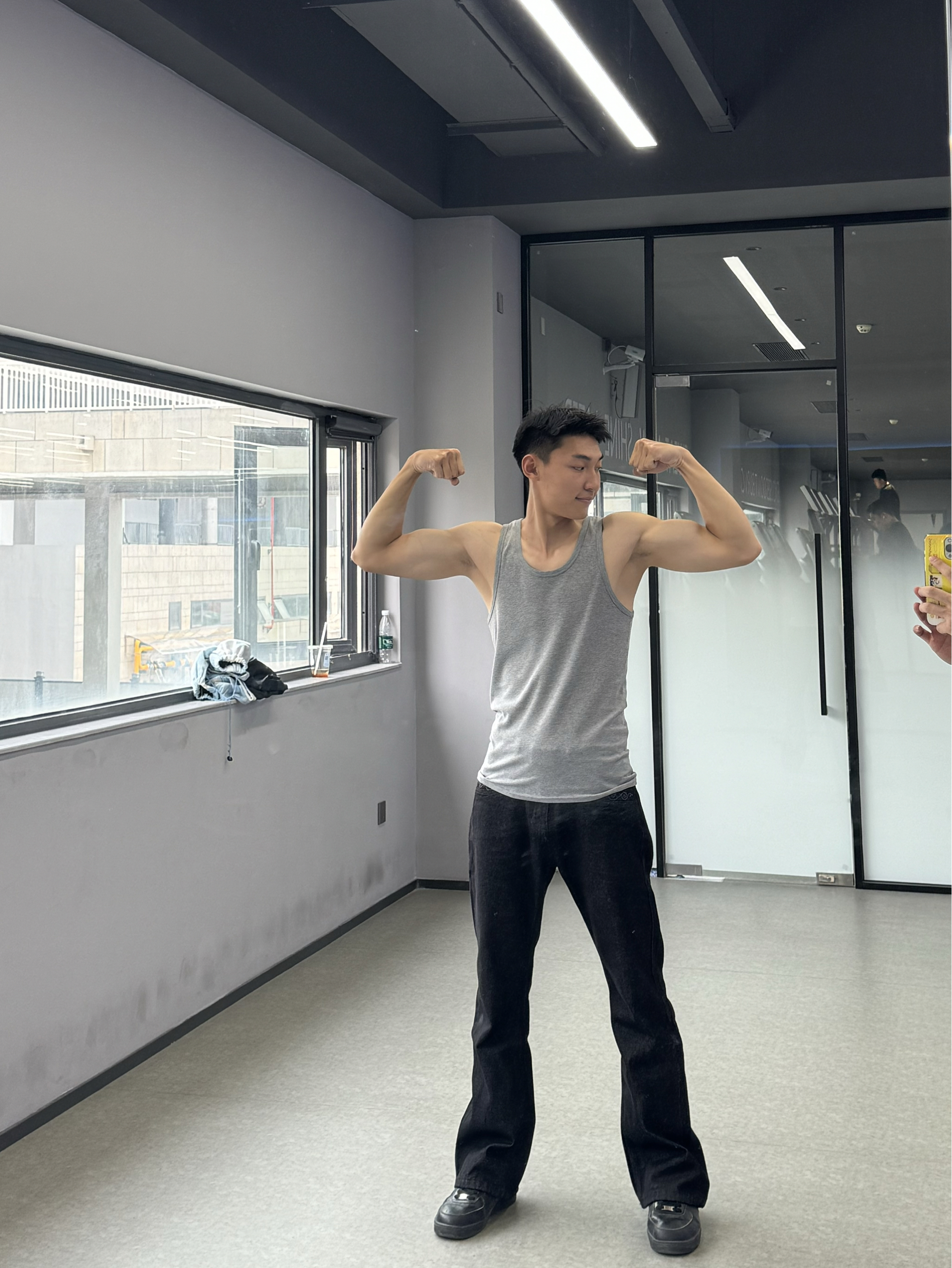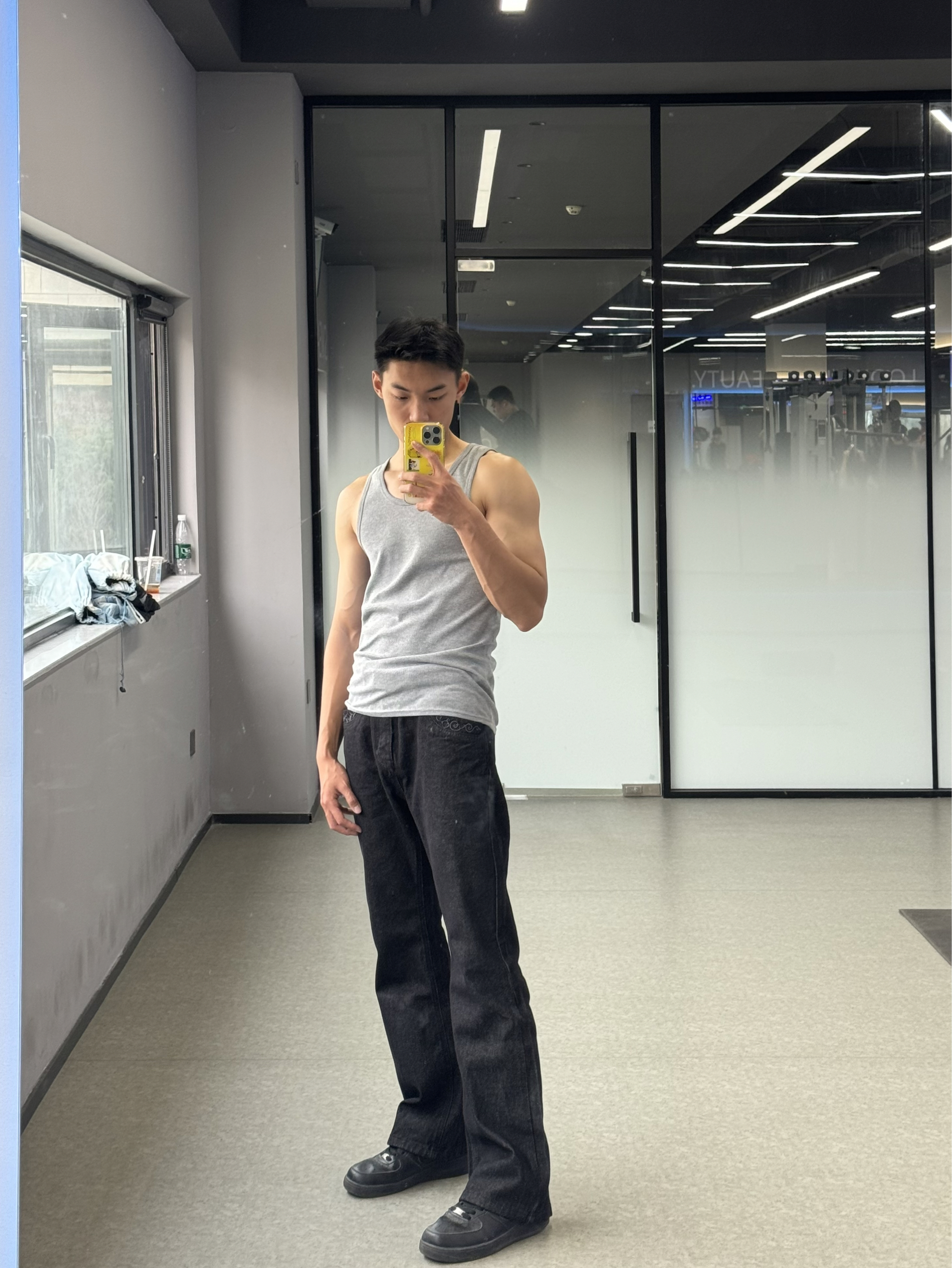 今日份ootd! 博主身高183cm,体重65kg! 我上身穿的是一款百搭灰色经典的健身背心,布料舒适透气,非常显身材! 下身裤子上身不臃肿,修身显瘦牛仔布料,巨显腿长!好好穿! 上身我是L码,下身裤子我是xl码! 如果你也穿腻了你自己的风格,那就来试试我是怎么搭配的吧!
