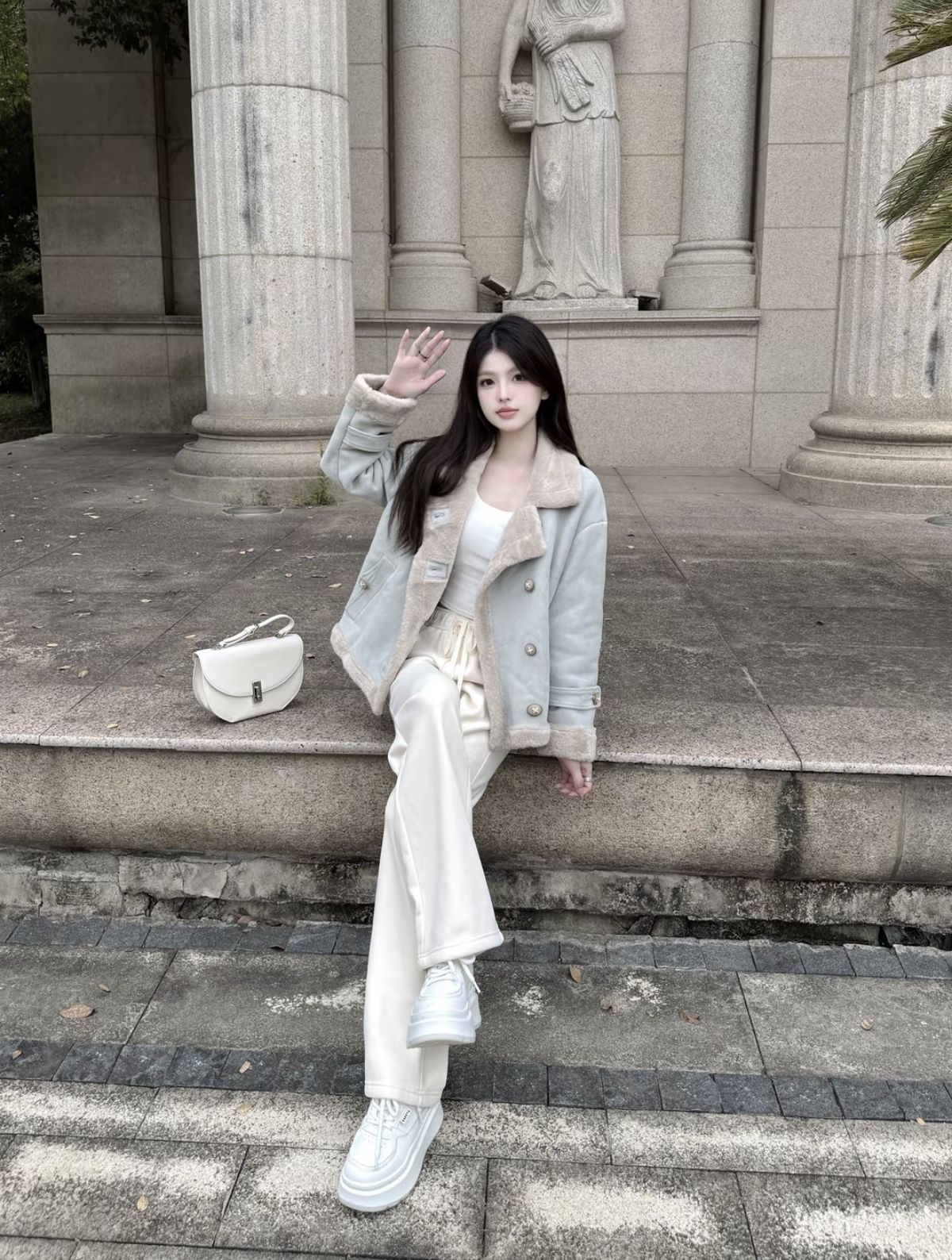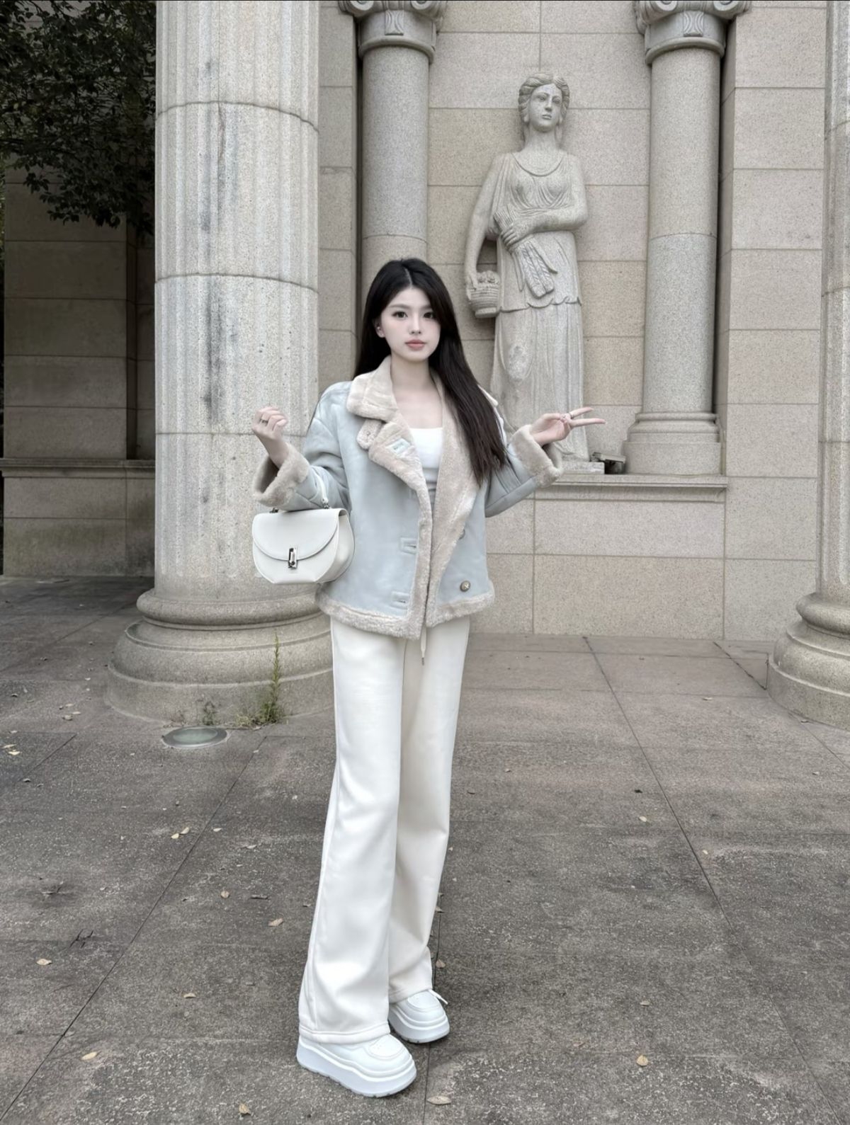 秋冬这样穿好显干净!! 一套穿的都是 #XIANGYING香影 皮毛一体外套软糯亲肤 冬日氛围感满满🧊 配上加绒阔腿裤 垂感十足 白色系很温柔~ 舒适又显腿长 日常出街约会、通勤都能穿哦