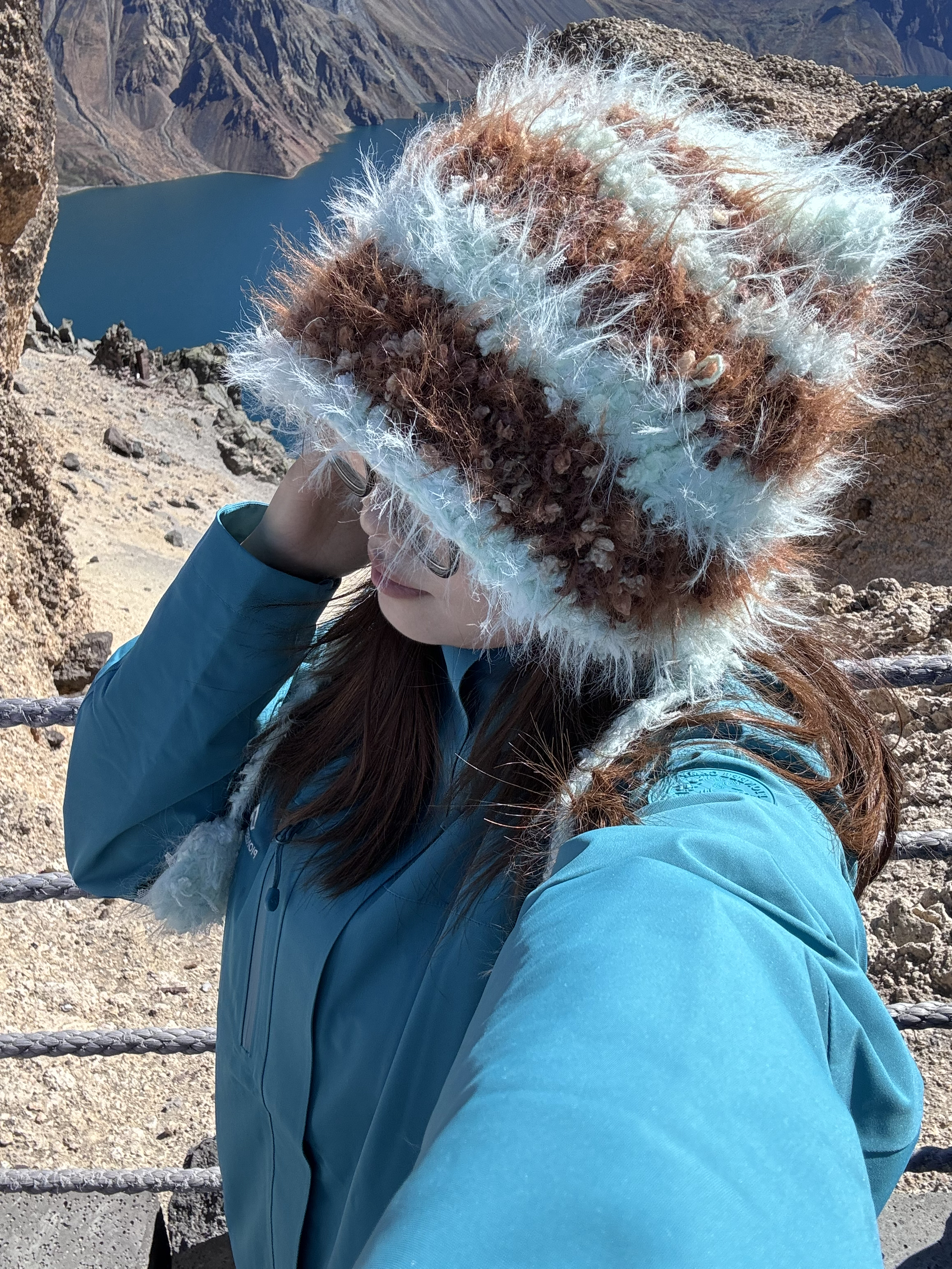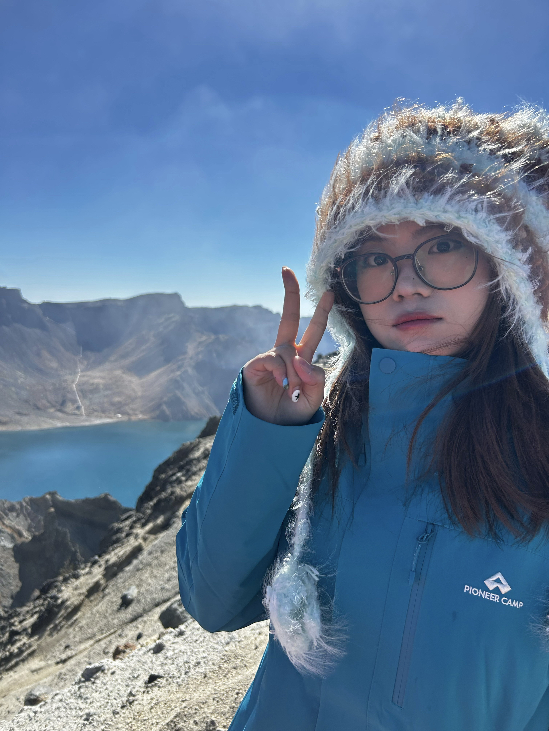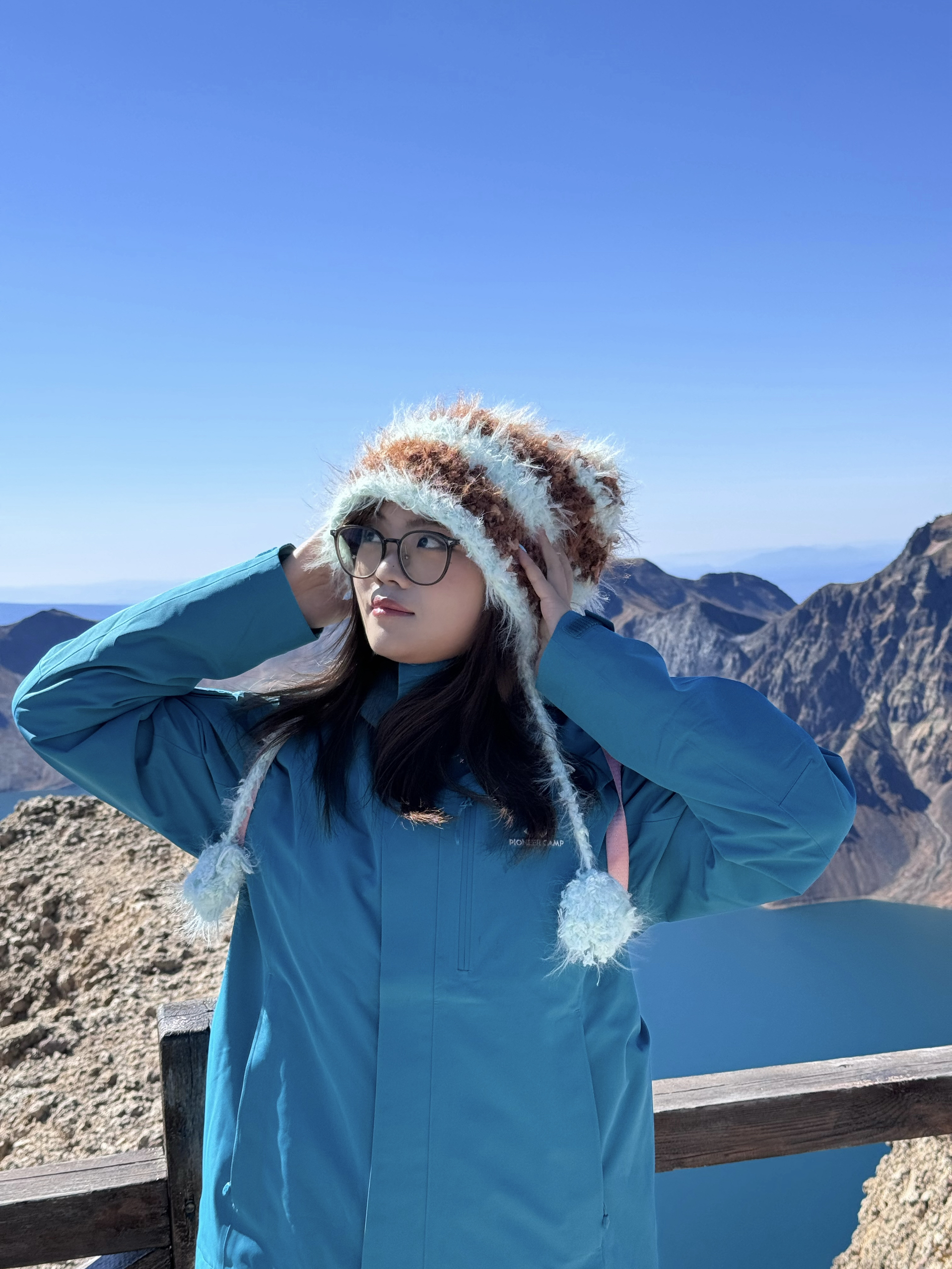 开拓者青鸟系列的这个冲锋衣和天池的颜色真的很亮眼很好看🤩👍 -这次是穿冲锋衣去天池, 山上有风特别冷,但是穿这个冲锋衣一点也不冷,很防风,不仅好看功能也很不错!日常穿也好看! -内胆也可以单穿,简直就是一衣两穿!!直接闭眼冲!!平时日常穿,下小雨没带伞,帽子很大可以完全遮住头,淋到的雨水一抖都全掉了,防水也不错!