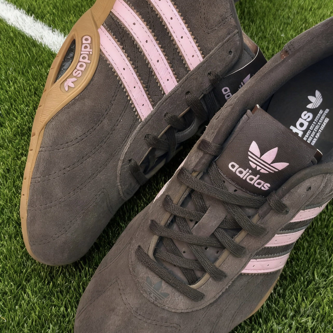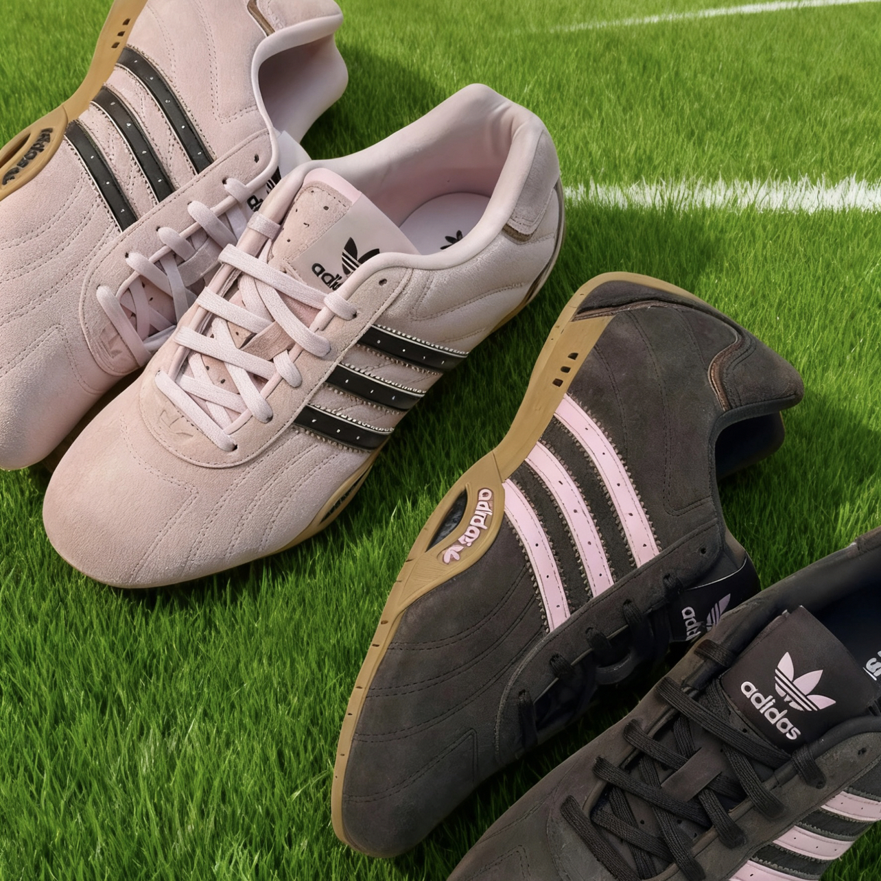• 鞋身线条:流畅的鞋型复刻了赛车“前翼导流板”的流线感,鞋头窄长显脚瘦; • 标志性细节:侧边三条杠采用了赛车轮胎热熔纹的锯齿纹理(你的这双粉色/黑色款,三条杠分别用了撞色设计),鞋头和后跟的橡胶包边也呼应了赛车部件的复古质感; • 材质:鞋面是短绒麂皮,触感柔软且自带复古氛围,搭配透气网布内衬,兼顾质感与舒适度。 这双鞋是近年复古薄底鞋里的“颜值+质感担当”,既有赛车文化的复古情怀,又靠...