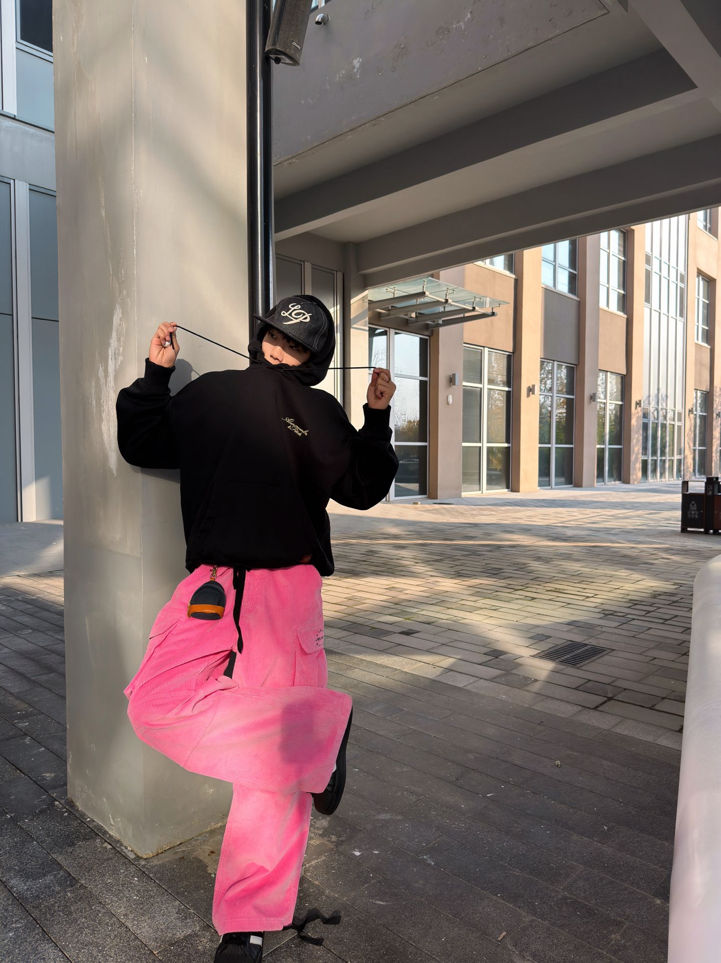 男生真的很适合穿粉色 穿搭亮点一下搞定~ 分享今日份街头OOTD: ⬆️美式卫衣 字母刺绣设计我超喜欢💕 ⬇️搭配pink灯芯绒阔腿裤 oversize版型 上身自带街头氛围感 随便搭就完事😎 ⭐️再来一顶美式刺绣平舌帽 加些配饰点缀 这样一身美式街头风穿搭 你觉得怎么样? ❤️❤️178/110 ❤️❤️尺码:L