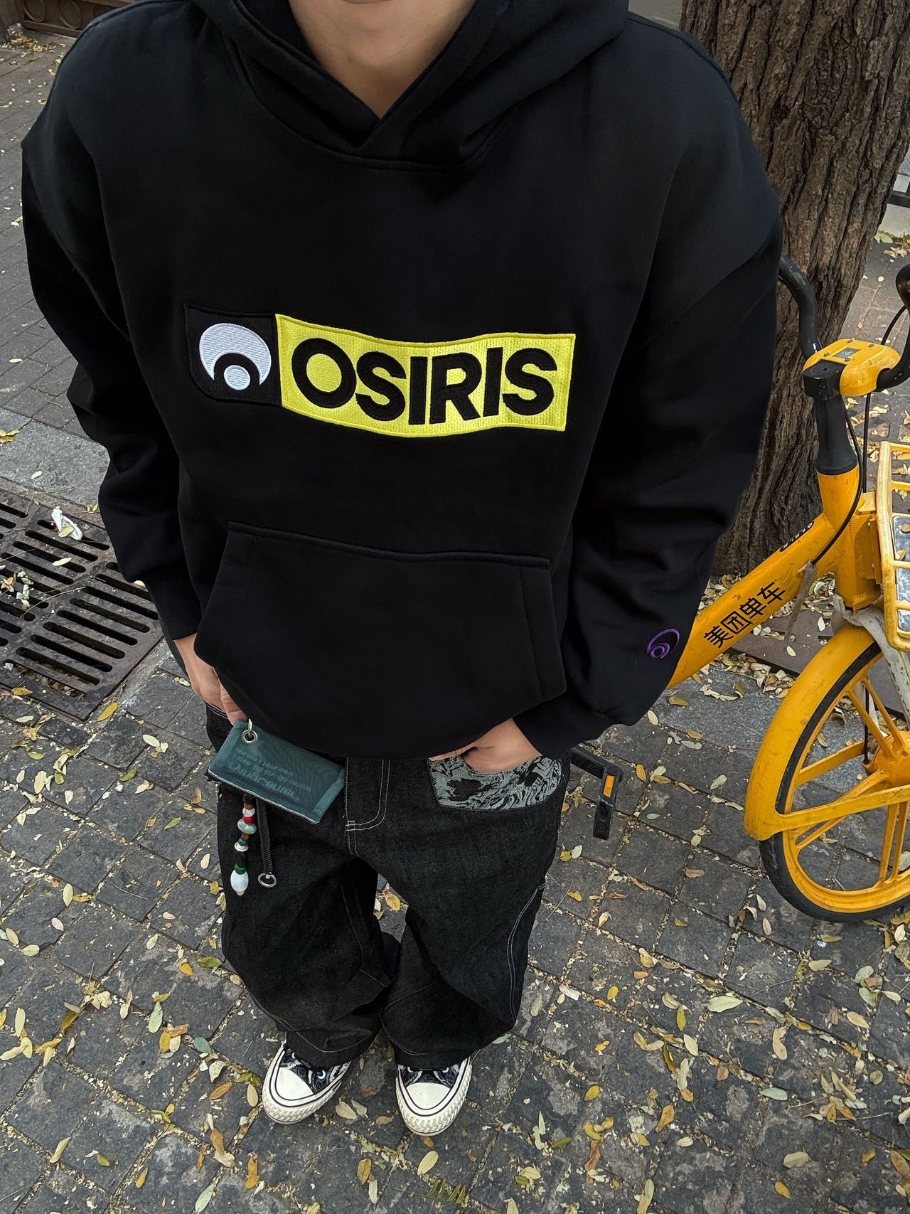 秋季穿搭少不了街头感卫衣 那么卫衣如何选呢?💡黑黄拼色就很不错! 今天穿 OSIRIS 美式万针刺绣卫衣 胸前撞色刺绣很吸睛👀 摸起来很有质感 版型偏宽松 重磅面料上身直接变成双开门💪 天气凉了还可以搭配马甲和外套 👾 一衣多穿 很实用哦! ❤️❤️身高178 110 ❤️❤️上身尺码:S