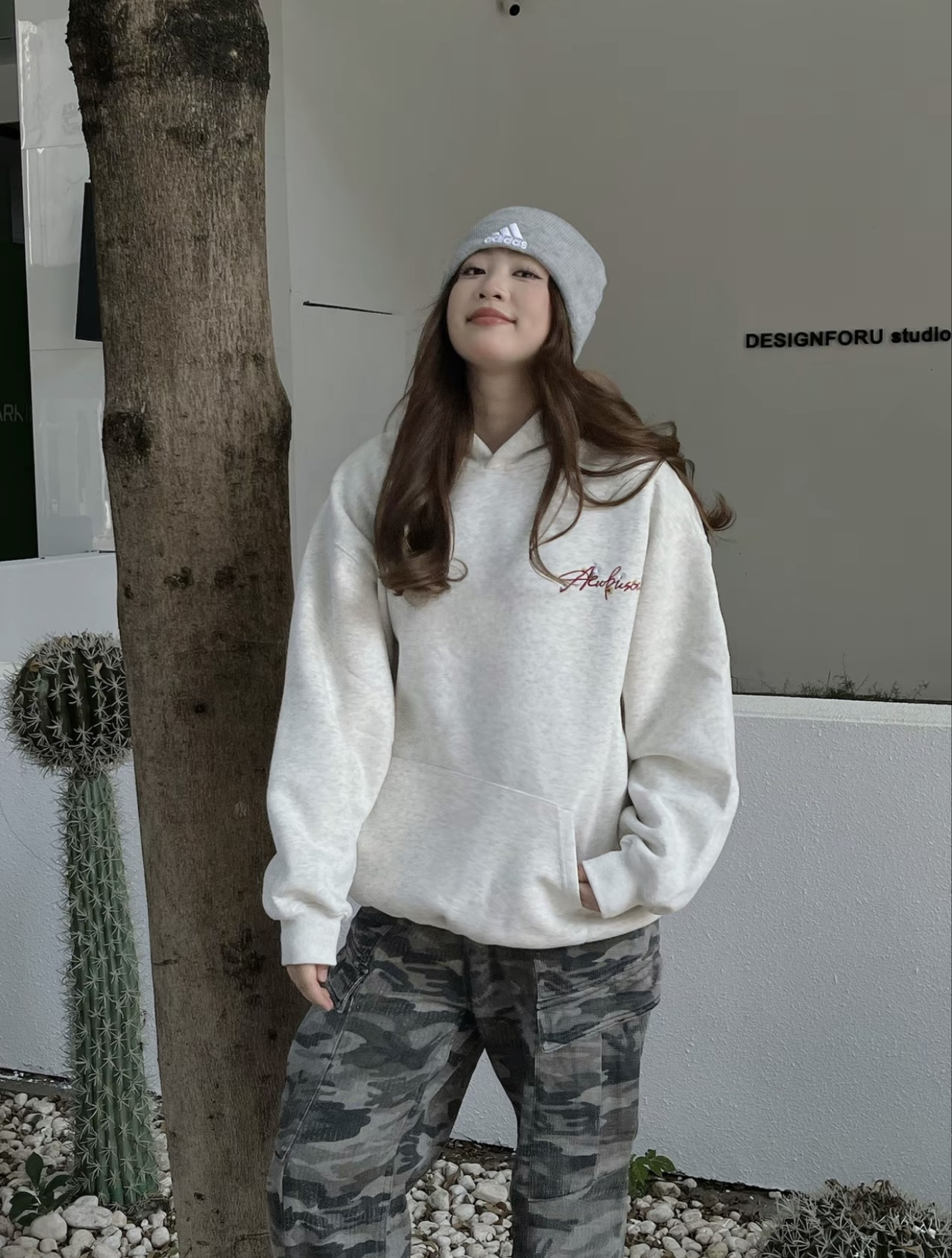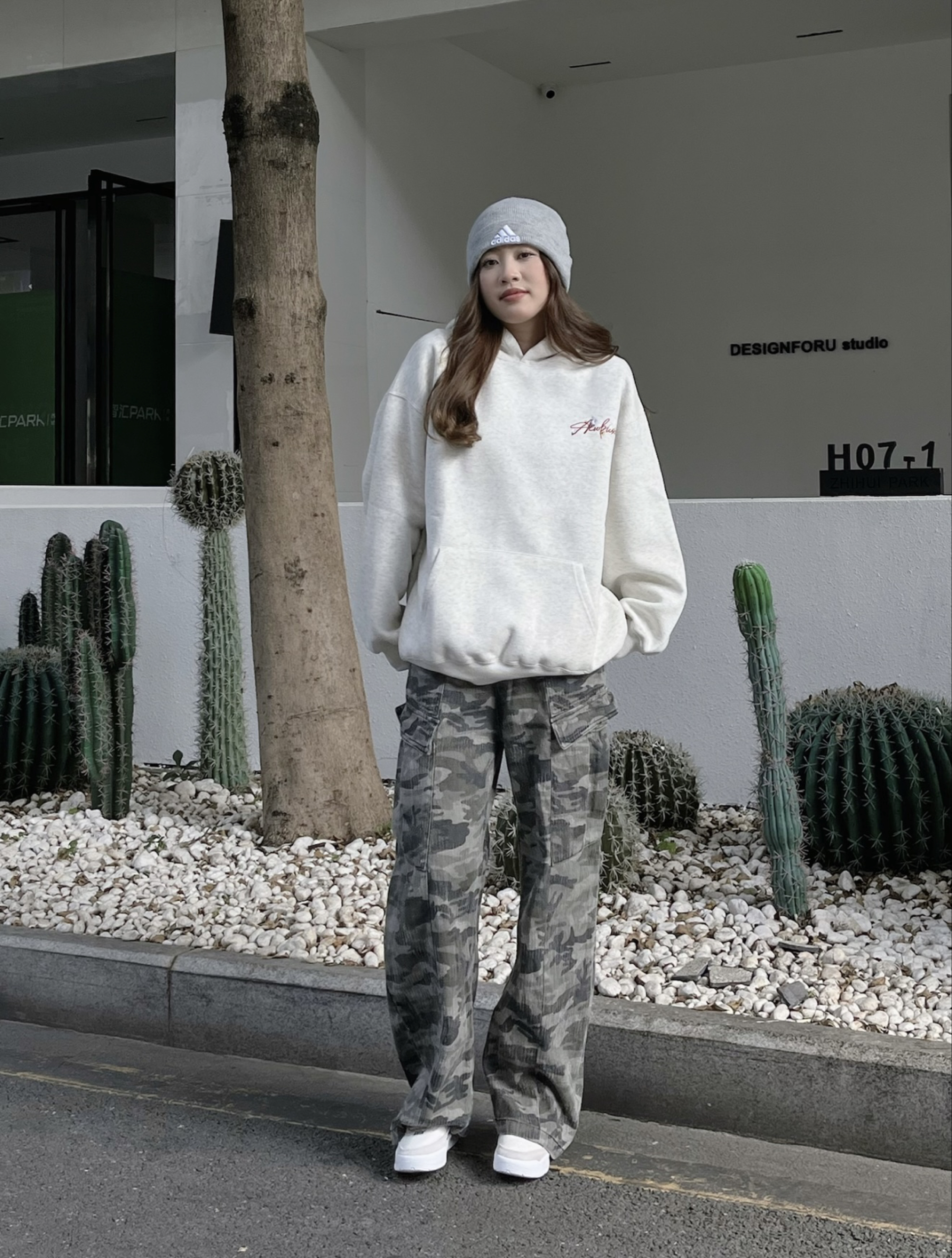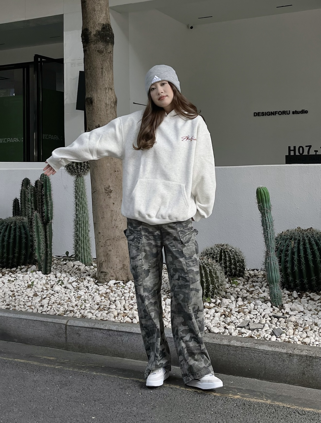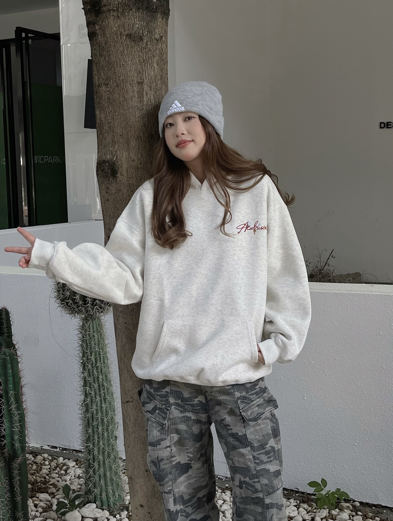 今日份的穿搭还是挺有少年感的 一件灰色的字母卫衣,宽松又舒服 Oversize版型穿着不挑人哦 而且他的质感也很不错挺适合秋季的 搭配了一条迷彩的牛仔裤,就蛮帅的 美式风格#@识货穿搭君 再穿一双nike版型,很有街头感哦