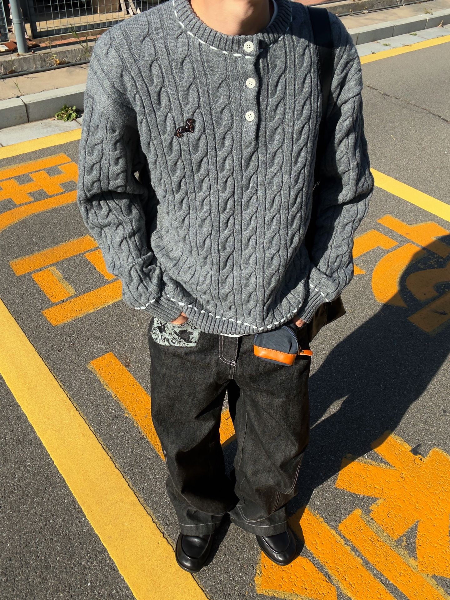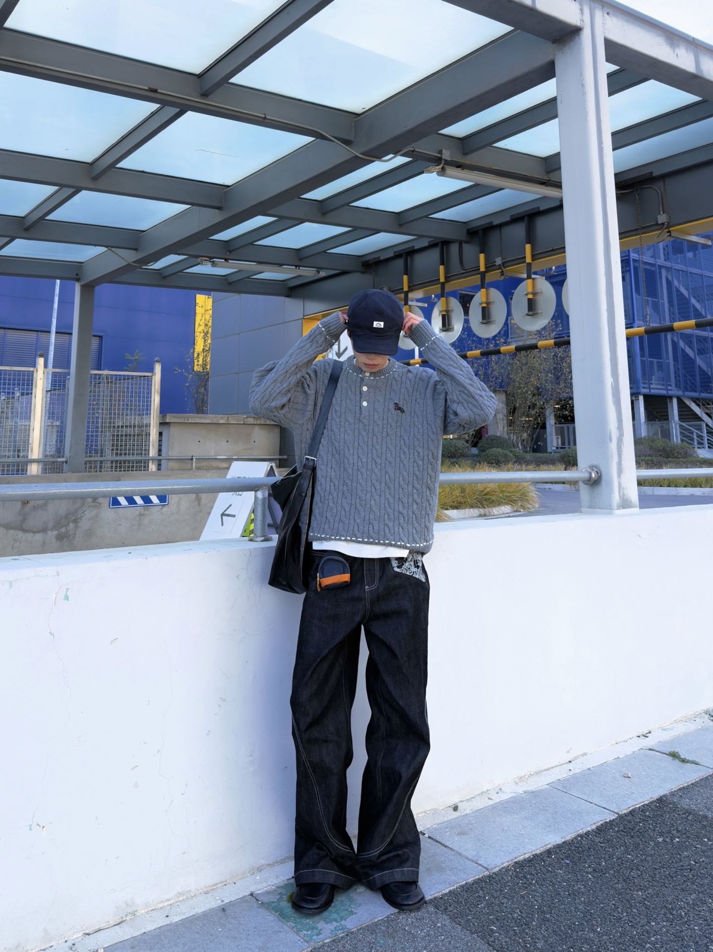 今天出门怎么穿 简约舒适才是王道!👍 分享我的今日ootd: ⬆️深灰色麻花毛衣 基础不简约 跟秋冬氛围很搭! 三颗扣子和刺绣点亮整身穿搭 ⬇️蛇迹原牛➕皮鞋 百搭不出错! 🧢THE HOBOO 软顶鸭舌帽 可随意改变帽型 藏青色高级百搭 很显白! ❤️❤️身高178 110 ❤️❤️上身尺码:M