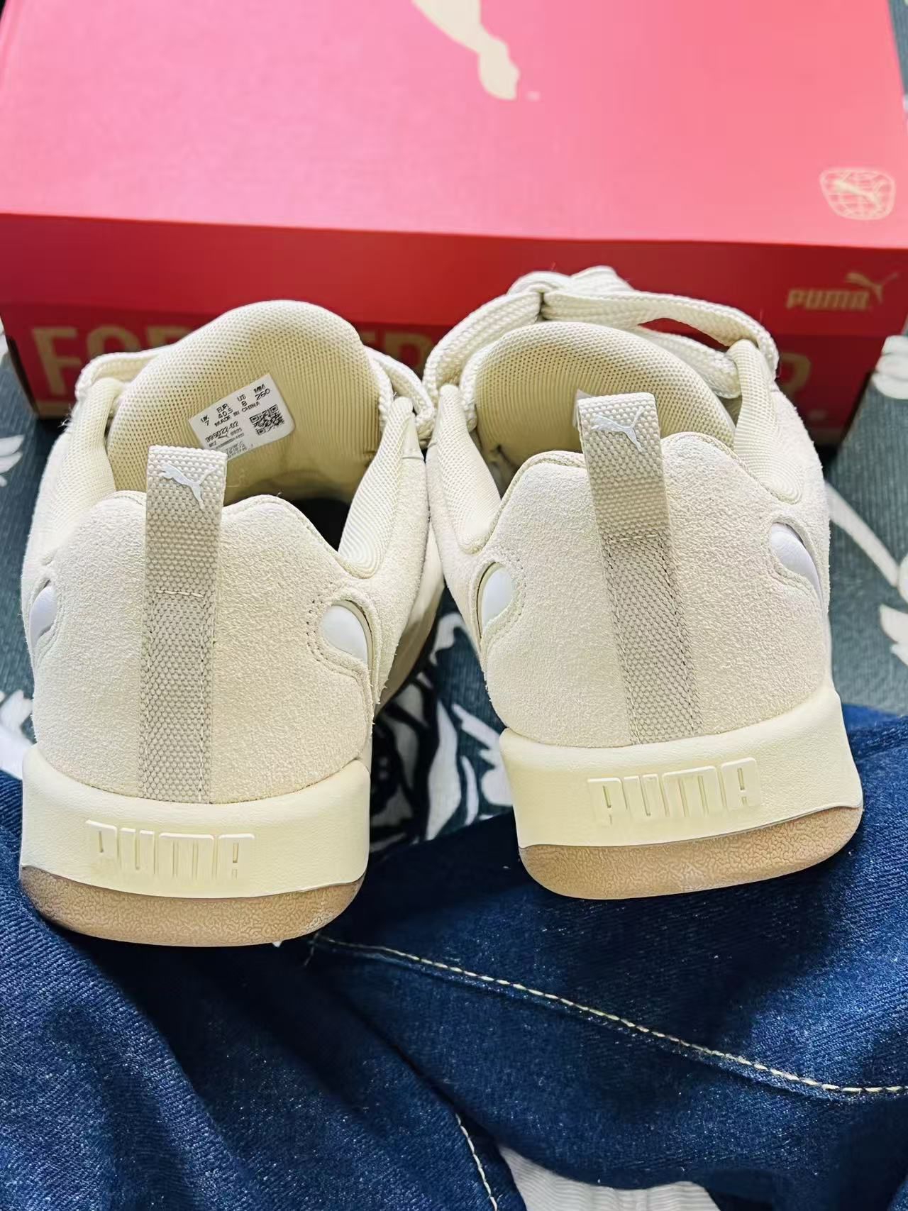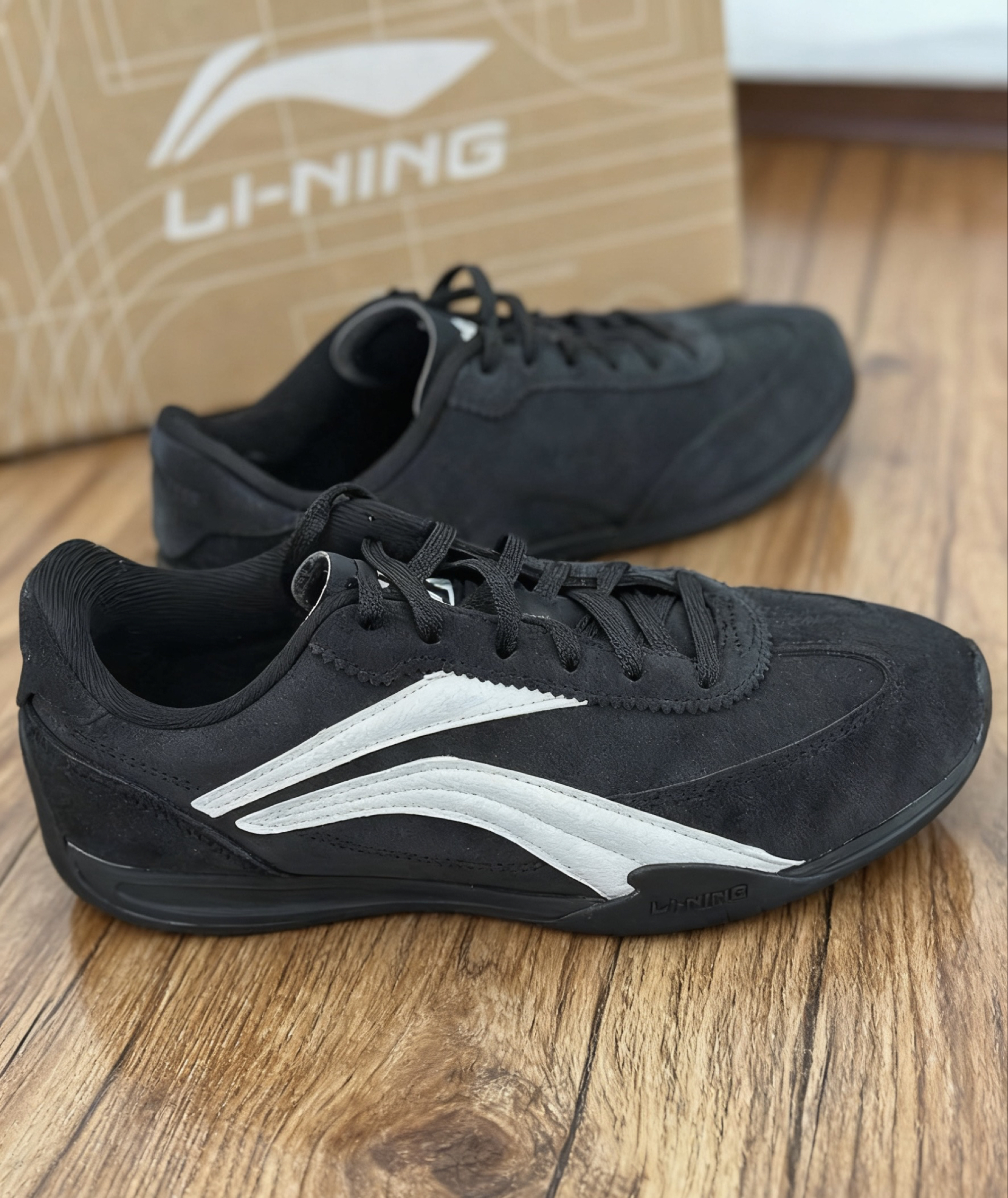 灰调鞋型越看越耐看,麂皮质感很好,摸上去软fufu的超有手感。上脚包裹感很nice,穿上去日常打球运动完全不闷脚,鞋底软硬适中踩起来很轻盈。自由搭配度很高,随便搭裤子都不违和,穿了几天零磨脚,舒服到不想换鞋