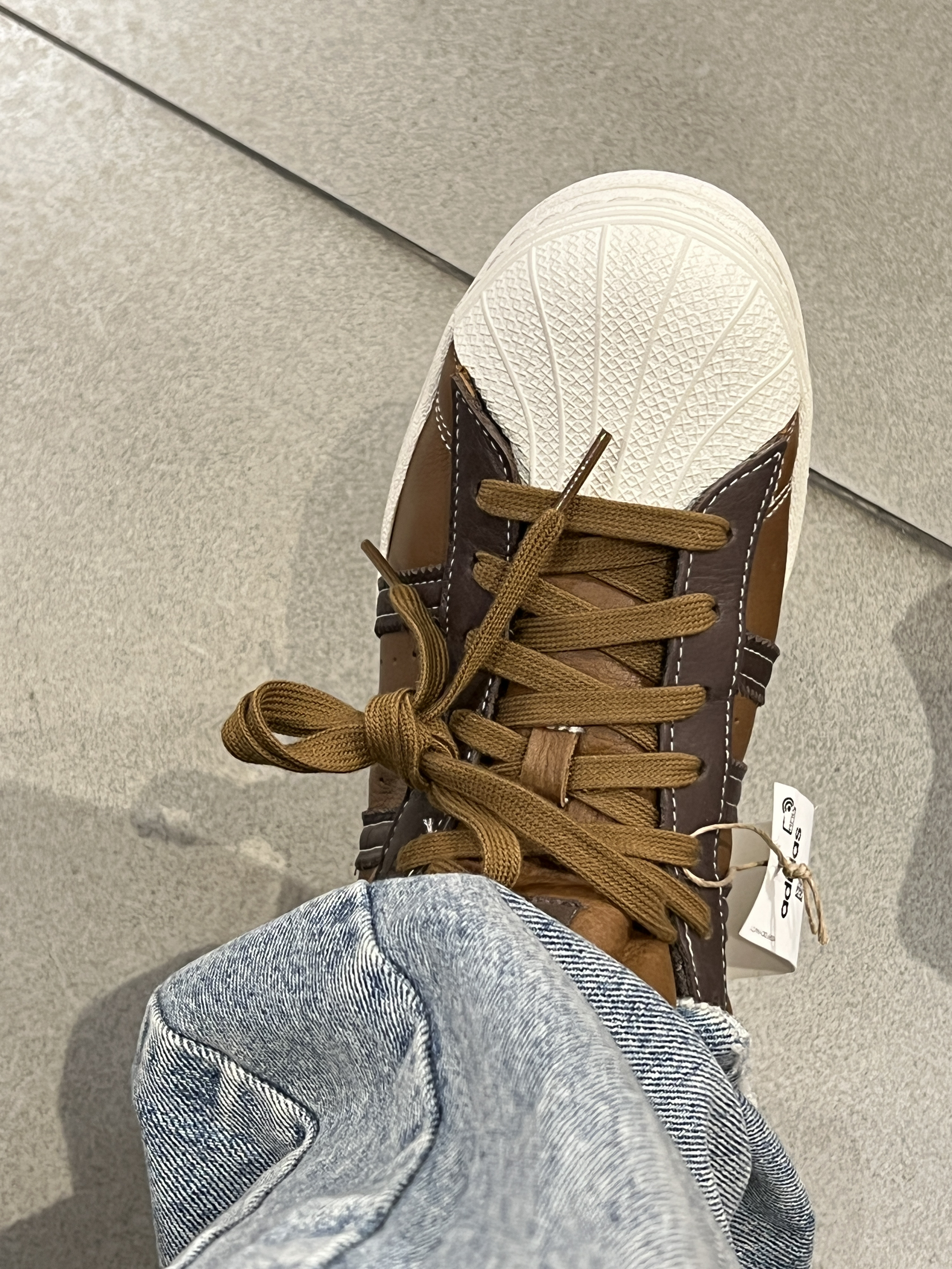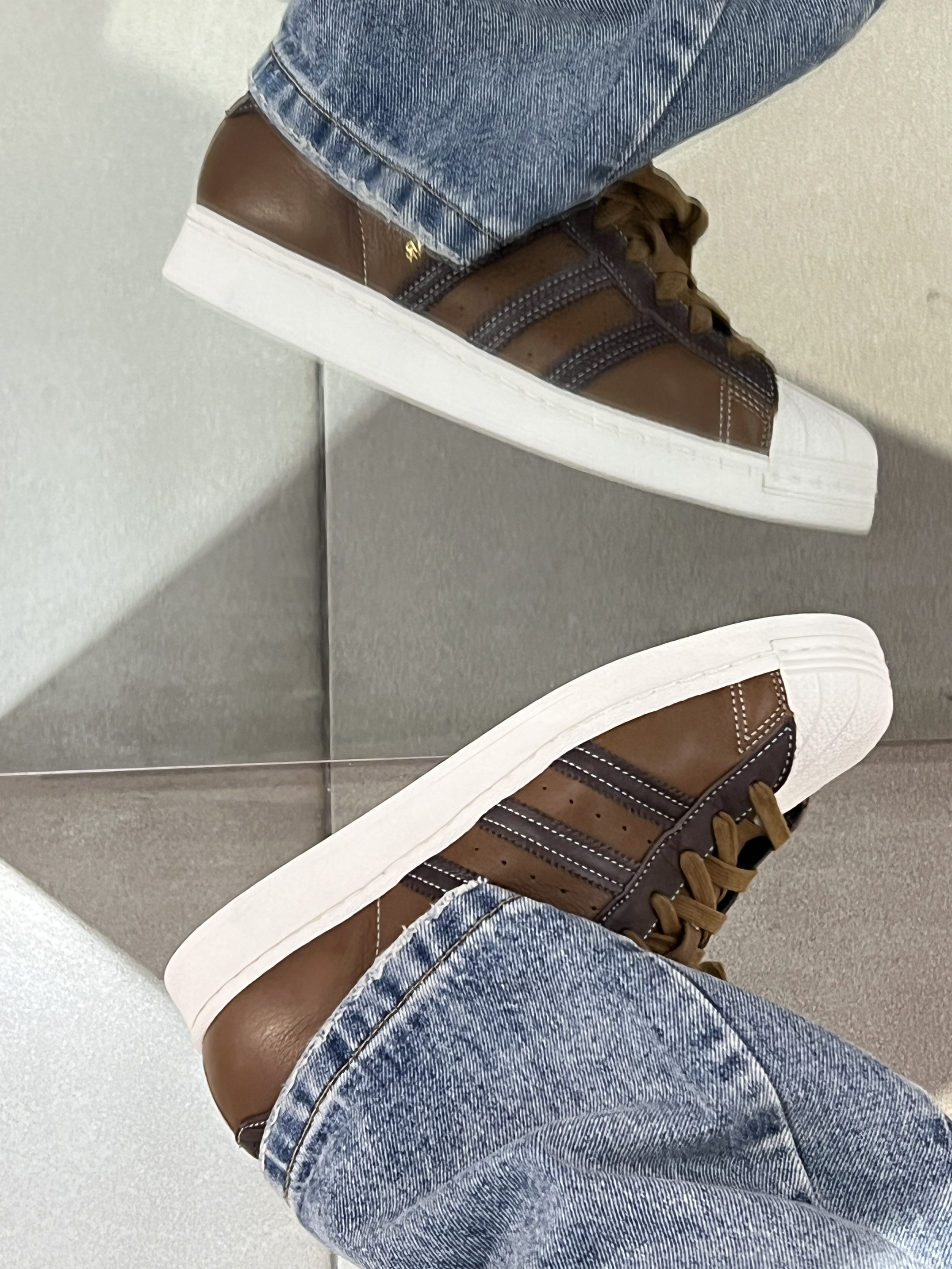 超级小众平价!棕色皮质直接复古感拉满咯! 真的好帅好百搭!贝壳头版型真的很好看! 潮流时尚!cleanfit复古必备!adidas真的好会设计!