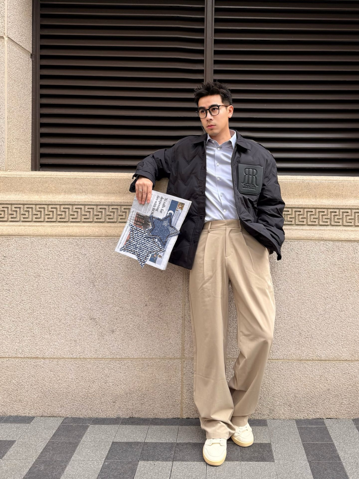 冬天出门别再裹成粽子了! 暖和跟帅气这次我全都要!😎 我的外套是一件黑色衬衫羽绒服,👏 看着像衬衫挺利落,但是非常暖和,武汉这天气,里面穿件打底就够。还有魔术贴设计,可以自己随便换,趣味又时髦~