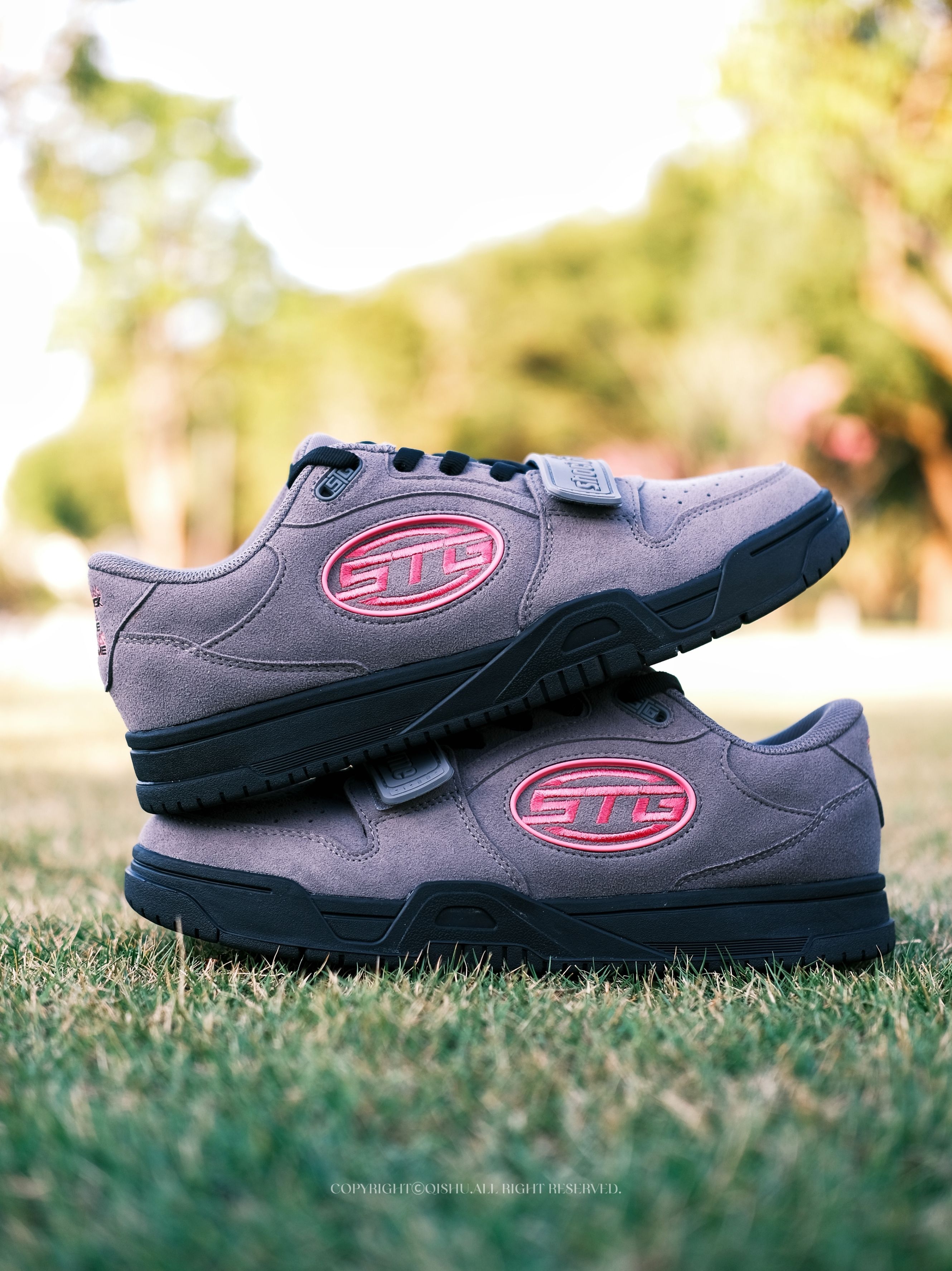 开箱第一眼就被这双STG 2.0的素采灰配色圈粉了。低调的灰调组合高级感拉满,翻毛皮与皮革的拼接质感让人忍不住想多摸几下。 上脚轻弹EVA中底提供了恰到好处的软弹,魔术贴设计不仅复古感十足,更能根据脚型精准调节包裹,对宽脚特别友好。 双素采灰配色的百搭实力超强,搭配牛仔裤瞬间营造出复古运动风,配上工装裤又能演绎街头潮流感,整体造型层次感立马提升。 细节处同样值得细品。后跟"Shock the Ga...