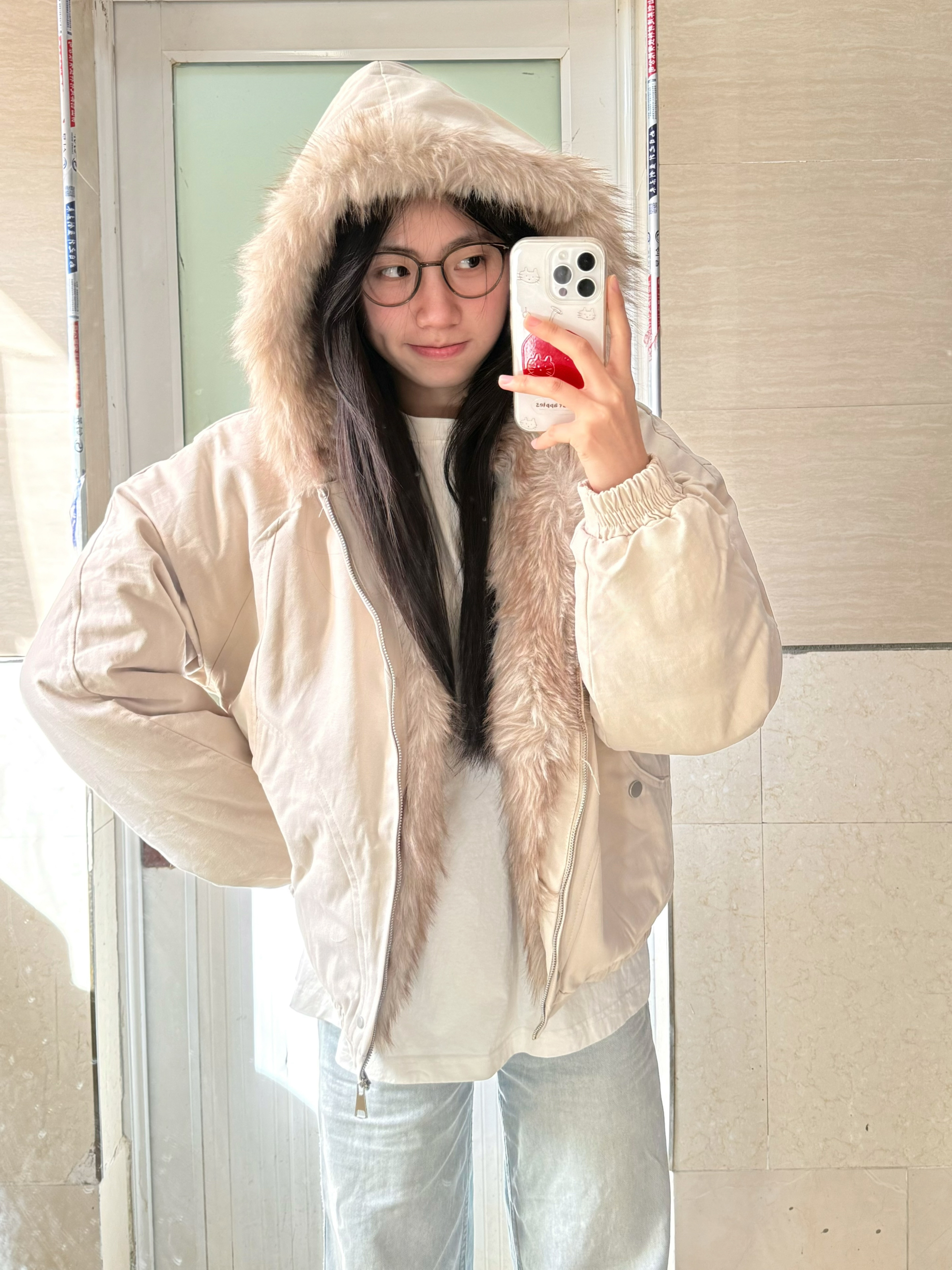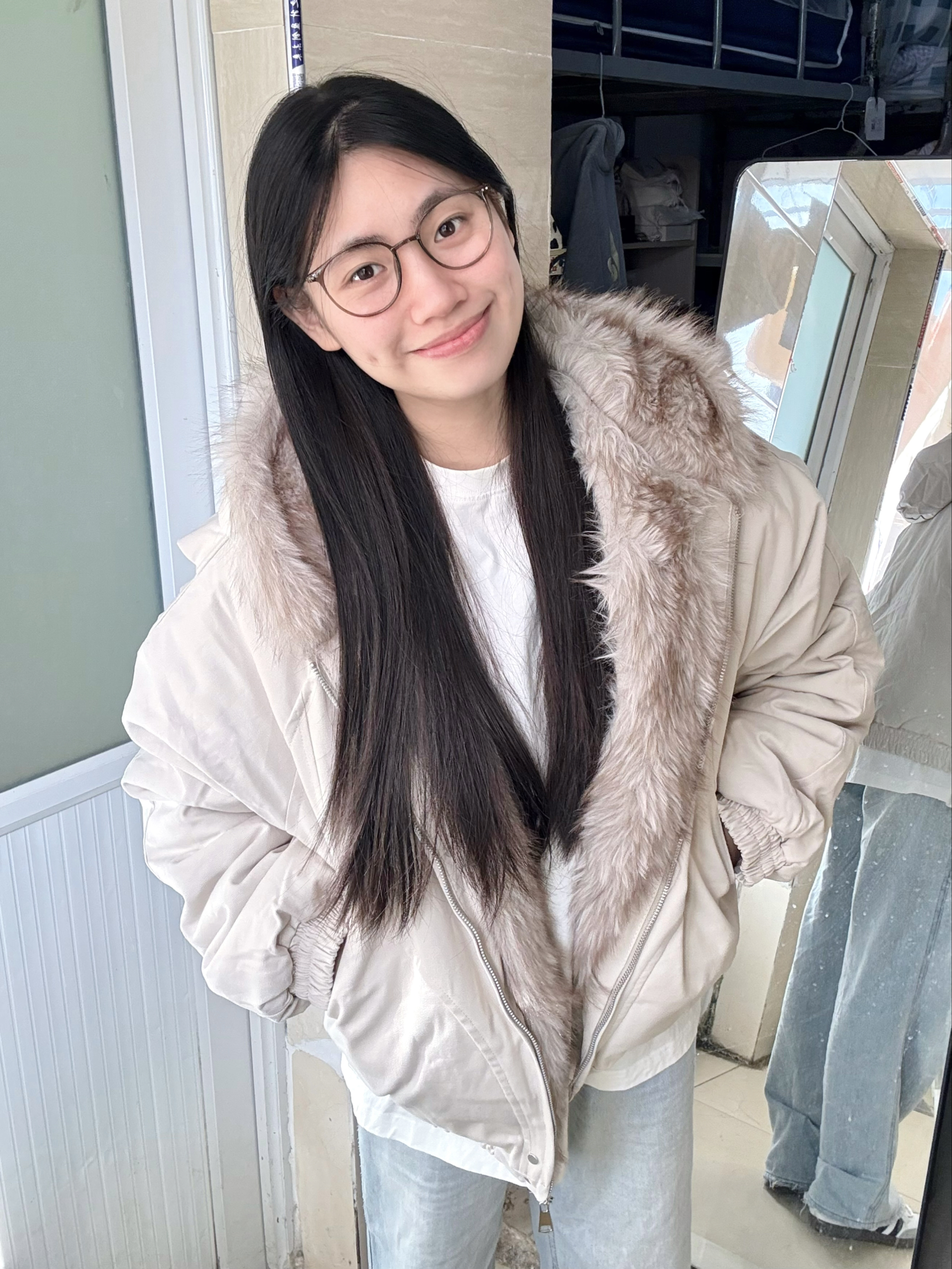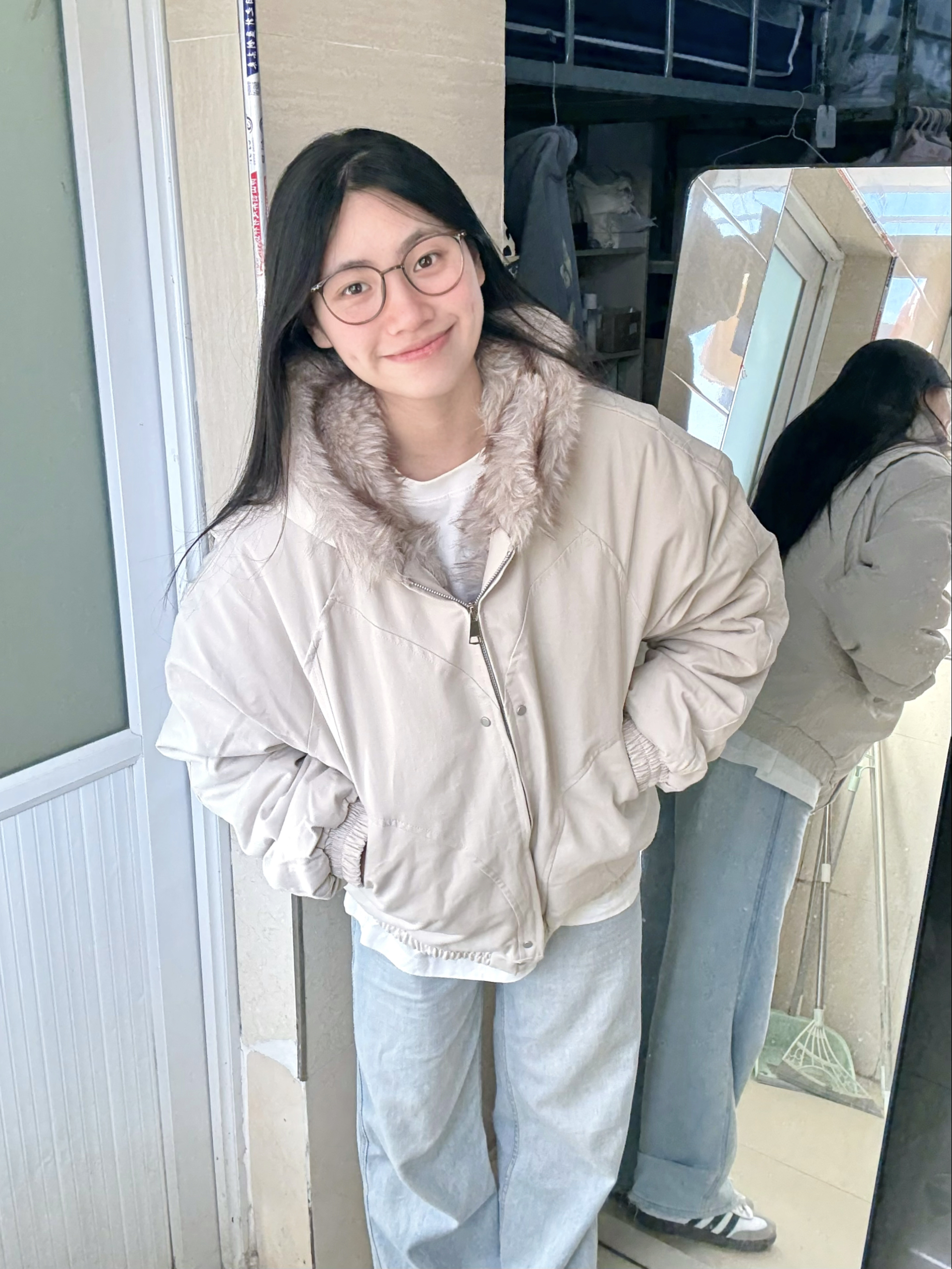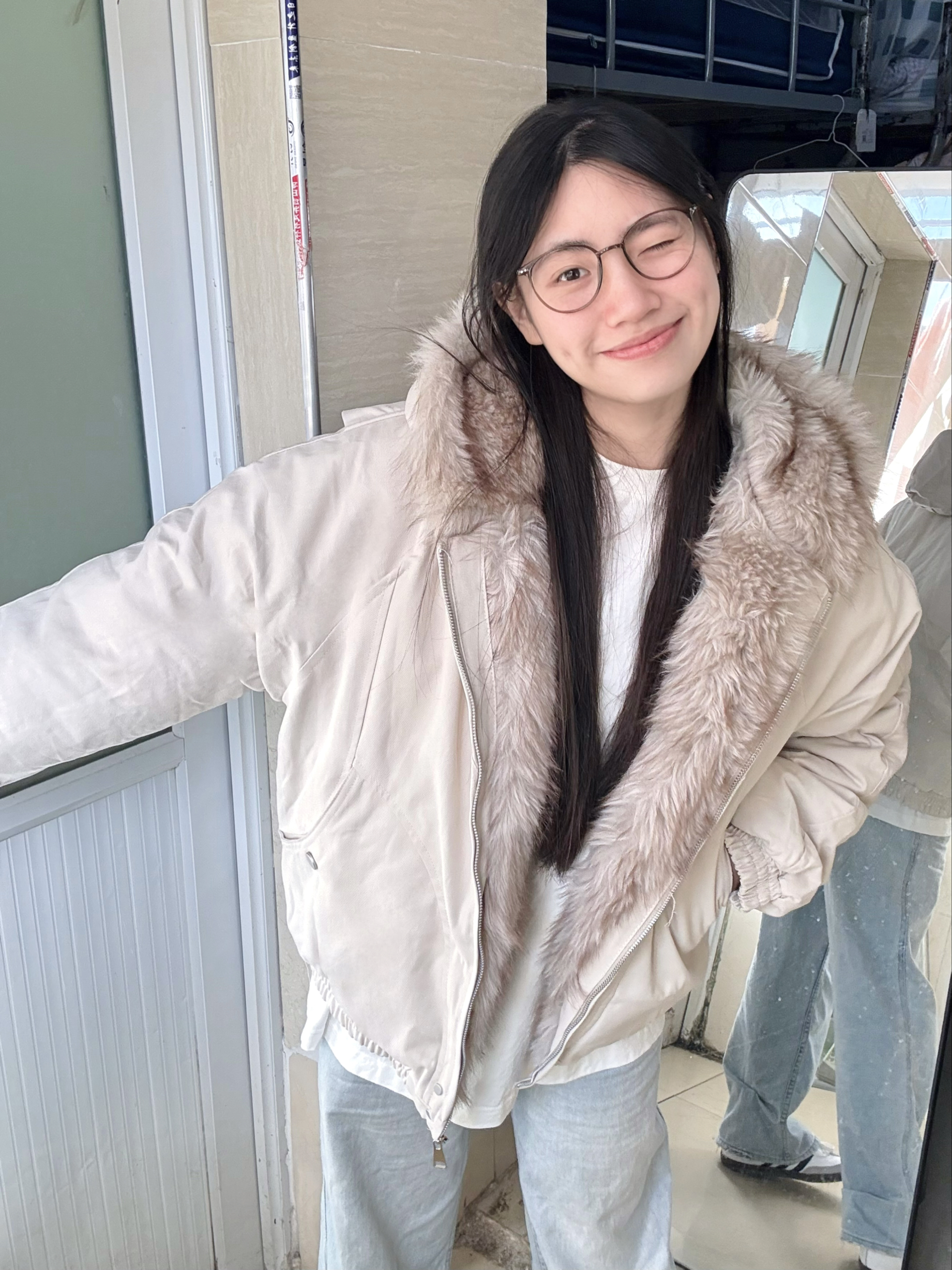 166 102穿的是M码 衣服内里也做了一圈毛领 把拉链扣开穿 也会显得很有层次感 而且帽子里面都是毛 上身暖和的不行!!!喜欢的宝宝可以参考一下哦