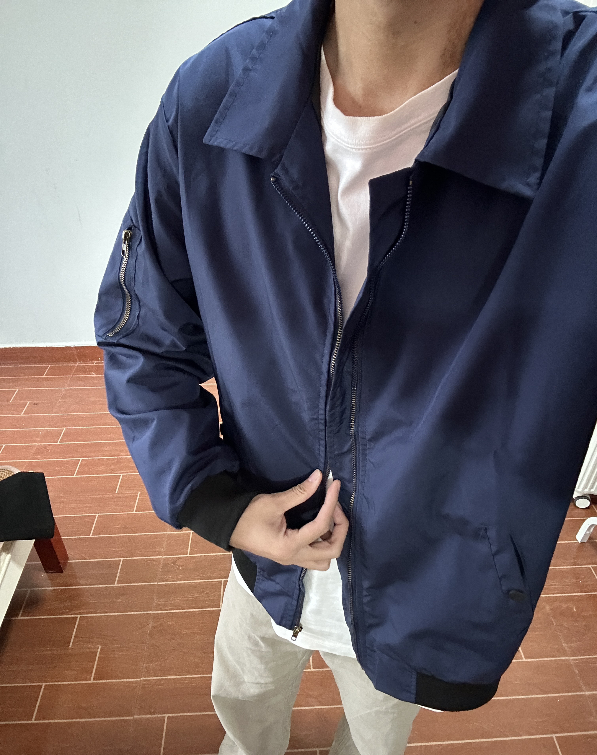 这套藏青夹克+卡其裤的搭配,把cityboy的“简约不简单”拿捏得死死的! ▫️藏青夹克:顺滑防风面料(附细节图),袖侧拉链+撞色罗纹袖口,细节里全是质感,宽松版型对身材零限制 ▫️卡其阔腿裤:垂感巨好的棉麻料(附版型展示图),浅卡其配色自带温柔滤镜,和藏青撞色高级又耐看 内搭白T做过渡,随便往白墙前一站,极简松弛感直接拉