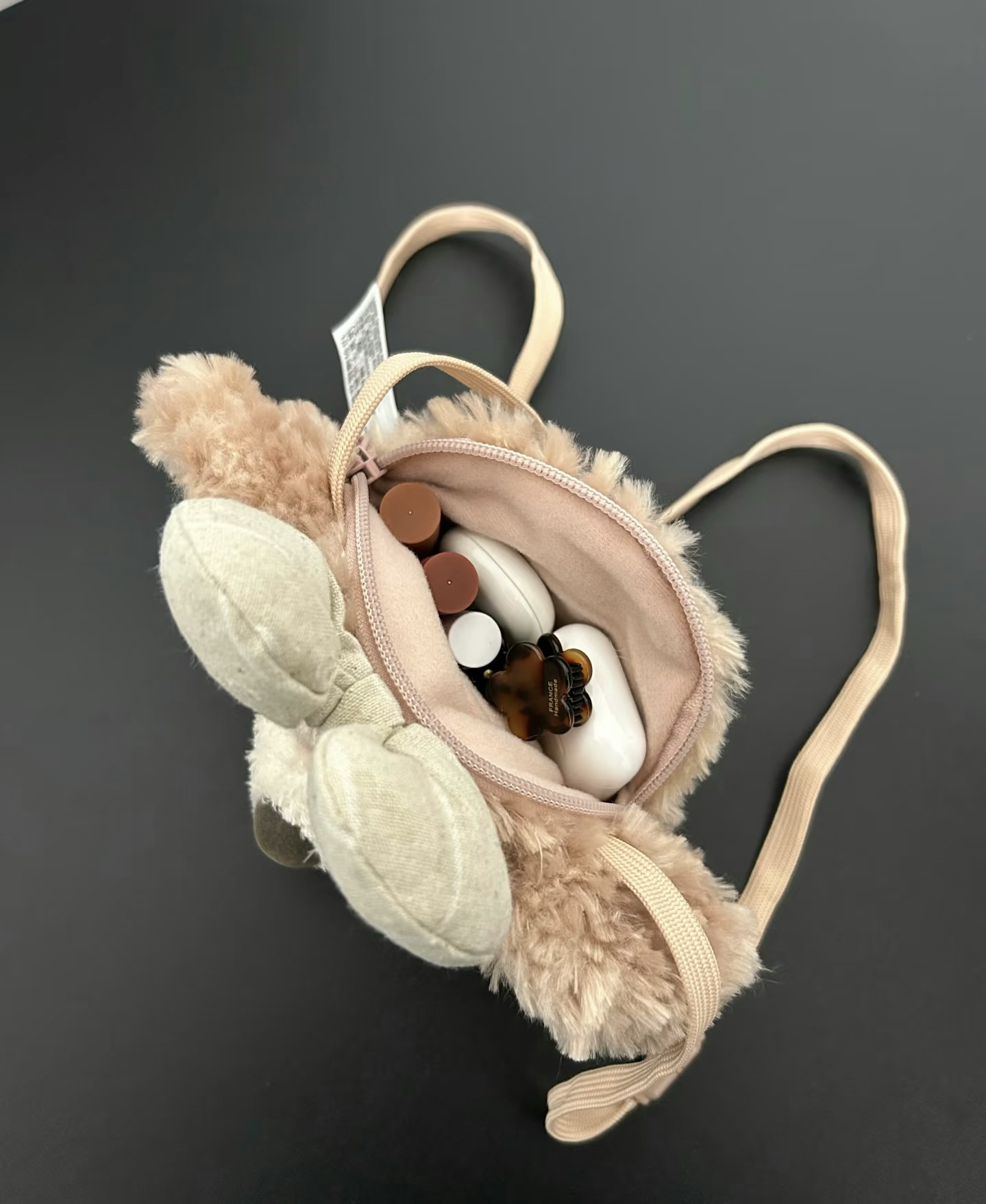 最近出门总背它,就是那只雪莉玫小包。 它的材质不是那种华丽的皮革,而是软乎乎的毛绒,摸起来有种安心的感觉。有时候走在路上,手指无意识地卷着它的绒毛,心情就会莫名地平静下来。看到玫玫那张带着淡淡腮红、永远有点害羞的脸,就好像有个内向又温柔的朋友在身边,提醒我:这个世界可以不用那么紧绷。