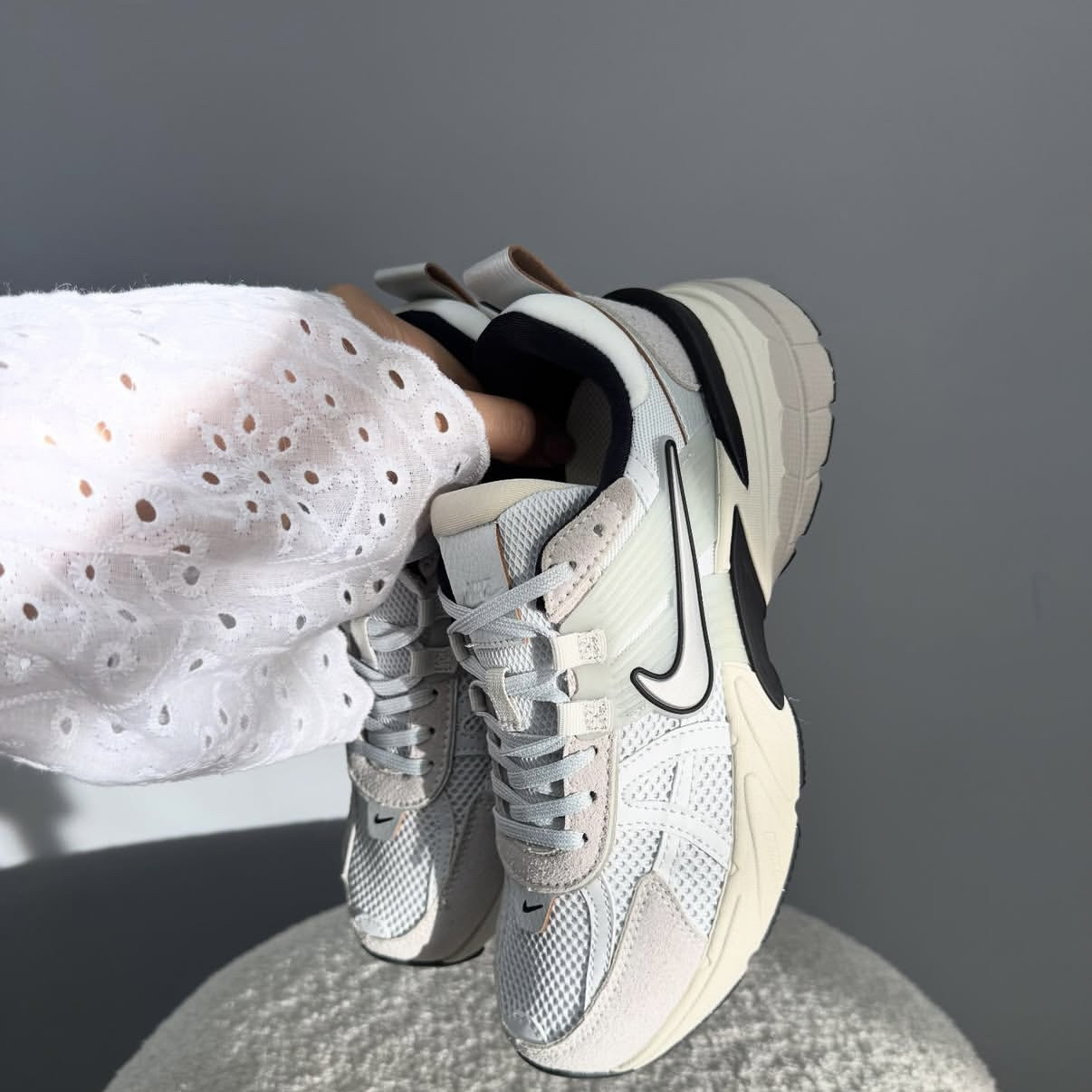 “谁懂啊!Nike V2K Run这双老爹鞋,是把‘显高显瘦’刻进DNA了吧? 网眼+麂皮的质感,配浅灰白调,搭卫衣/牛仔裤/连衣裙都能直接出片,复古机能风直接拉满! 厚底缓震脚感软到踩云,通勤暴走8小时都不酸—— 关键是双十一直接放价!这波不囤,等涨价了拍大腿都没用!