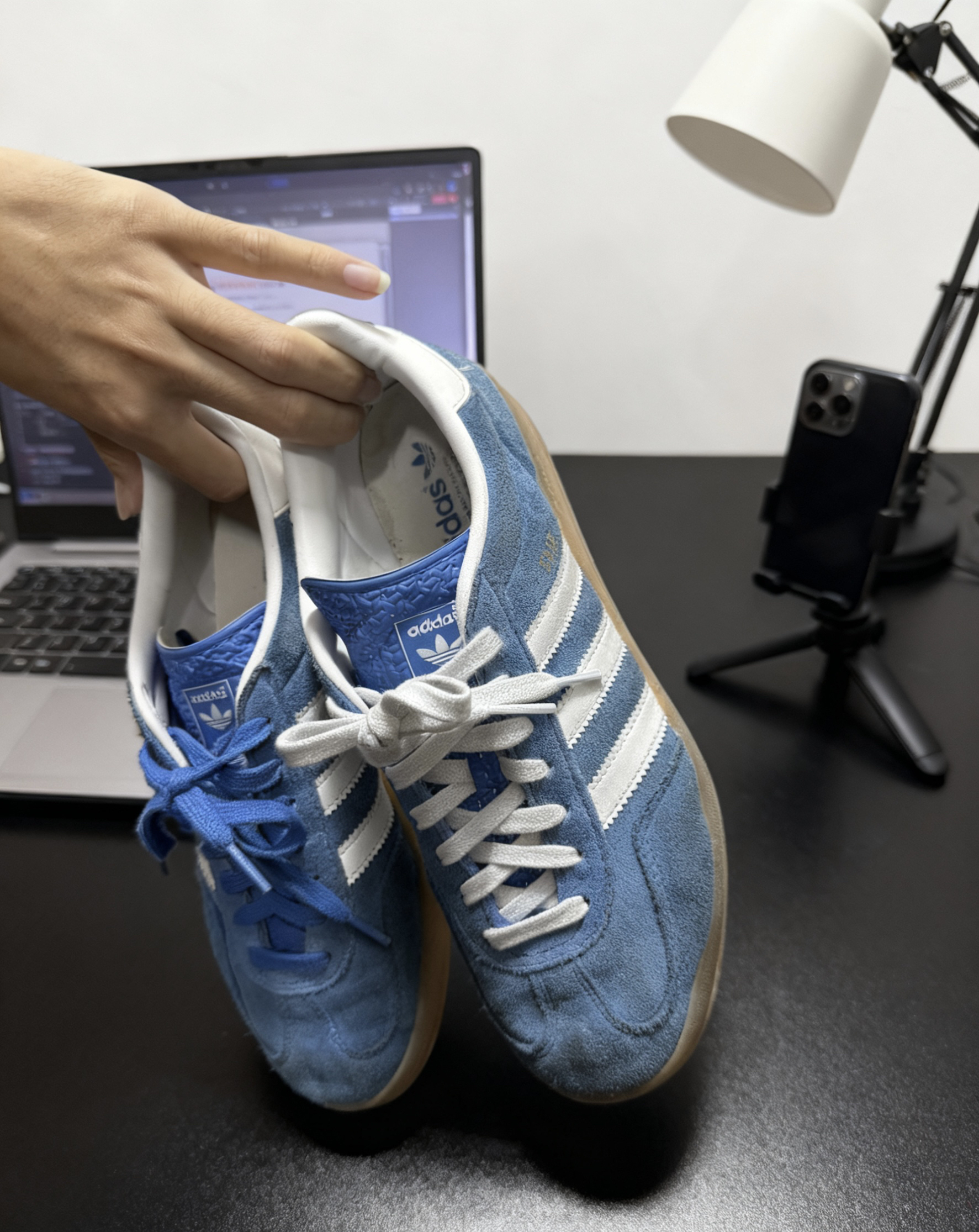 这双蓝白Gazelle麂皮质感很顶,搭牛仔或卡其裤都干净清爽,复古生胶底自带松弛感,日常出街随性又有细节,懒人穿搭直接拿捏少年感,回头率不低。