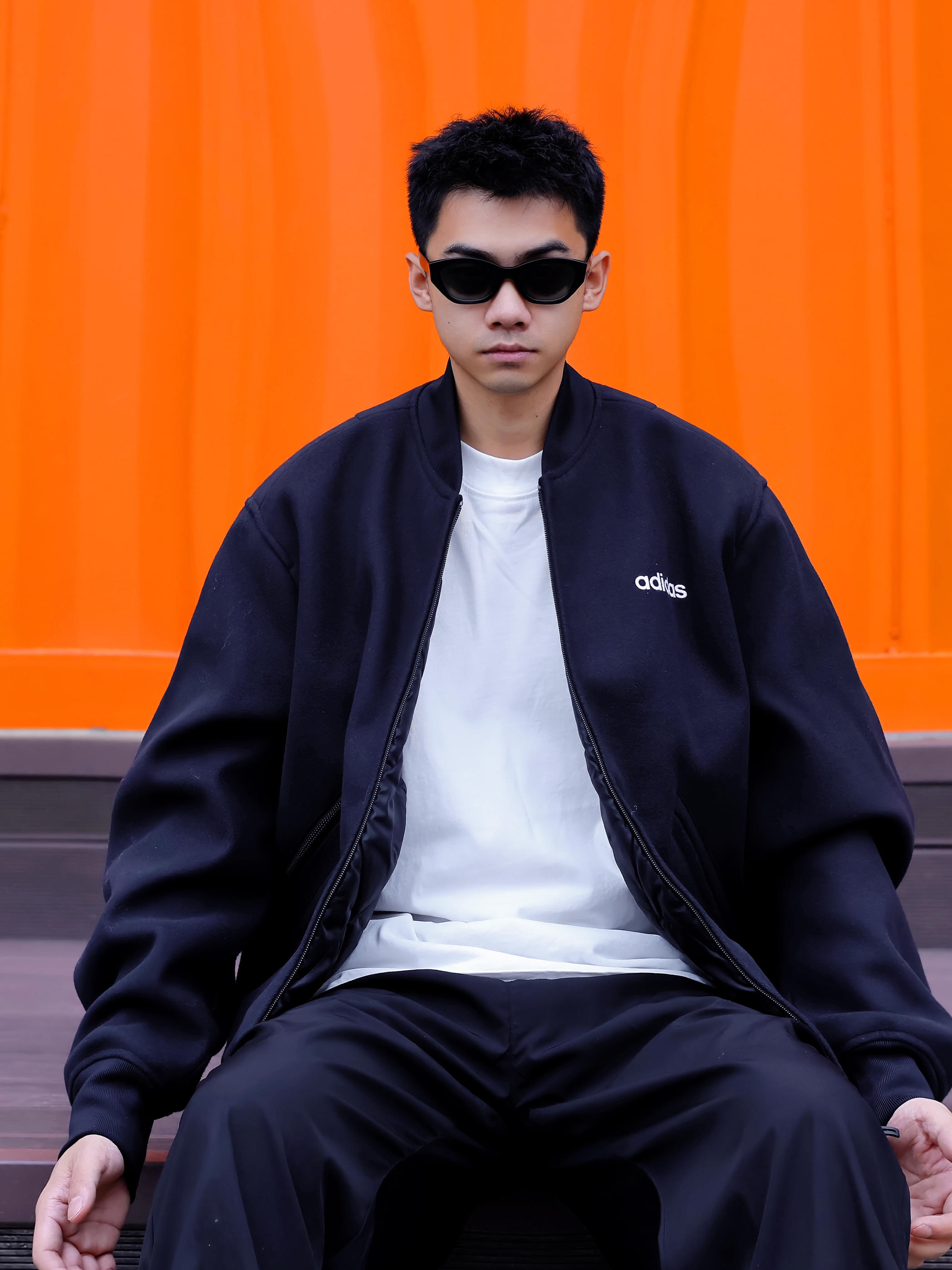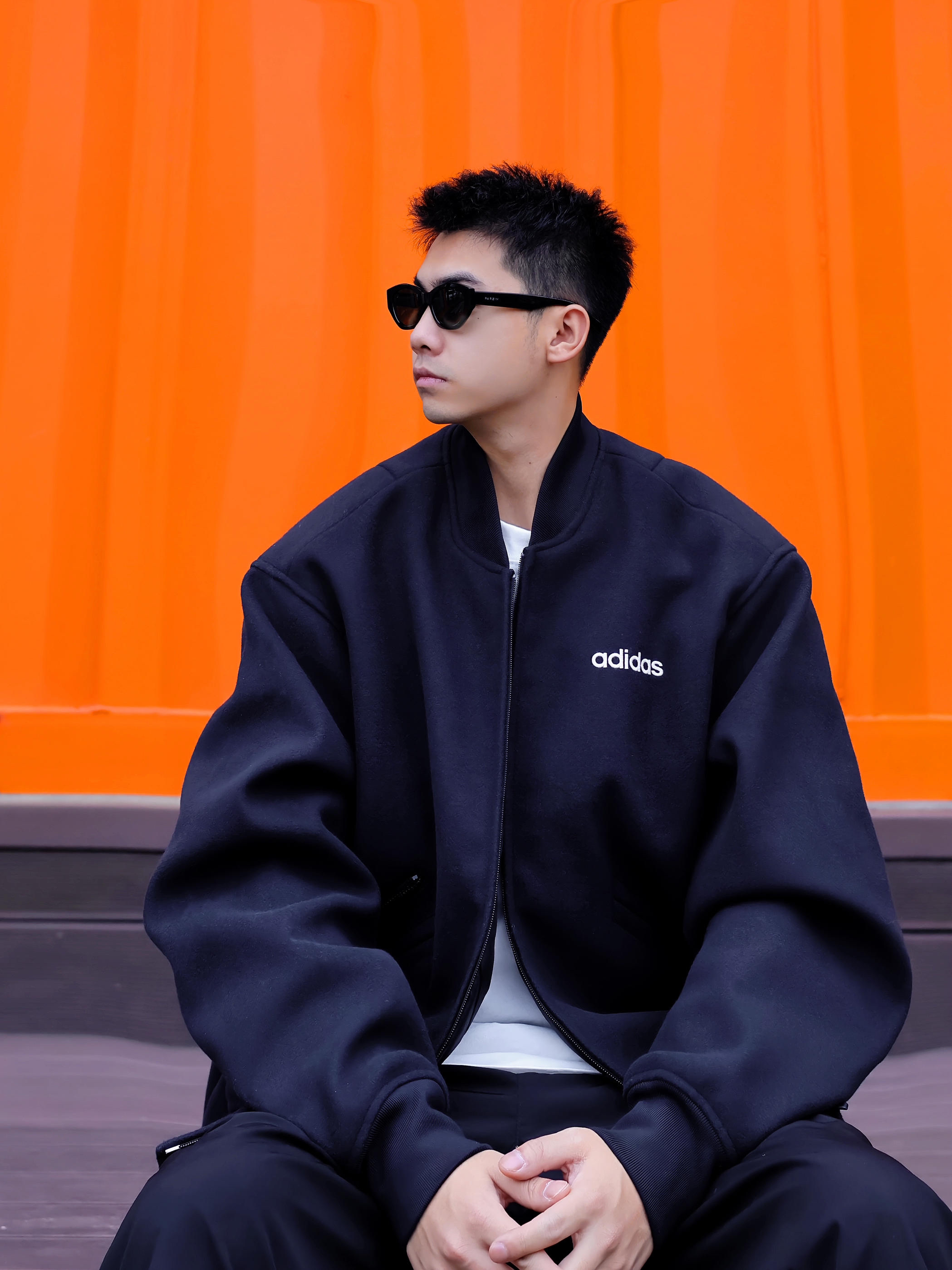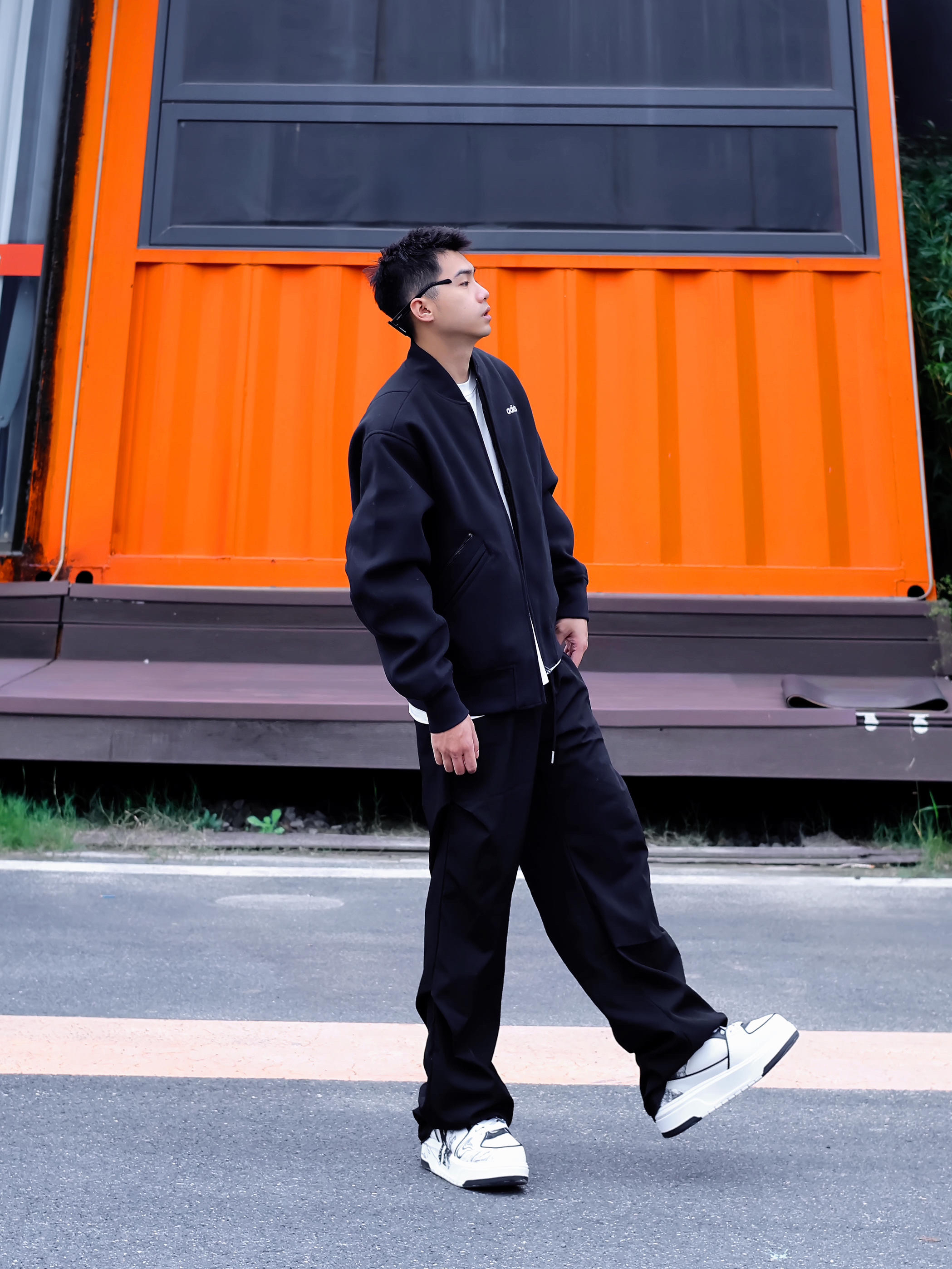 今天给大家分享一套都市先锋主义vibe穿搭 上身选择一件黑色短款adidas夹克外套 ☘️ 内搭一件白色上衣作为点缀 下身搭配同色系休闲裤 上脚一双mlb 白灰板鞋 简约大气的质感尊滴爱 这样一套都市先锋主义vibe真的帅