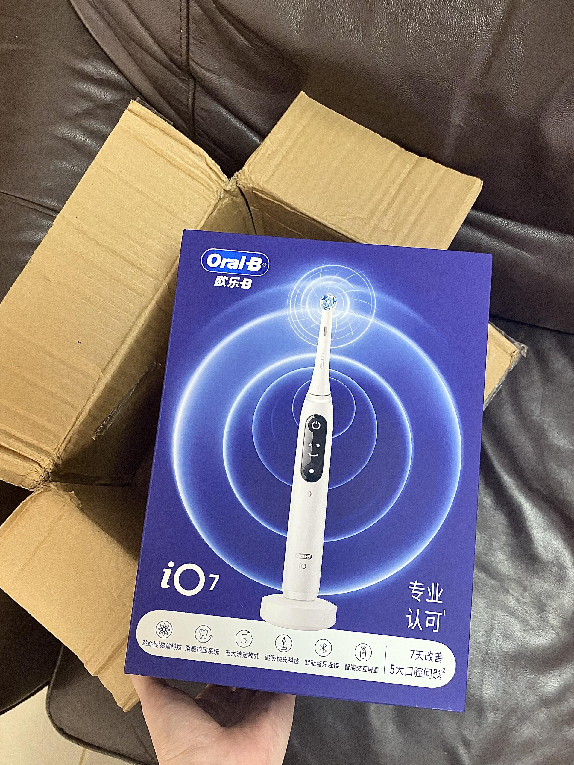 说实话,拆包装的时候我还挺忐忑的,毕竟之前用的那支方头电动牙刷真的让我很心累.每次刷后槽牙都得歪脖子扭手腕,费老大力了⋯感觉把自己拧成麻花也刷不干净,刷完总感觉牙齿内侧还黏着什么,时间长了都对刷牙有点抗拒了… 但这次用iO7的第一感受真的是:原来刷牙可以这么轻松!!!