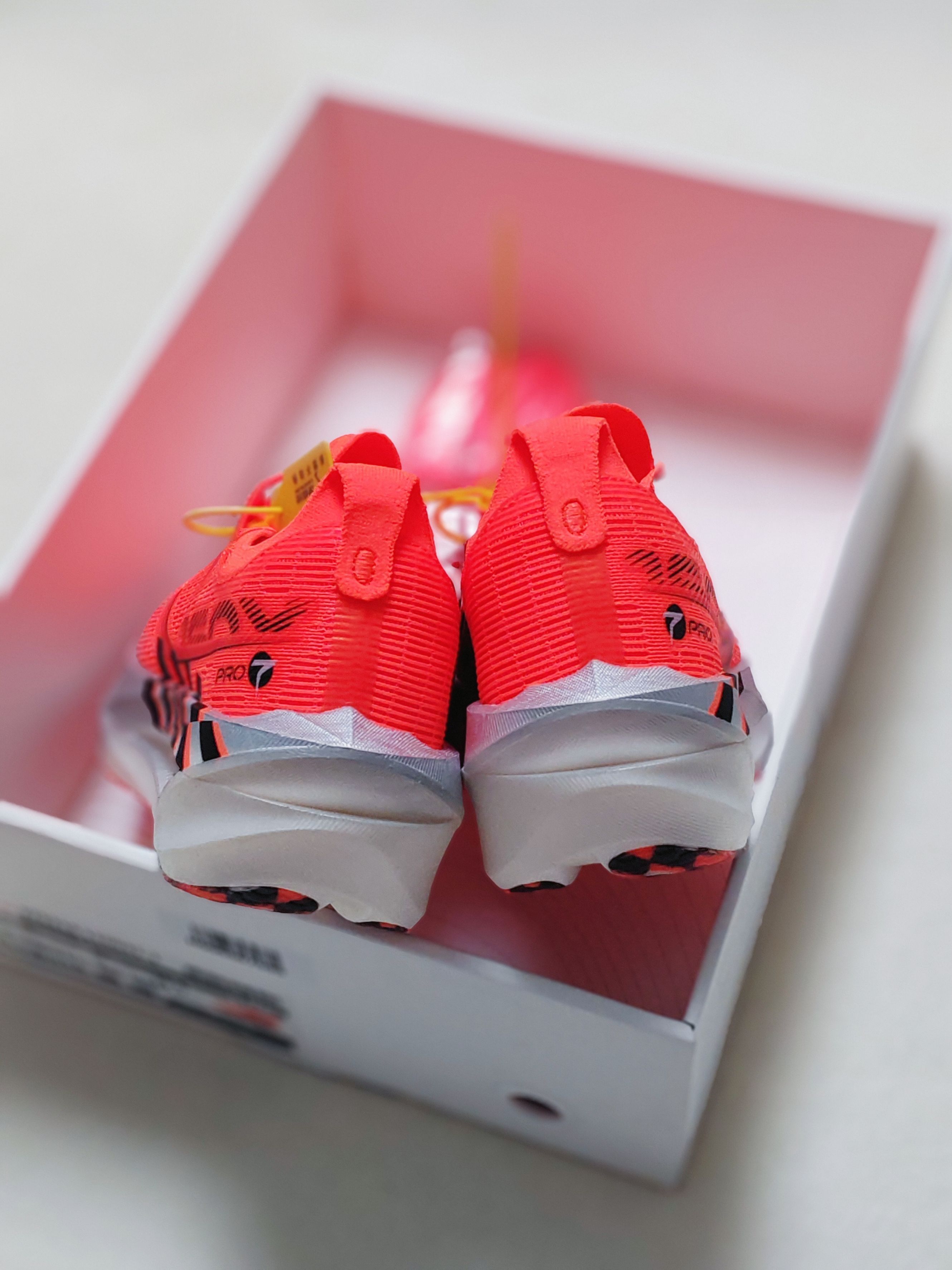 作为160X系列老粉,7.0PRO超级橙黑一上脚就沦陷!橙黑撞色自带赛车感,吸睛度拉满。一体式鞋面贴合不闷脚,国人脚型鞋楦包裹超稳。GT700碳板推进力超猛,85%回弹的双密度中底,全马后半程依旧澎湃。CPU大底抓地扎实,隐蔽的观音山彩蛋超戳我。每一次蹬地都像被助推,这双竞速狠鞋,陪我一次次突破