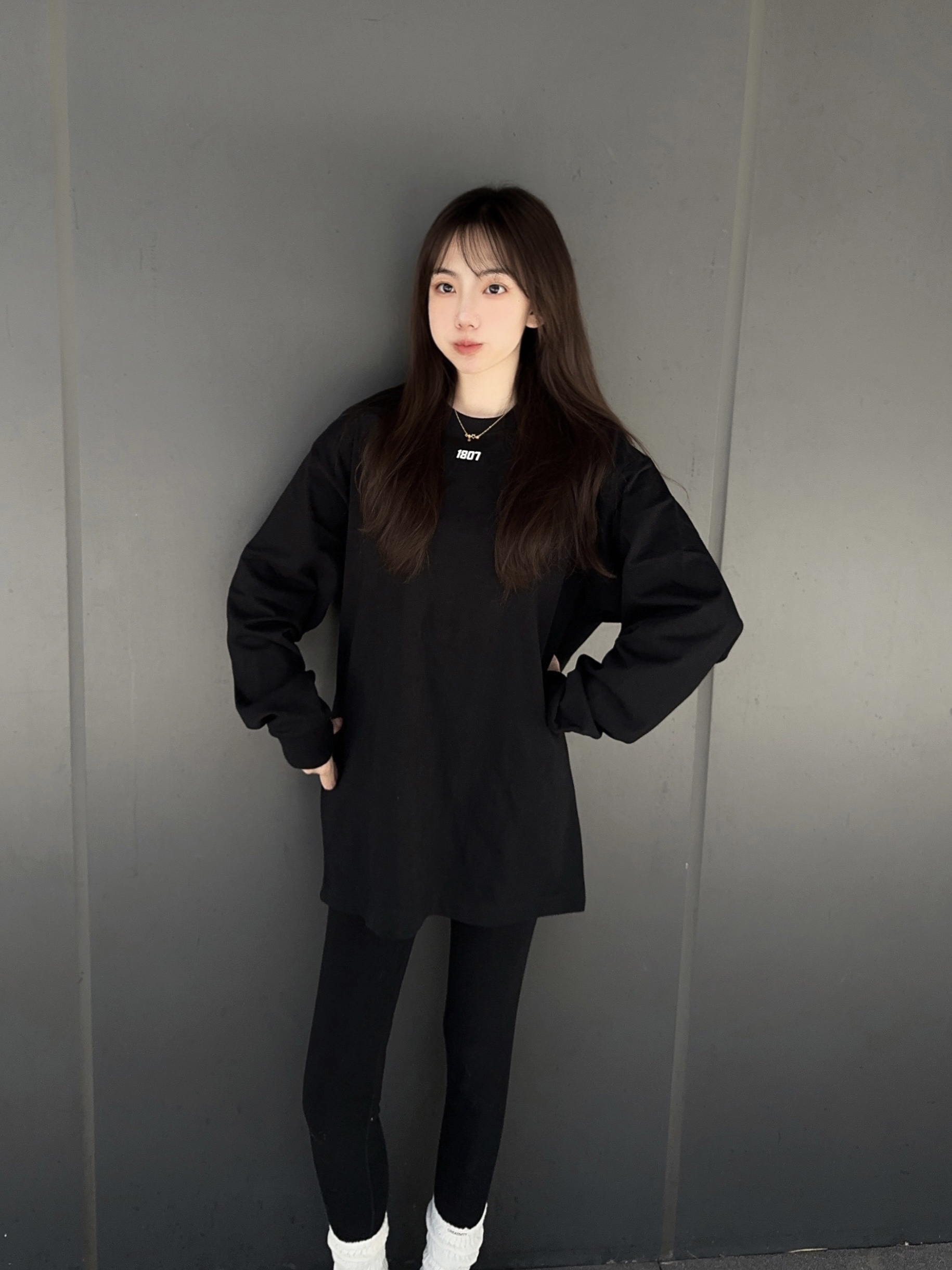 穿搭的尽头就是黑色系look~ 怎么穿都感觉很随性松弛 1807 这件黑色长袖搭配鲨鱼裤 很元气的感觉,而且毫不费力